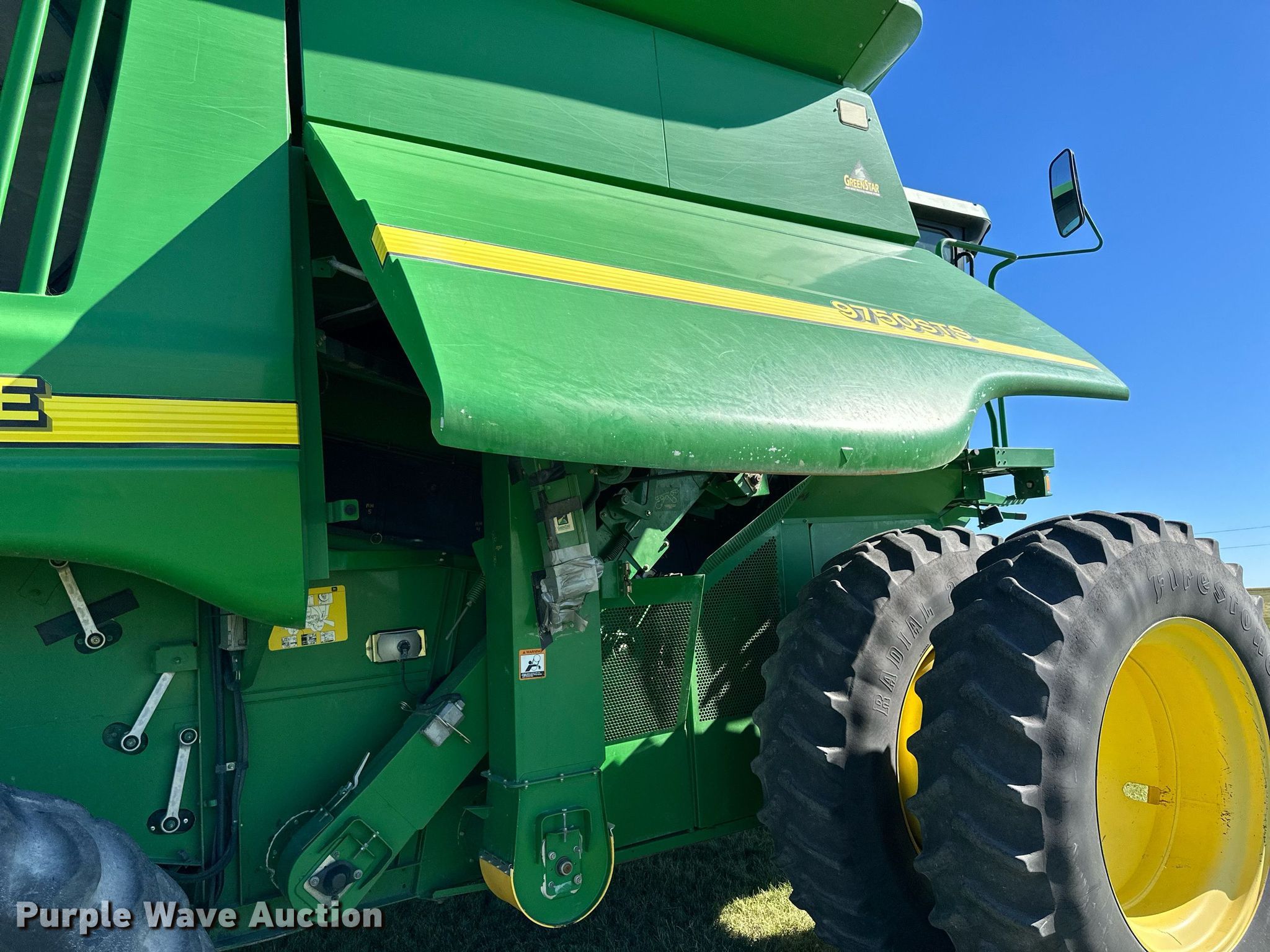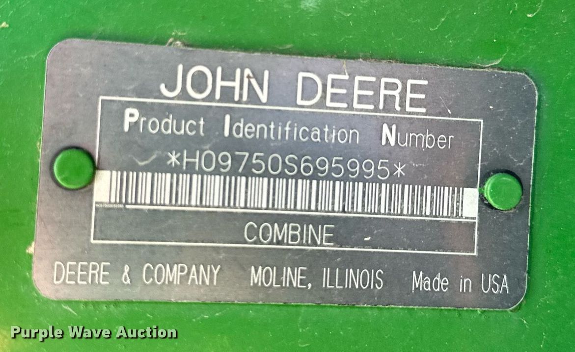 Purple Wave is selling a used Combine in Kansas. This item is a 2002 John Deere 9750STS combine with the following: Engine hours: 6,295 on meter, Separator hours: 4,240 on meter, Serial: H09750S695995