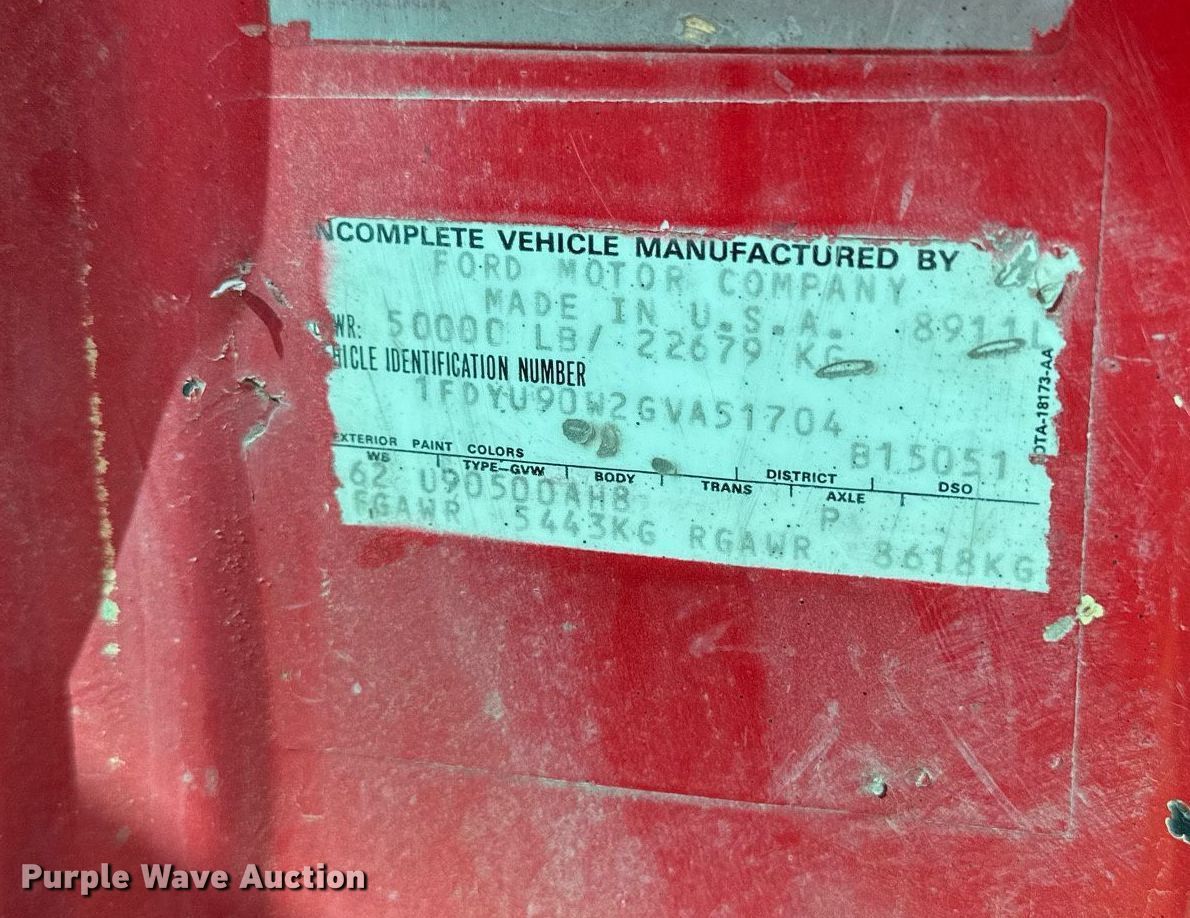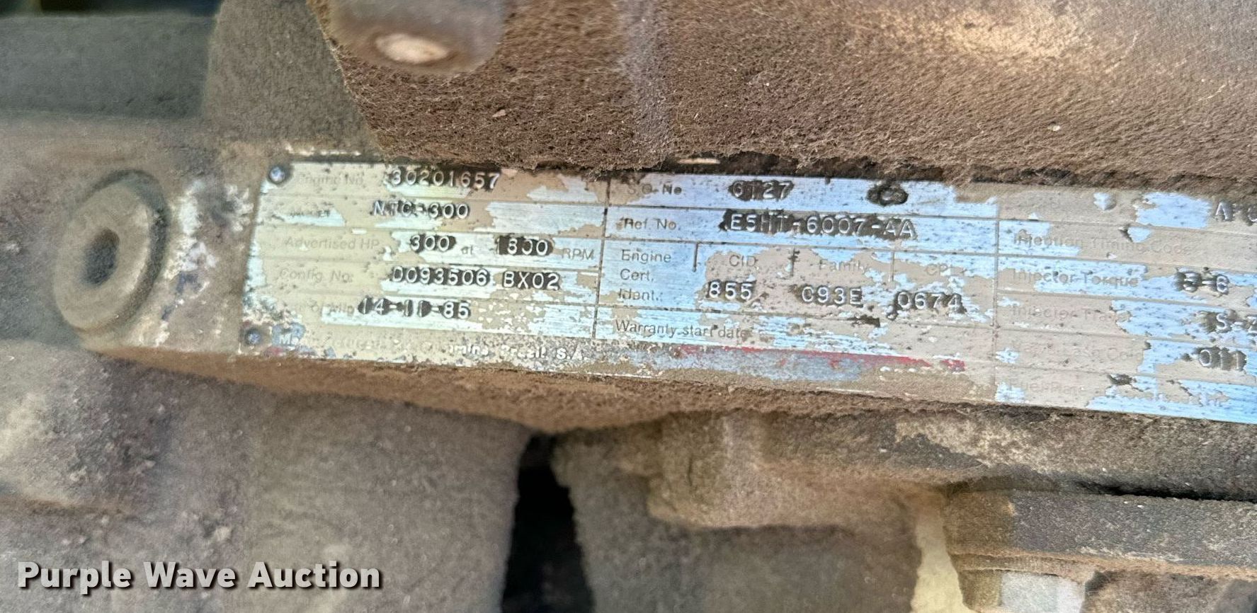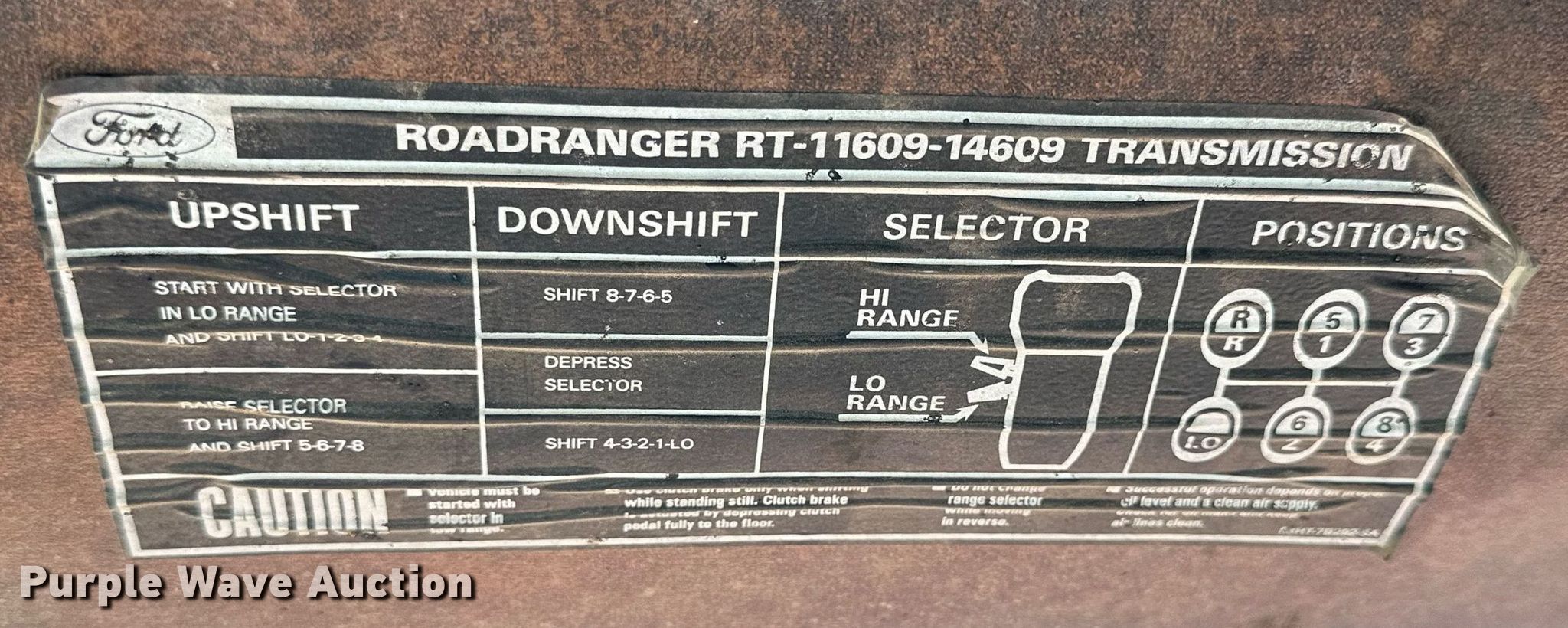 1986 Ford 9000 grain truck. Miles: 620,835 on odometer, VIN: 1FDYU90W2GVA51704. Engine Cummins 30201657, Serial: 6127, Displacement: 14.0L, Cylinders: 6, Fuel type: Diesel. Transmission Eaton Fuller, Manual, Speed: 10. Chassis Axles: Tandem, Differential lock: Inter-axle, Suspension: Spring, Brakes: Air, PTO, GVWR: 50,000 lbs, Wheelbase: 162". Features Dump bed 22' L x 96" W, Side height: 51", Side board height: 68", Bed type: Steel, End gate: Air operated. Tires Front: 11R24.5, Rear: 285/75R24.5. Notes Additional side rails included , Windshield chipped or cracked, Possible engine issues, over heats. Kansas title. Title distribution may be delayed up to 14 days from verification of funds. Pakkebier Farms LLC. 22998 Road East 9. Densmore, KS 67645