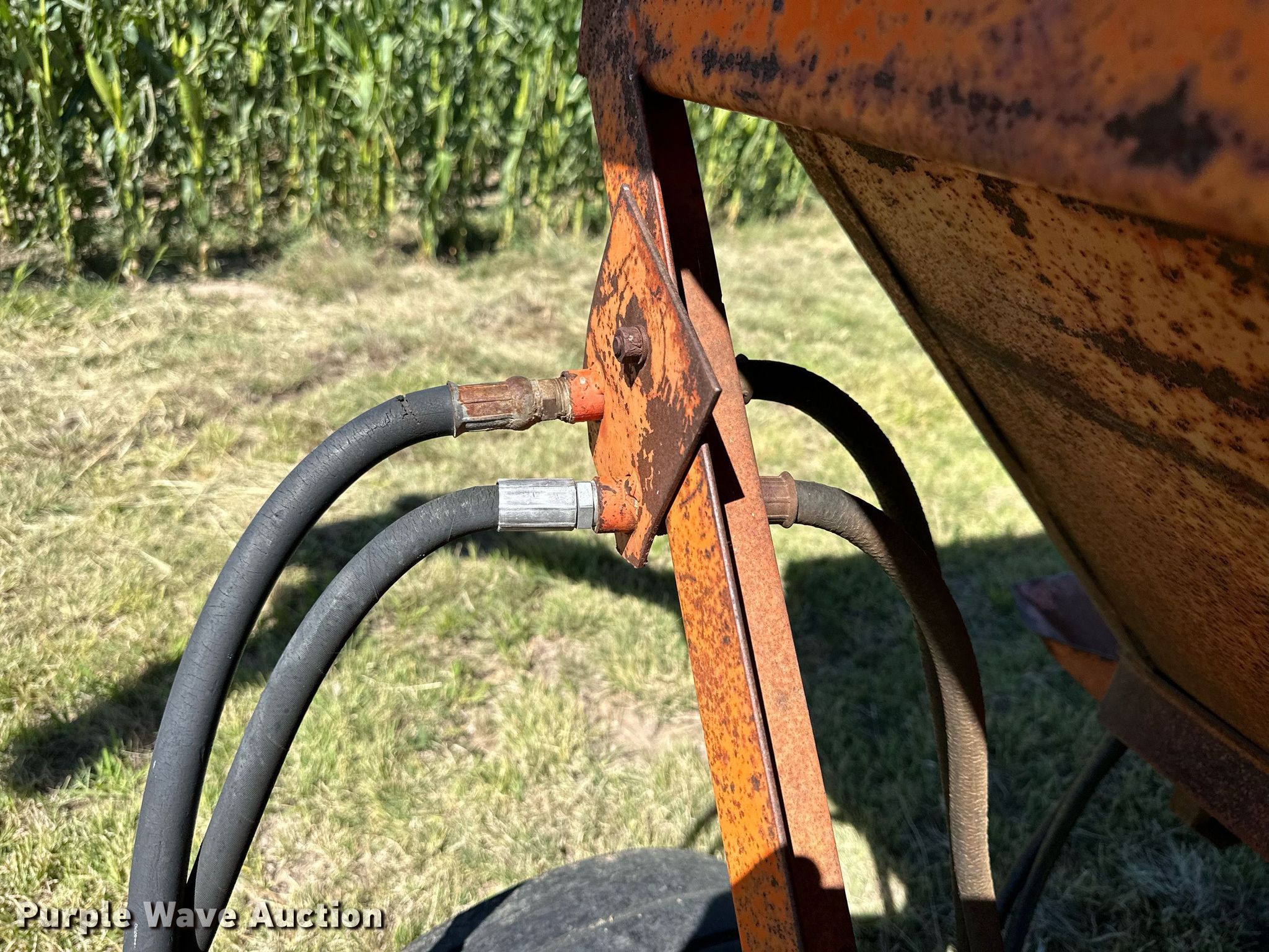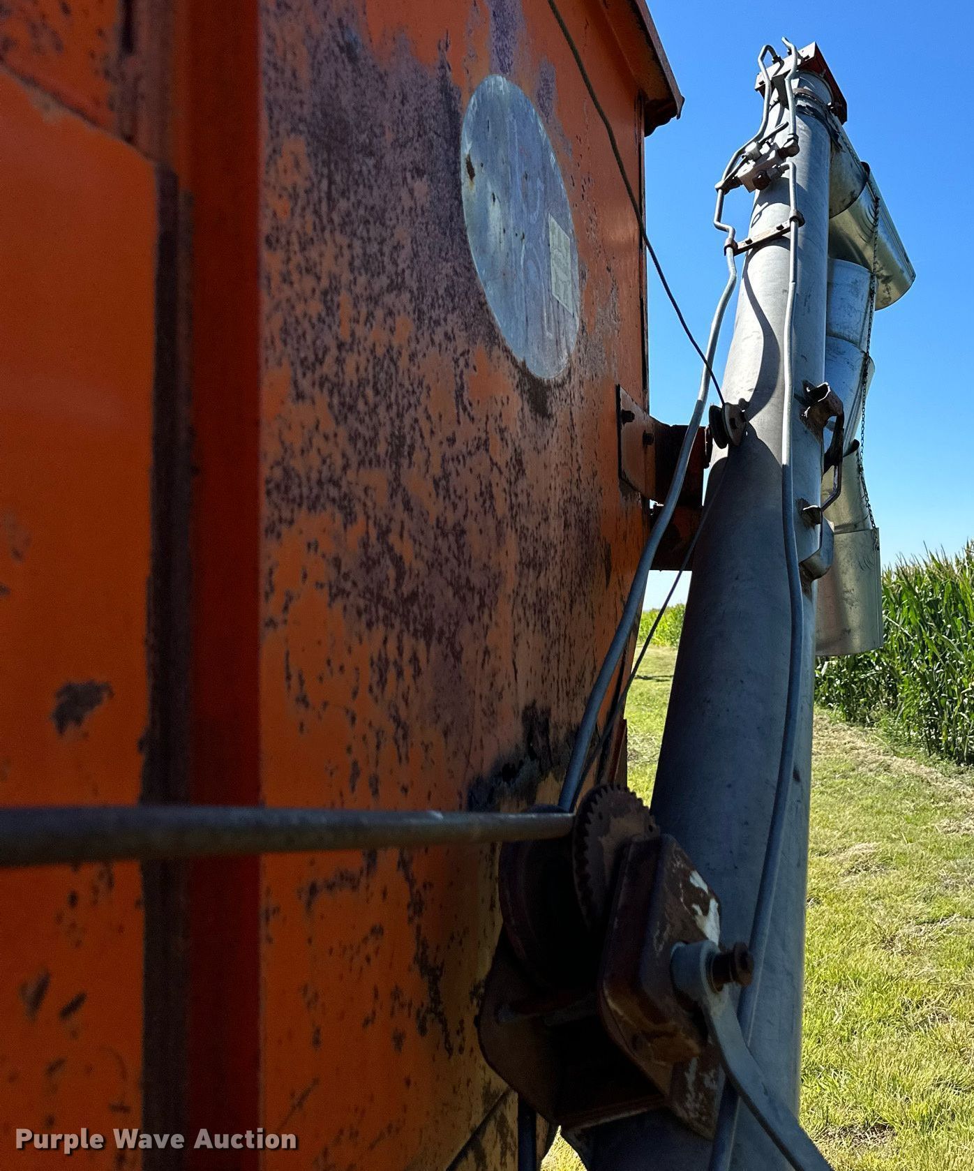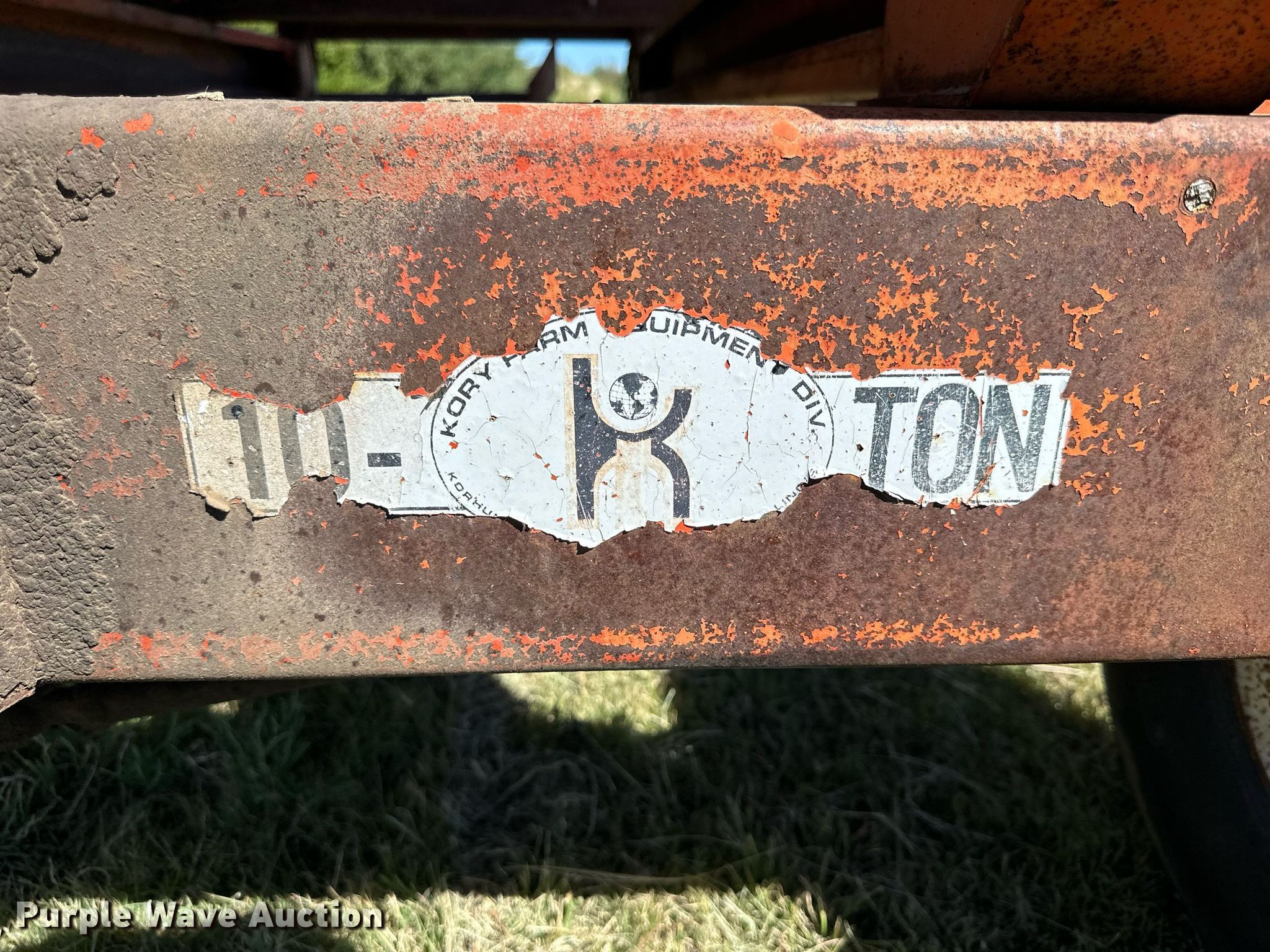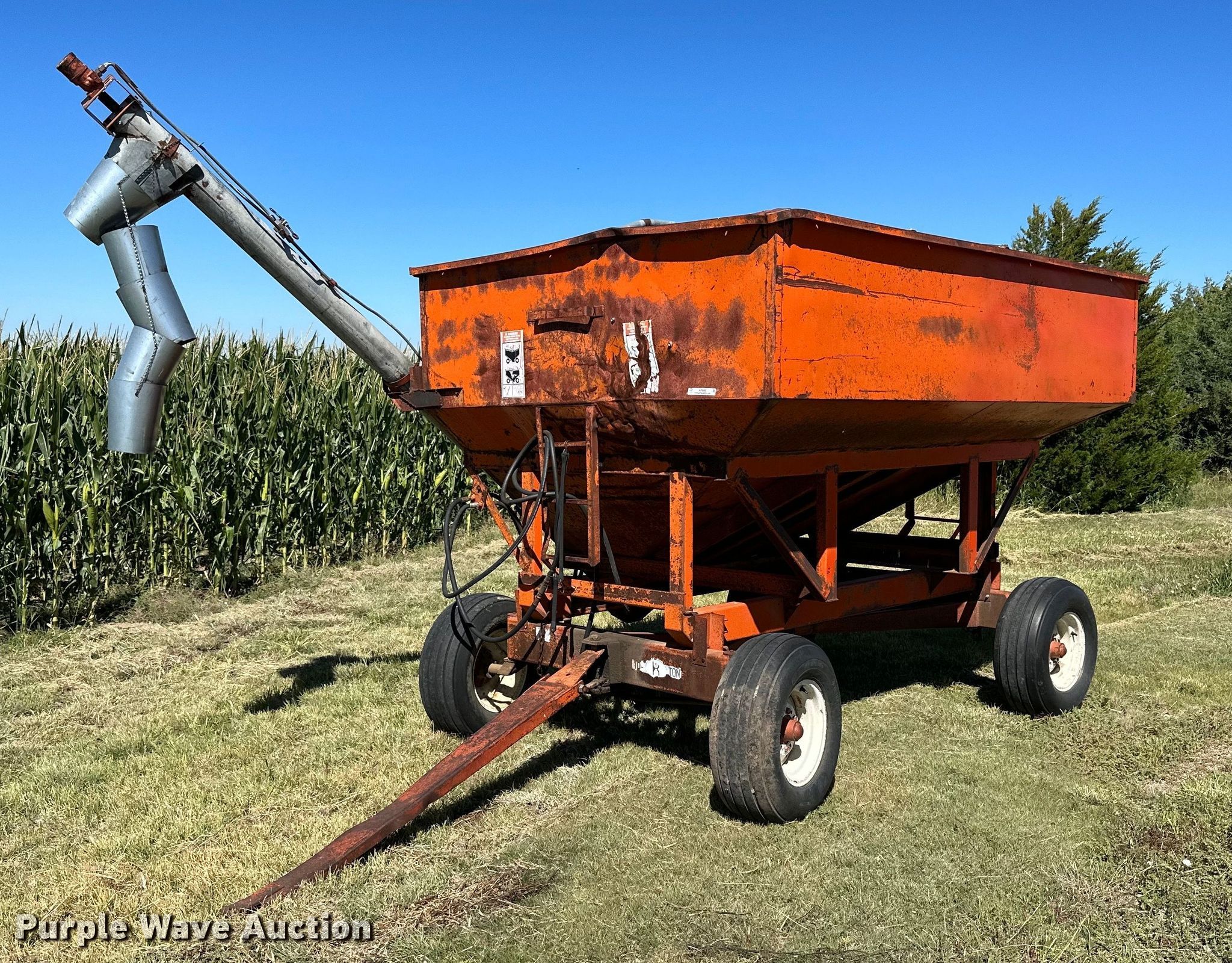 Purple Wave is selling a used Grain Cart or Gravity Wagon in Kansas. This item is a Kory Farms gravity wagon with the following: Length: 12', Width: 6", Lift: Manual, Capacity: 10 tons, Shut-off gate: Manual