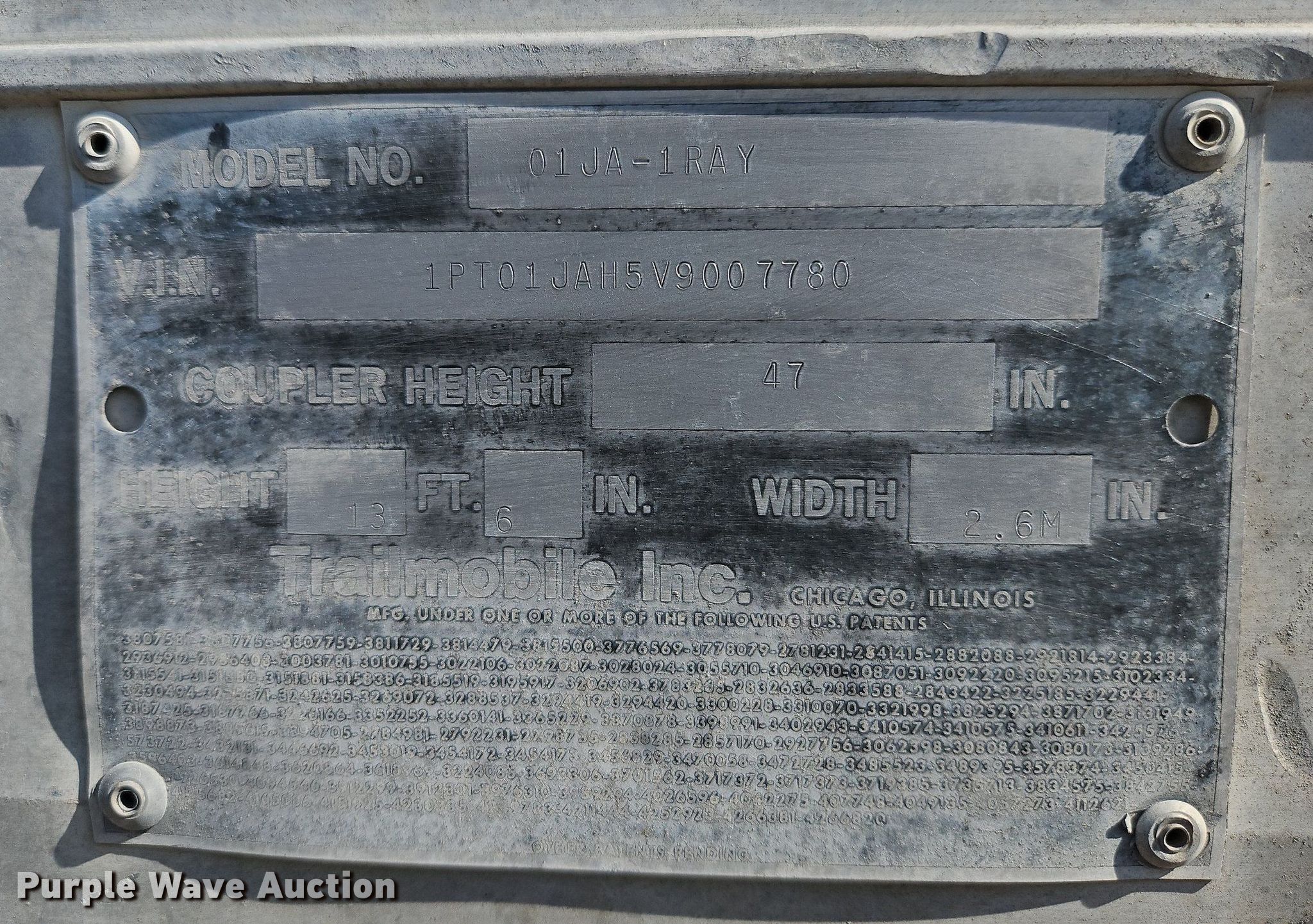 Purple Wave is selling a used Dry Van Trailer in Missouri. This item is a 1997 Trailmobile 01JA-1RAY dry van trailer with the following: VIN: 1PT01JAH5V9007780