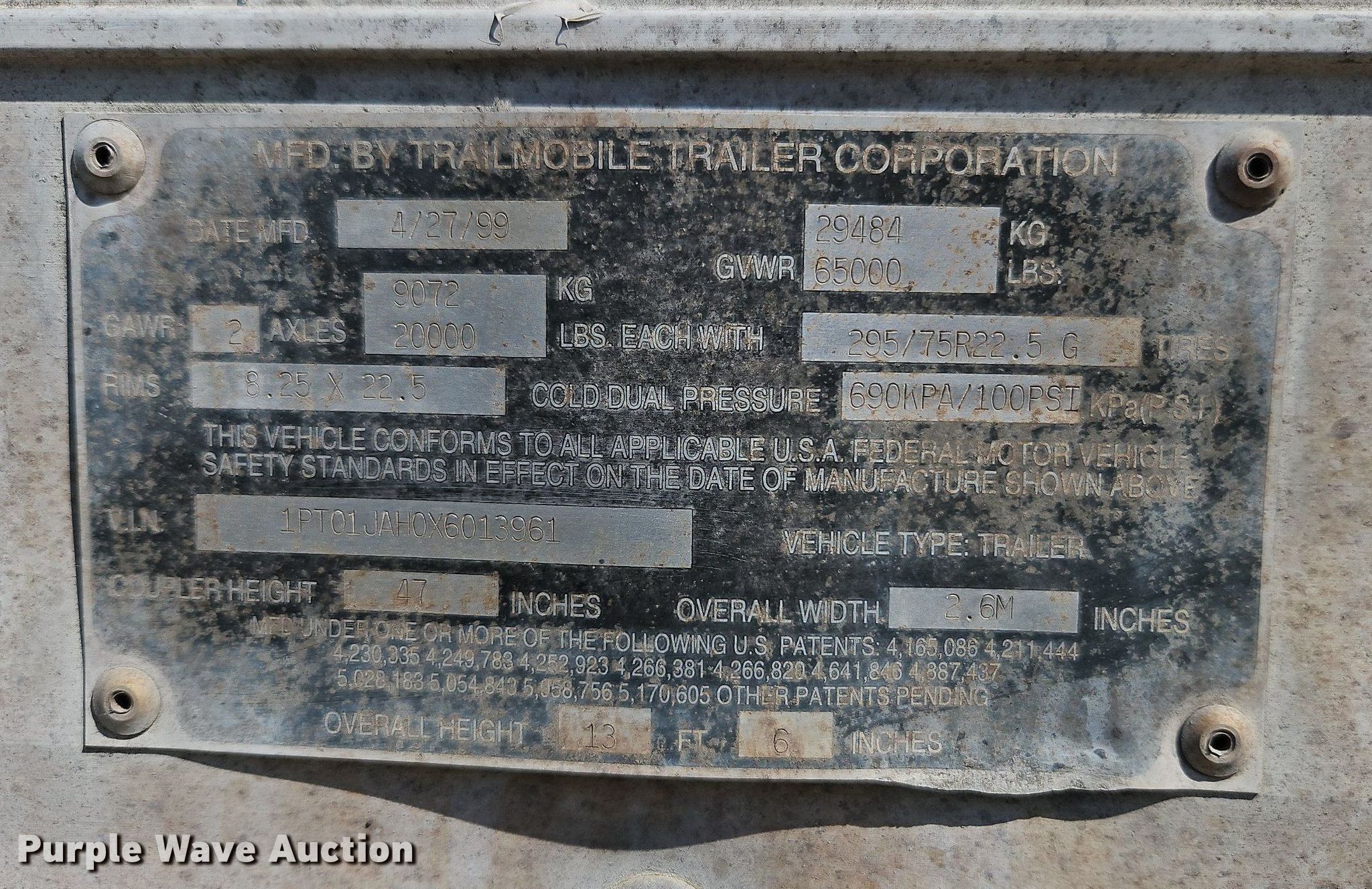 Purple Wave is selling a used Dry Van Trailer in Missouri. This item is a 1999 Trailmobile dry van trailer with the following: VIN: 1PT01JAH0X6013961
