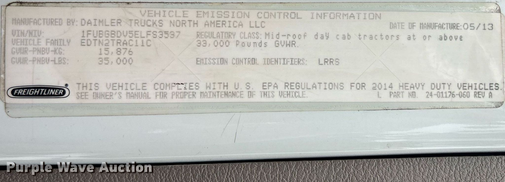 Purple Wave is selling a used Truck Tractor in Ohio. This item is a 2014 Freightliner Cascadia 113 semi truck with the following: Miles: 247,656 on odometer, Hours: 12,320 on meter, VIN: 1FUBGBDV5ELFS3537