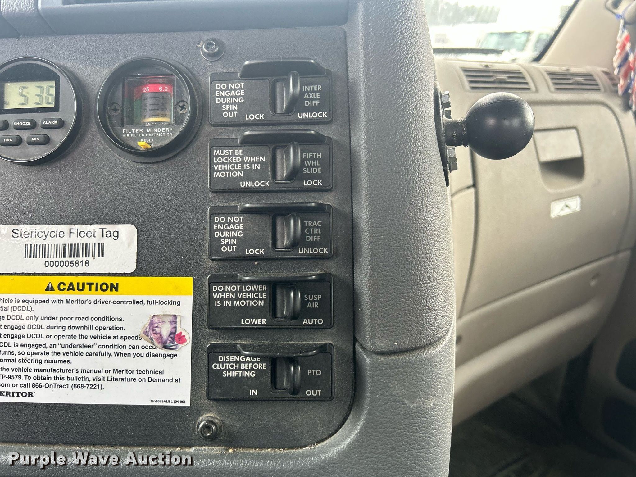2018 Freightliner Cascadia 125 semi truck. Miles: 585,060 on odometer, Hours: 14,231 on meter, VIN: 1FUJGEFG3JLJP1044, Unit #: 811333. Engine Cummins ISX15, Displacement: 15.0L, Cylinders: 6, Fuel type: Diesel, Engine brake. Transmission Eaton Fuller, Manual, Speed: 10. Chassis Axles: Tandem, Differential lock: Inter-axle, Suspension: Air Dump valves, Brakes: Air, GVWR: 60,600 lbs, Wheelbase: 214". Interior AC, Heat, Heated mirrors, Power windows, Power locks, Cruise control. Features Deck plate: Aluminum, Fifth wheel type: Air operated, Sliding, Fuel tank: Dual. Tires Size: 11R22.5. Notes Dash warning indicator: Check engine, Dash warning indicator: Stop Engine, PTO removed. Ohio title. Aim Transportation Solutions. 1500 Trumbull Avenue. Girard, OH 44420
