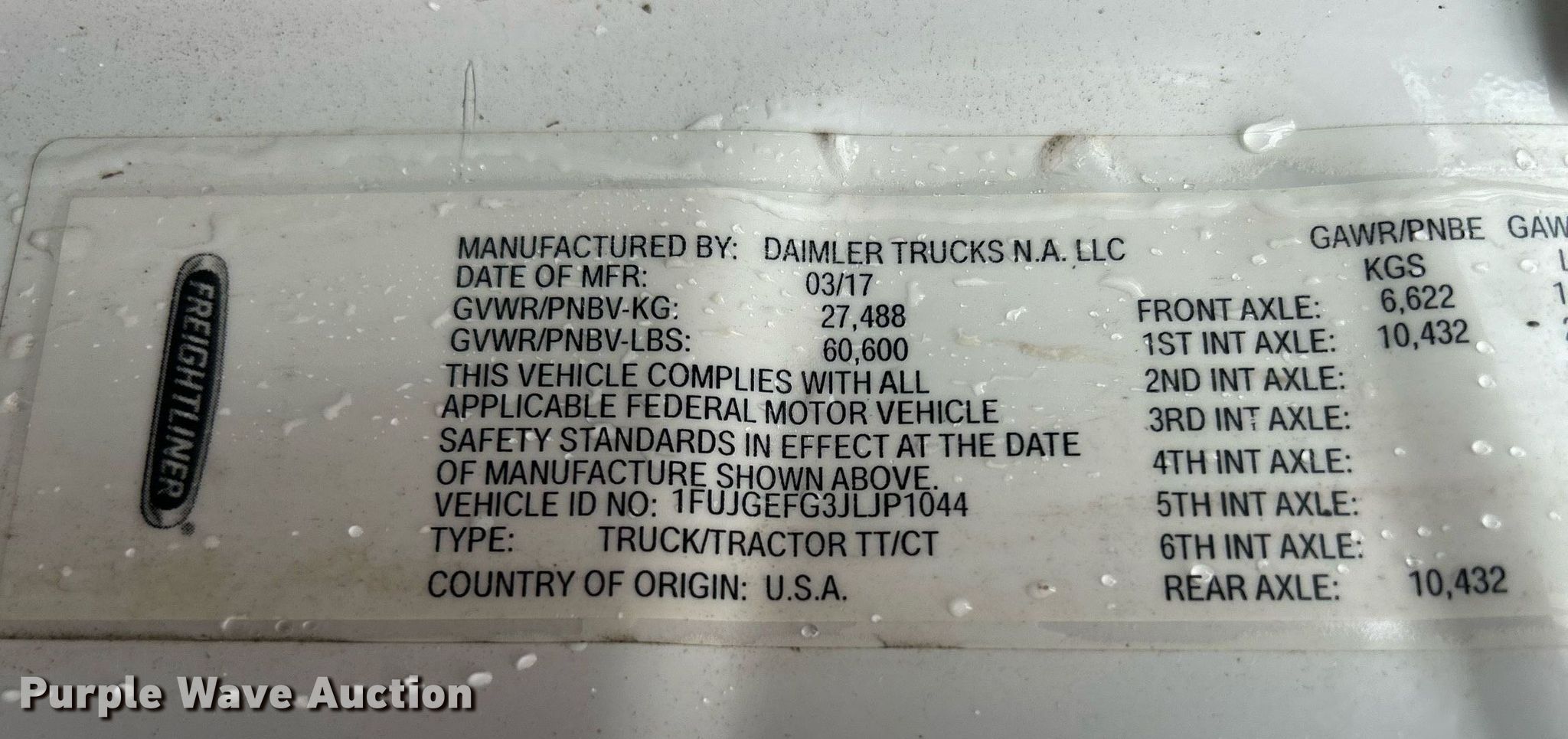 • DQ0902 image for item DQ0902 2018 Freightliner Cascadia 125  semi truck