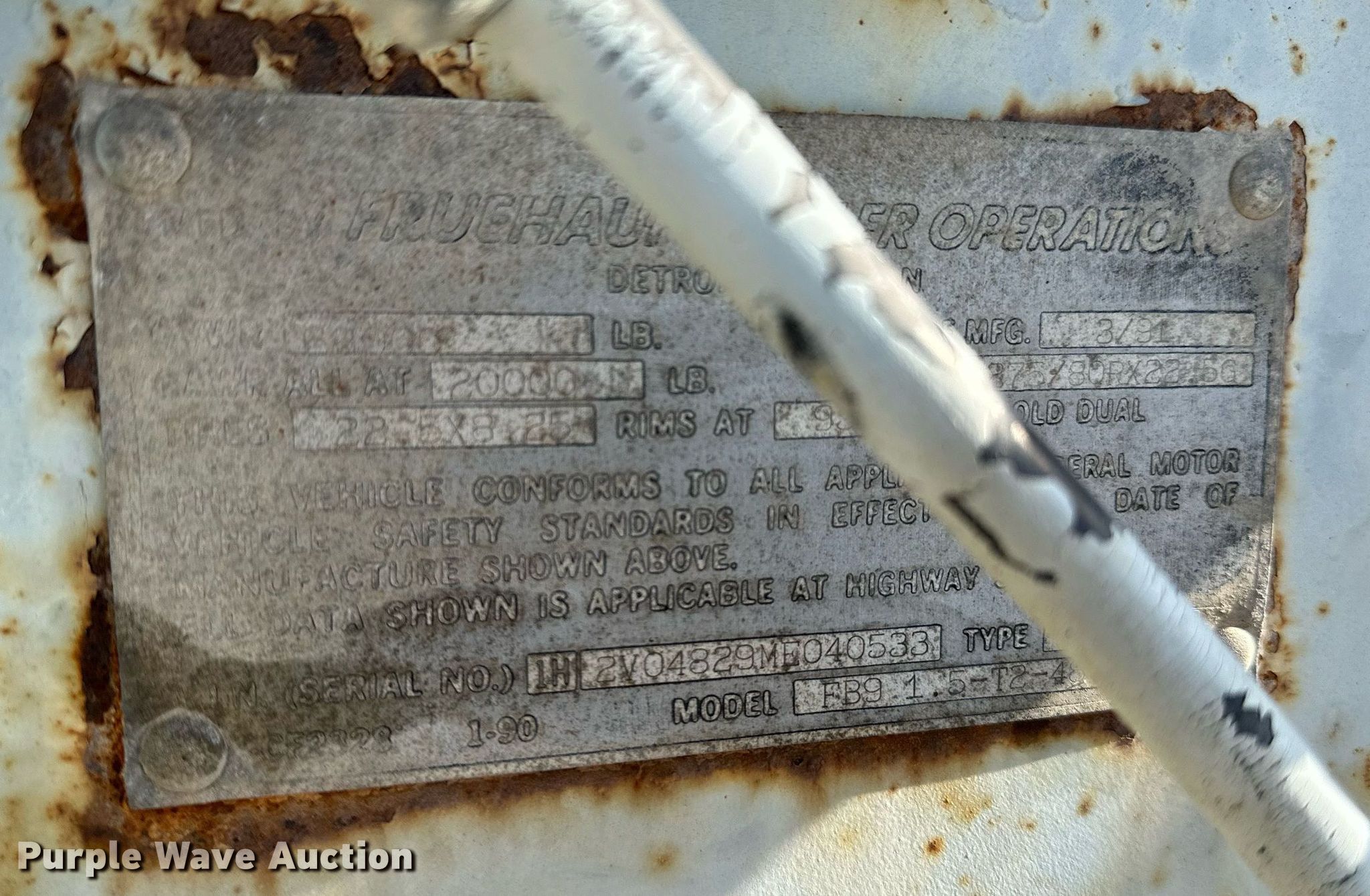 1991 Fruehauf dry van trailer. VIN: 1H2V04829ME040533. Dimensions Overall: 48' L x 102" W x 109" H. Features Deck type: Wood. Chassis Landing gear: Dual, Suspension: Air, Brakes: Air, Axles: Tandem, Sliding, GVWR: 68,000 lbs, GAWR: 20,000 lbs. Tires Steel wheels, Size: 11R22.5. Kansas title. Title distribution may be delayed up to 14 days from verification of funds. Budde Enterprises. Newton, KS 67114