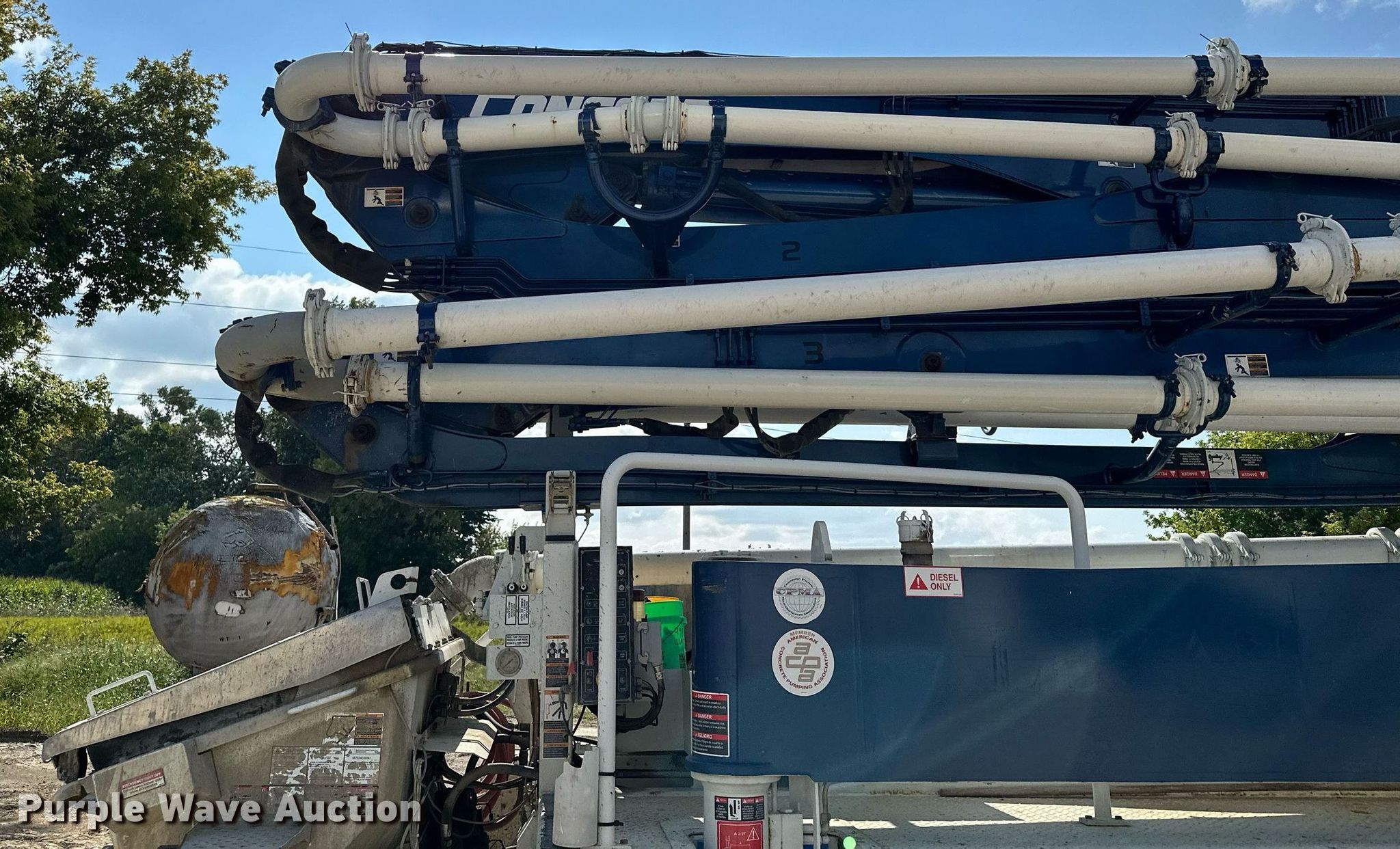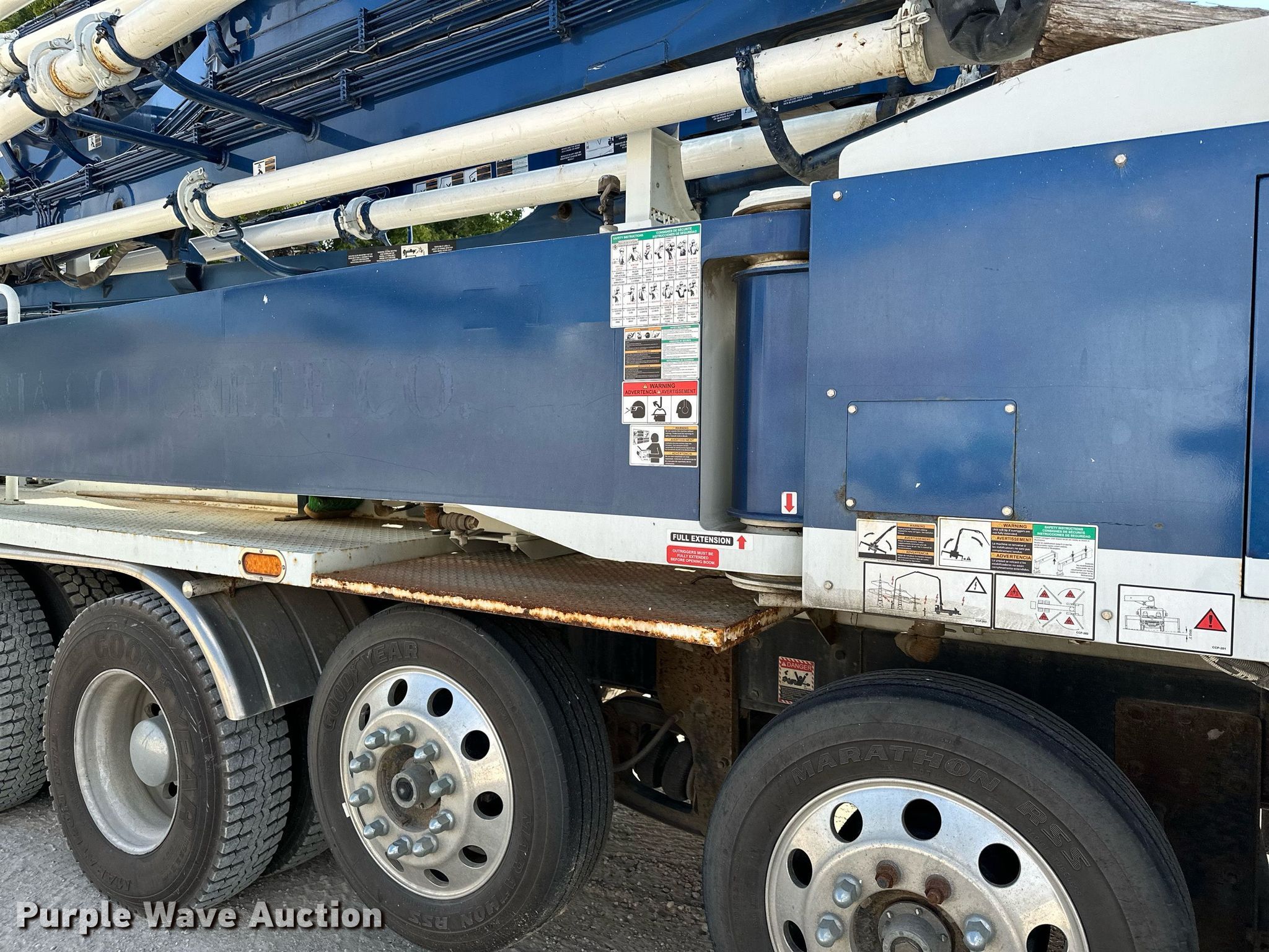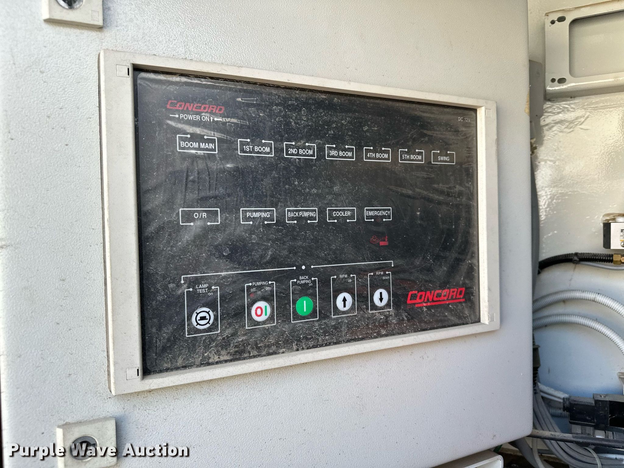 2018 Kenworth T880 concrete pump truck. Miles: 36,861 on odometer, VIN: 1NKZL40X5JJ991242, Unit #: 993. Engine Cummins X15, Displacement: 14.9L, Cylinders: 6, Fuel type: Diesel, HP: 450. Transmission Eaton Fuller, Manual, Speed: 10. Chassis Axles: Quad, Pusher axle Steerable, Differential lock: Inter-axle, Suspension: Spring over walking beam, Brakes: Air, PTO, GVWR: 66,000 lbs FAWR: 9,072 lbs, RAWR: 23,000 lbs. Interior AC, Heat, Power windows, Power locks, Cruise control, Auxiliary controls. Features Pump Concord CCP-38XZ5-170, Serial: 38XZ518170004, Hours: 205 on meter, Maximum output: 224 cu.yds. per hour, Boom Length: 123', Sections: 5, Delivery line: 5", 370 degree rotation, Hopper Capacity: 21 cu.ft.. Tires Front: 425/65-R22.5, Rear: 11R22.5, Lift axle: 255/70R22.5. Notes Dash warning indicator: Check engine. Minnesota title. Title distribution may be delayed up to 14 days from verification of funds. Duininck Concrete. 4697 Minnesota 29. Alexandria, MN 56308