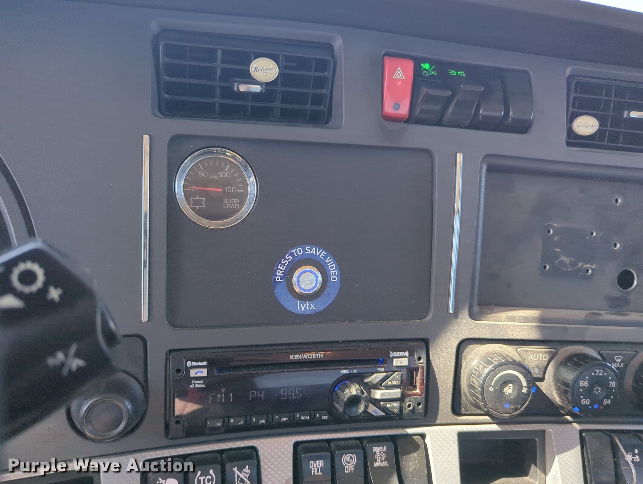 2020 Kenworth T680 semi truck. Miles: 392,792 on odometer, Hours: 8,251 on meter, VIN: 1XKYDP9X5LJ430478, Unit #: 2745. Engine PACCAR MX-13, Displacement: 12.9L, Cylinders: 6, Fuel type: Diesel, Engine brake. Transmission Automated manual. Chassis Axles: Tandem, Differential lock: Inter-axle, Suspension: Air Dump valves, Brakes: Air, PTO, Wet kit, GVWR: 5,0350 lbs FAWR: 12,350 lbs, IAWR: 19,000 lbs, RAWR: 19,000 lbs. Interior AC, Heat, Heated mirrors, Power windows, Power locks, Cruise control, Air ride cab. Features Deck plate: Aluminum, Fifth wheel type: Fixed, Fuel tank: Single. Tires Front: 295/75R22.5, Rear: 445/50R22.5. Notes Dash warning indicator: Check engine, Low coolant. Oklahoma title. Title distribution may be delayed up to 30 days from verification of funds. Gemini Motor Transport. 10220 W Reno Ave. Oklahoma City, OK 73127