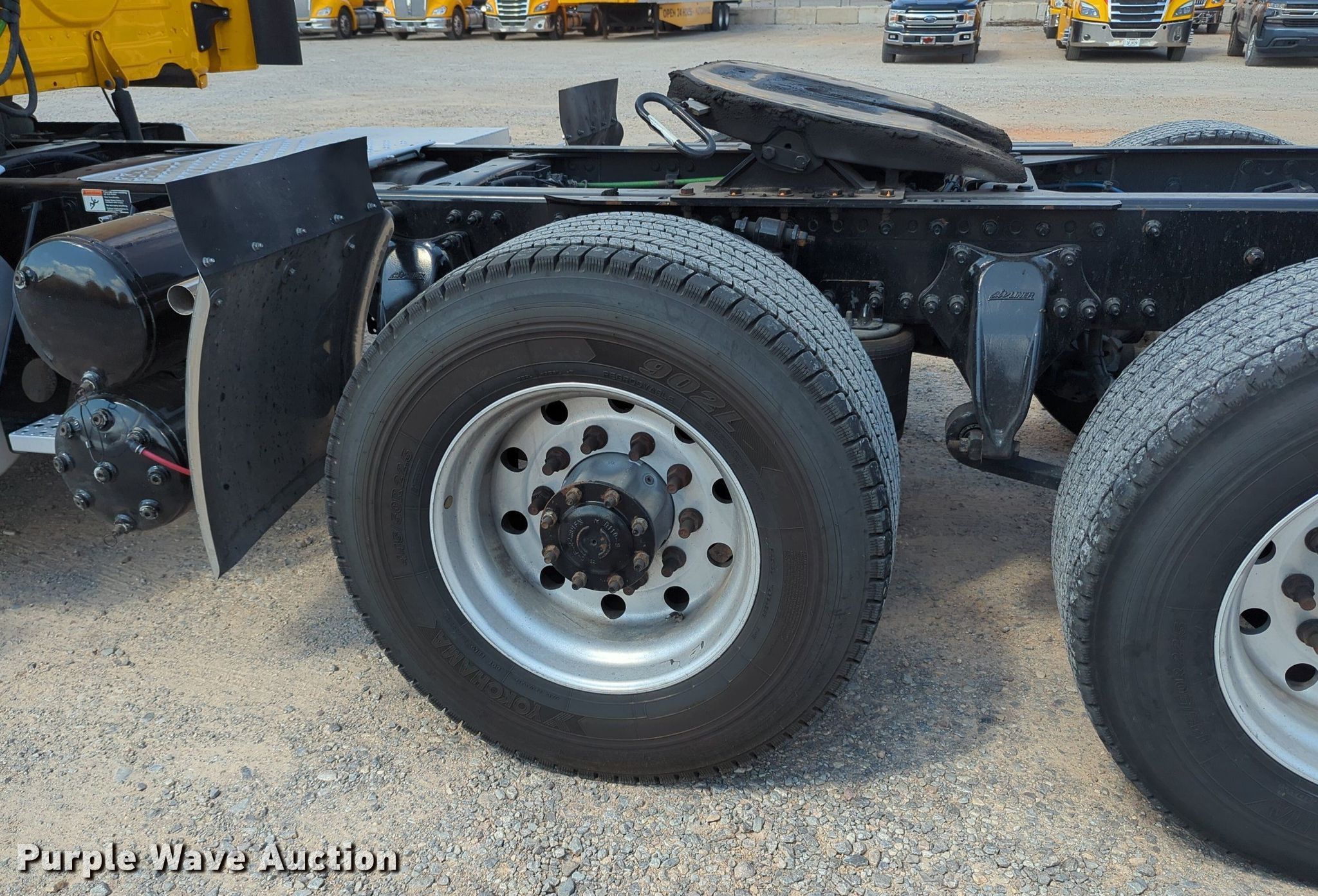 2018 Freightliner Cascadia semi truck. Miles: 850,860 on odometer, VIN: 3AKJGEDV3JSJN8557, Unit #: 1494. Engine Detroit Diesel DD13, Displacement: 12.8L, Cylinders: 6, Fuel type: Diesel, Engine brake. Transmission Automated manual. Chassis Axles: Tandem, Differential lock: Inter-axle, Suspension: Air Dump valves, Brakes: Air, GVWR: 52,350 lbs FAWR: 12,350 lbs, IAWR: 20,000 lbs, RAWR: 20,000 lbs. Interior AC, Heat, Heated mirrors, Power windows, Power locks, Cruise control, Air ride cab. Features Deck plate: Aluminum, Fifth wheel type: Fixed, Fuel tank: Single. Tires Front: 295/75R22.5, Rear: 445/50R22.5. Notes Dash warning indicator: Check engine, Oil leak. Oklahoma title. Title distribution may be delayed up to 30 days from verification of funds. Gemini Motor Transport. 10220 W Reno Ave. Oklahoma City, OK 73127