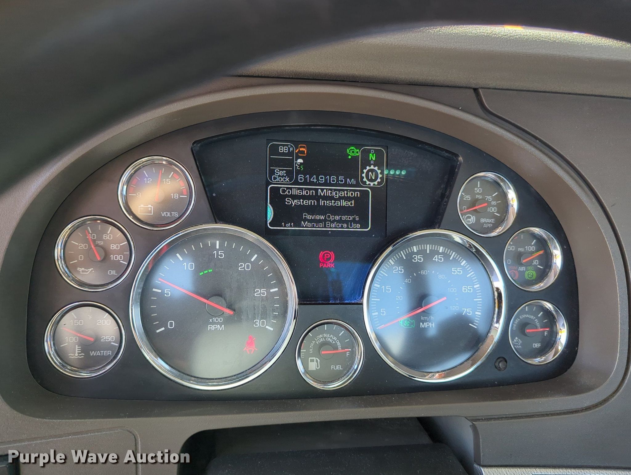 2019 Kenworth T680 semi truck. Miles: 614,916 on odometer, VIN: 1XKYDP9XXKJ254686. Engine Paccar MX-13, Displacement: 12.9L, Cylinders: 6, Fuel type: Diesel, Engine brake. Transmission Automated manual. Chassis Axles: Tandem, Differential lock: Inter-axle, Suspension: Air Dump valves, Brakes: Air, GVWR: 50,350 lbs FAWR: 12,350 lbs, IAWR: 19,000 lbs, RAWR: 19,000 lbs. Interior AC, Heat, Heated mirrors, Power windows, Power locks, Cruise control, Air ride cab. Features Deck plate: Aluminum, Fifth wheel type: Fixed, Fuel tank: Single. Tires Front: 295/75R22.5, Rear: 445/50R22.5. Oklahoma title. Title distribution may be delayed up to 30 days from verification of funds. Gemini Motor Transport. 10220 W Reno Ave. Oklahoma City, OK 73127