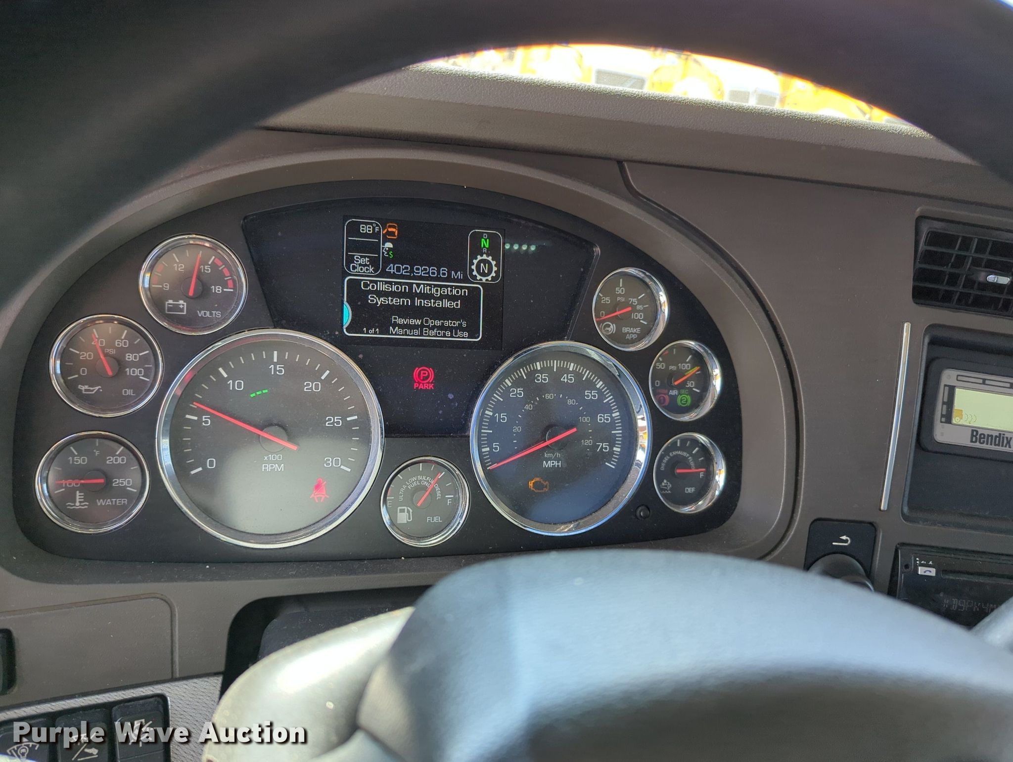 2019 Kenworth T680 semi truck. Miles: 402,927 on odometer, VIN: 1XKYDP9X7KJ258128, Unit #: 2612. Engine Paccar MX-13, Displacement: 12.9L, Cylinders: 6, Fuel type: Diesel, Engine brake. Transmission Automated manual. Chassis Axles: Tandem, Differential lock: Inter-axle, Suspension: Air Dump valves, Brakes: Air, GVWR: 50,350 lbs FAWR: 12,350 lbs, IAWR: 19,000 lbs, RAWR: 19,000 lbs. Interior AC, Heat, Heated mirrors, Power windows, Power locks, Cruise control, Air ride cab. Features Deck plate: Aluminum, Fifth wheel type: Fixed, Fuel tank: Single. Tires Front: 295/75R22.5, Rear: 445/50R22.5. Notes Dash warning indicator: Check engine. Oklahoma title. Title distribution may be delayed up to 30 days from verification of funds. Gemini Motor Transport. 10220 W Reno Ave. Oklahoma City, OK 73127