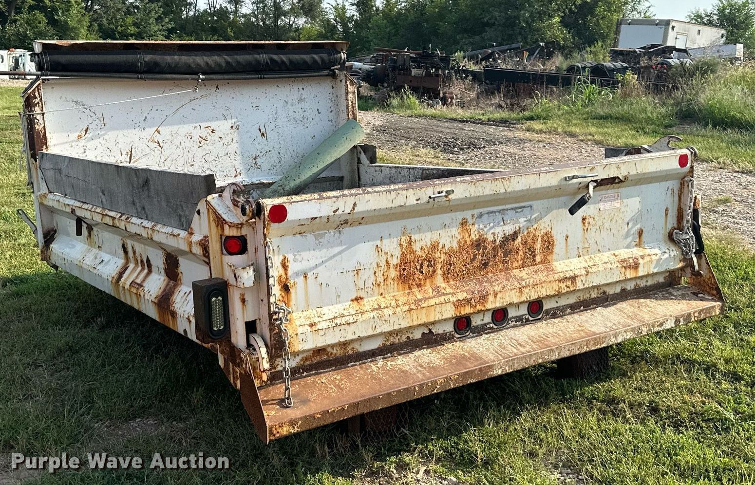 Purple Wave is selling a used Truck Part and Attach. in Kansas. This item is a Truck parts with the following: Dump bed, 10' L x 96" W, Side height: 12", Bed type: Steel dumpbed, Roll tarp, End gate: Manual, Oil/lube system, Hose reels, Truck storage box, Air hose reel