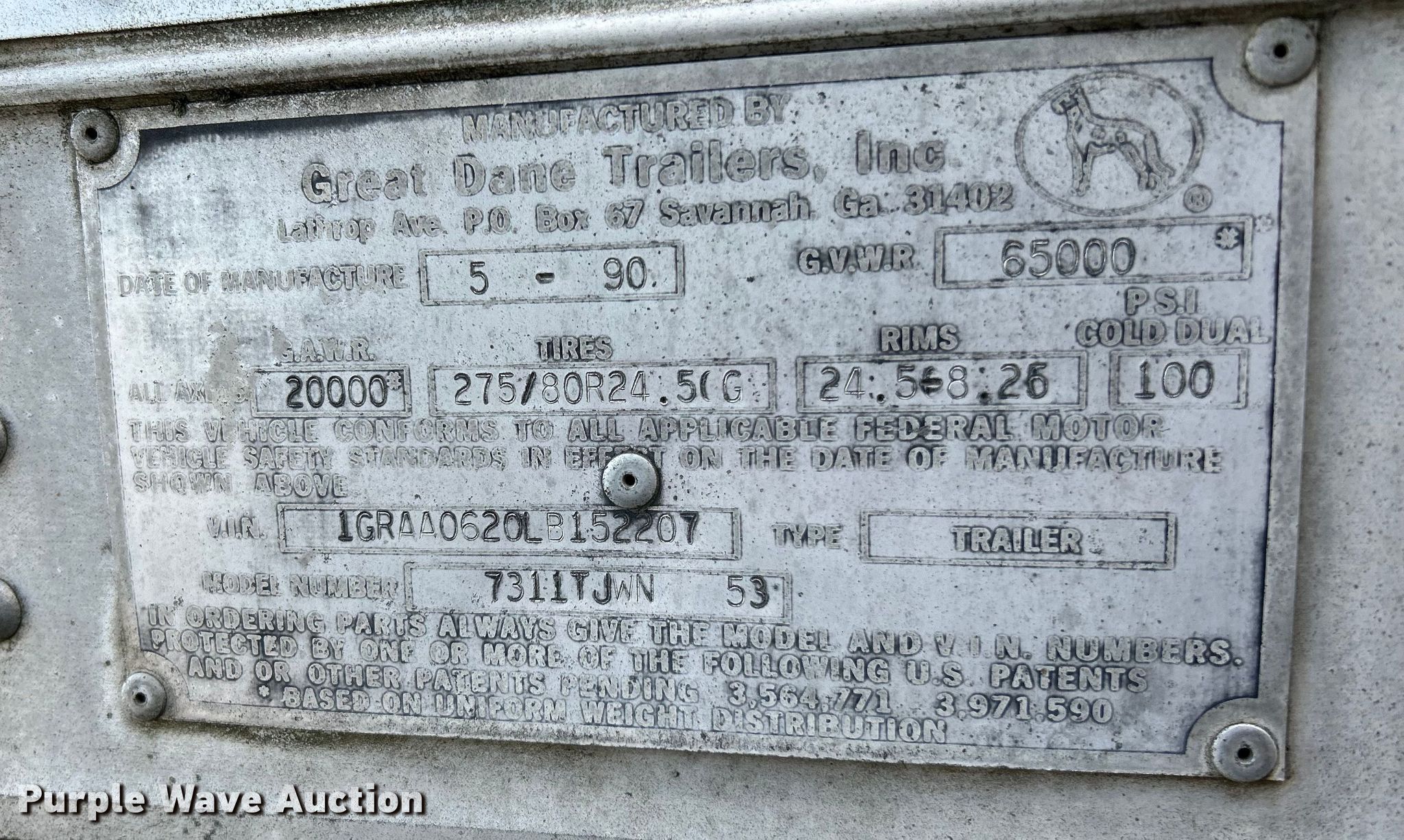 Purple Wave is selling a used Dry Van Trailer in Indiana. This item is a 1990 Great Dane 7311TJWN 53 dry van trailer with the following: VIN: 1GRAA0620LB152207