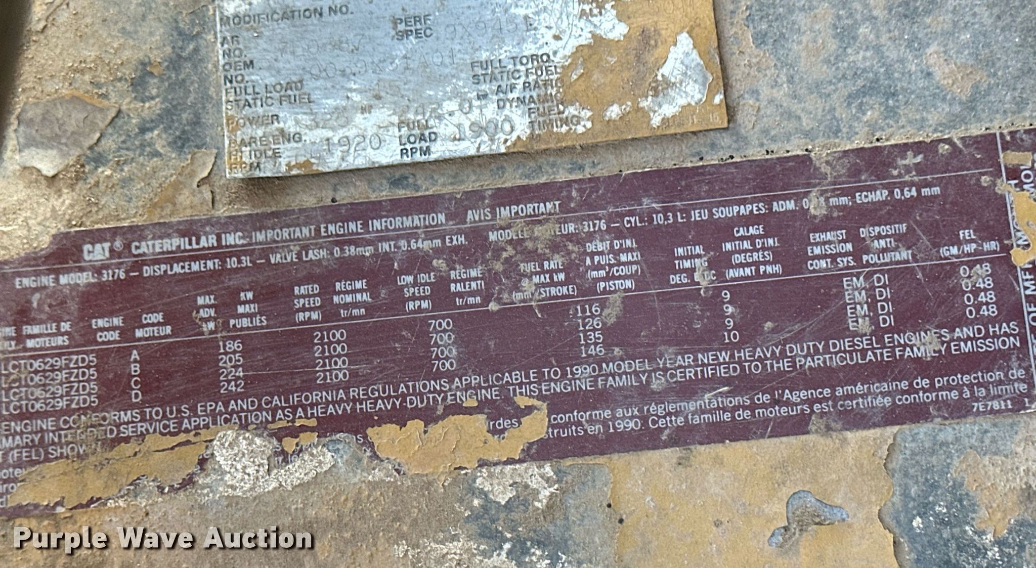 1991 Kenworth T800 semi truck. Miles: 132,885 on odometer, VIN: 1XKDDE9X4MJ562734. Engine Caterpillar 3176, Displacement: 10.3L, Cylinders: 6, Fuel type: Diesel. Transmission Manual, Speed: 10. Chassis Axles: Tandem, Differential lock: Inter-axle, Suspension: Air, Brakes: Air. Interior AC, Heat, Heated mirrors, Cruise control. Features Fifth wheel type: Air operated, Sliding, Fuel tank: Dual. Tires Size: 11R24.5. Notes Dash warning indicator: Low air pressure, Windshield chipped or cracked, Odometer has exceeded mechanical limits. Oklahoma classic title. Mileage has not been verified. Exempt will be written in the odometer disclosure on the title. Title distribution may be delayed up to 14 days from verification of funds. Turpin, OK 73950