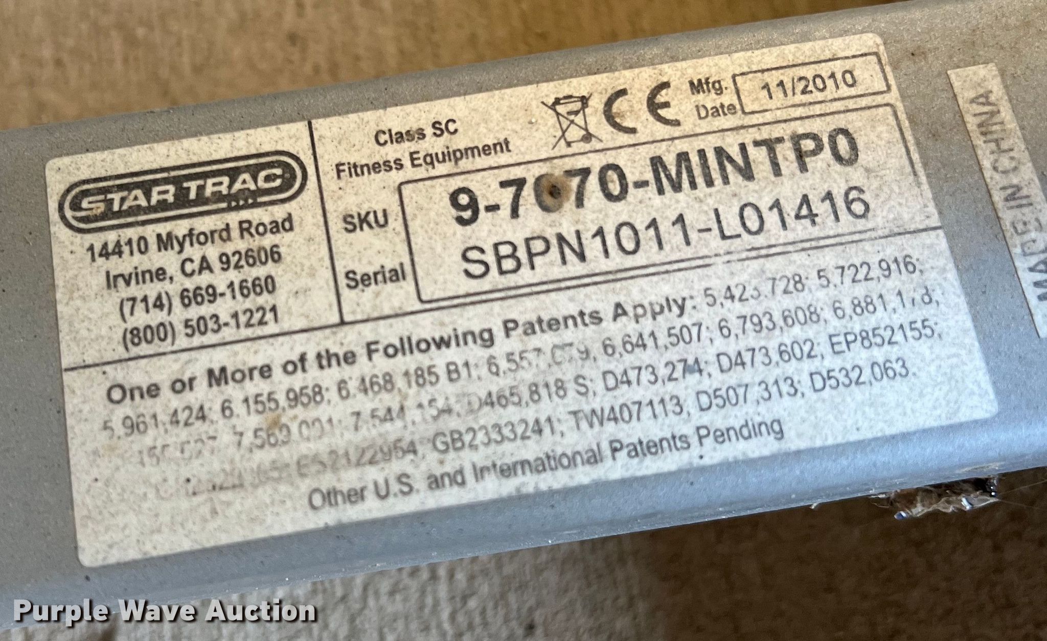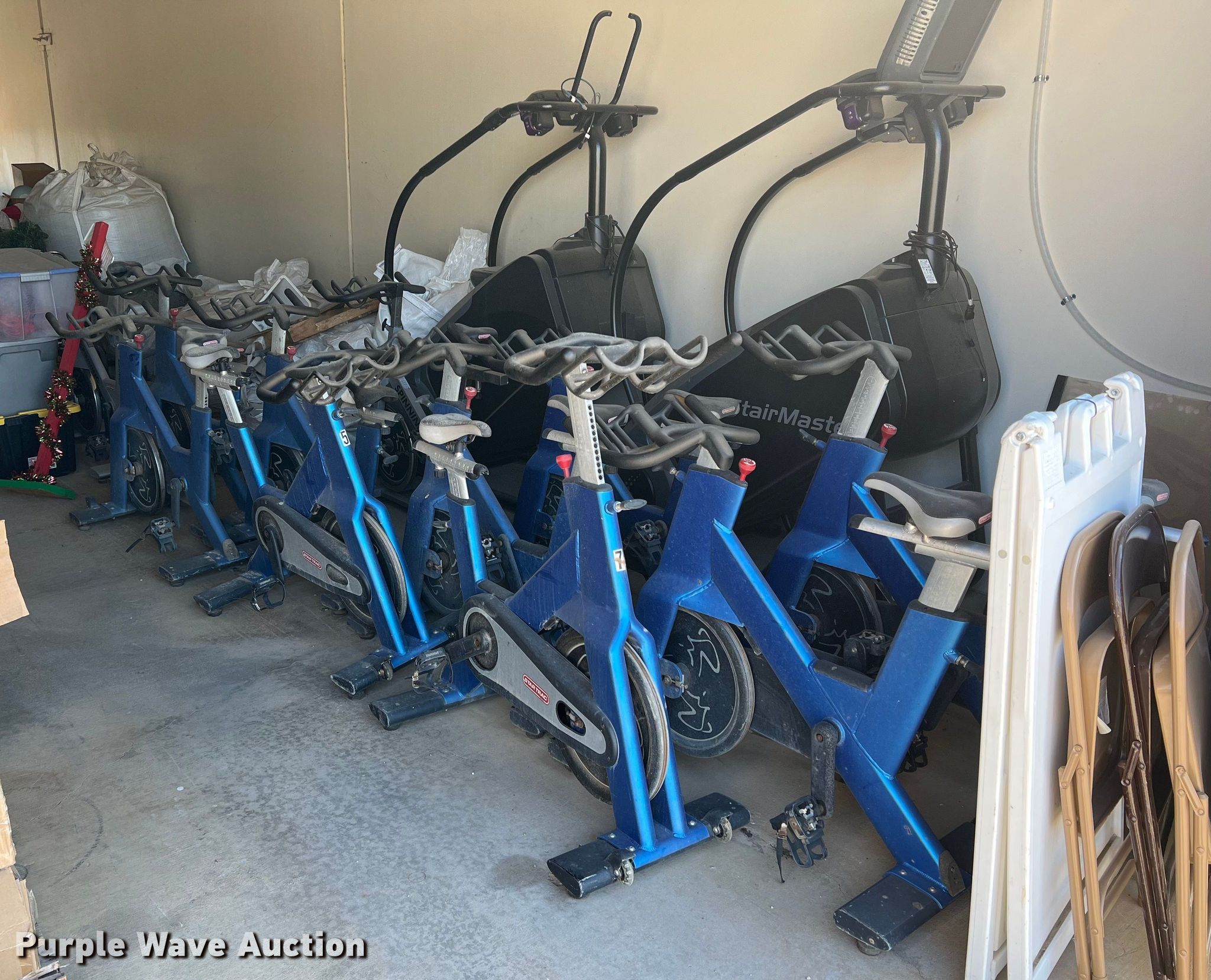 Purple Wave is selling a used Sporting Goods in Texas. This item is a Gym equipment with the following: (15) Star Trac spin cycles, (2) Stair Master machines, Leg press machine, (2) tricep machines, Leg curl machine