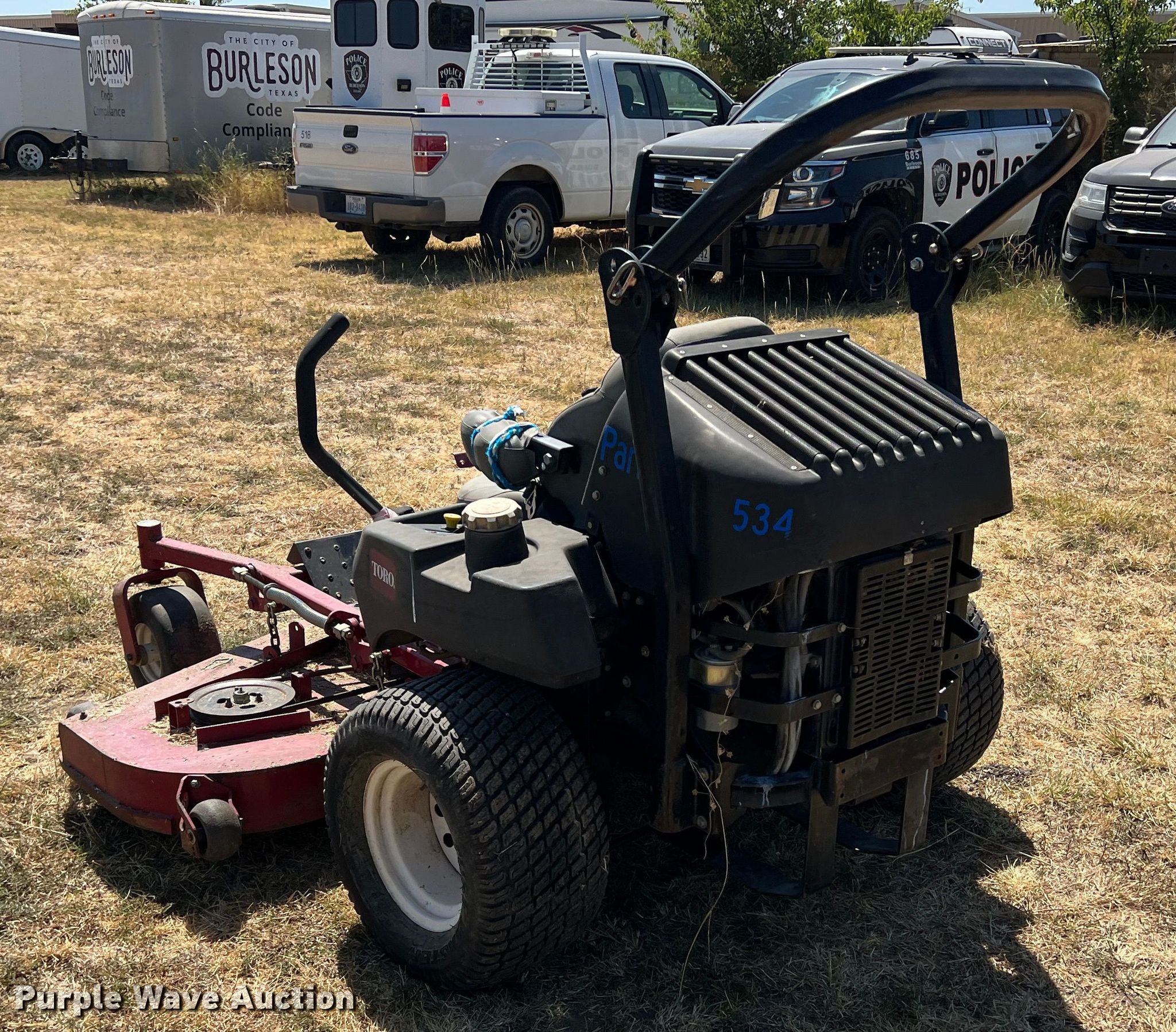 Toro 74274 ZTR lawn mower. Hours: 1,882 on meter, Cutting width: 72", Serial: 310000153. Engine Kubota D902, Cylinders: 3, Fuel type: Diesel. Transmission Hydrostatic. Tires Front: 13x6.50-6, Rear: 24x12.00-12. Notes Hole in radiator. City of Burleson TX. 725 Southeast John Jones Drive. Burleson, TX 76028