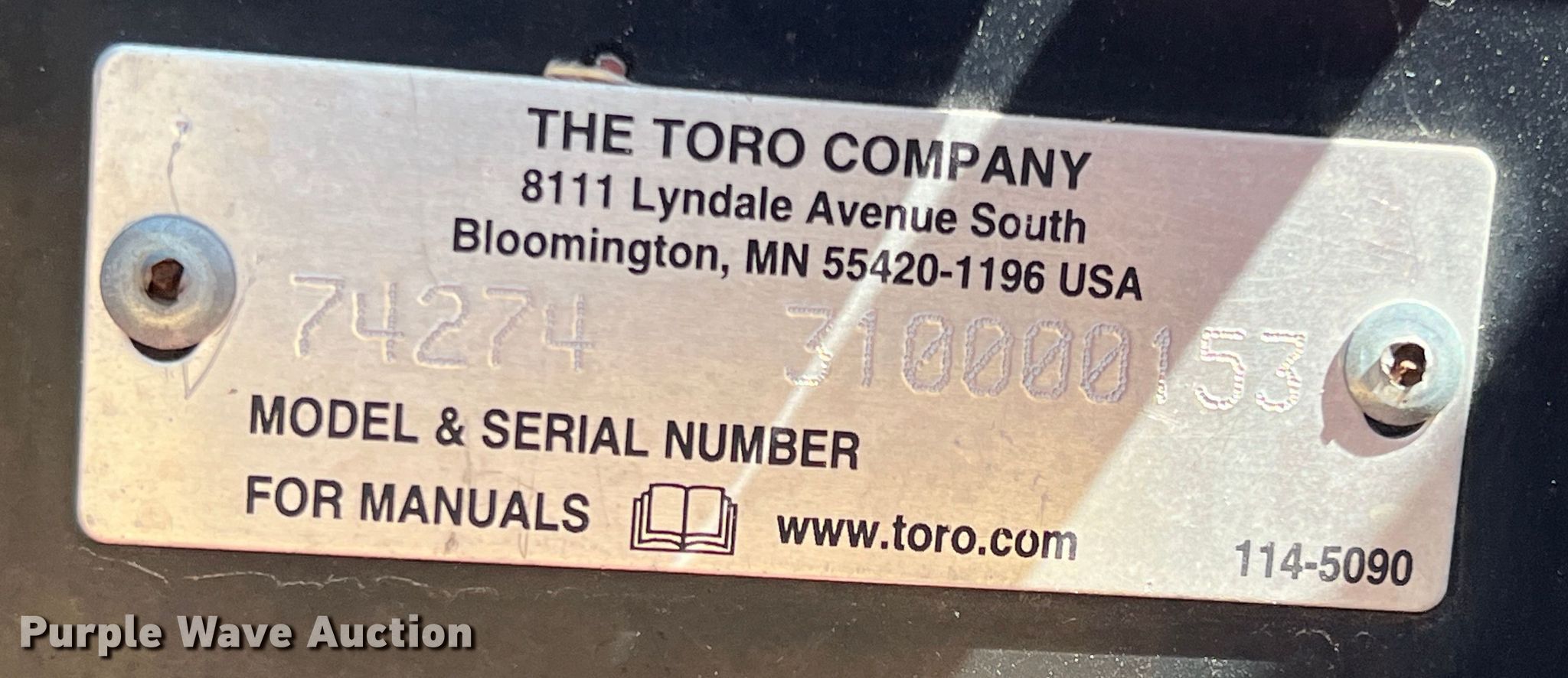 Purple Wave is selling a used Commercial Turf Mower in Texas. This item is a Toro 74274 ZTR lawn mower with the following: Hours: 1,882 on meter, Cutting width: 72", Serial: 310000153