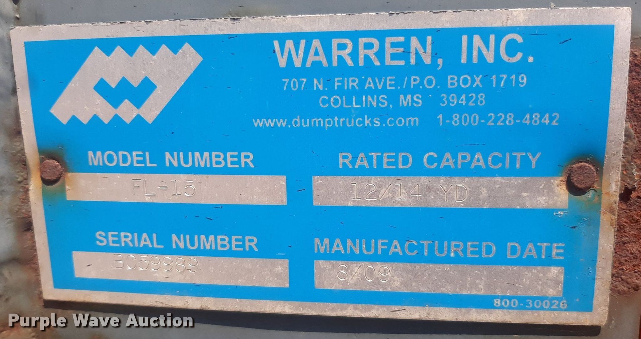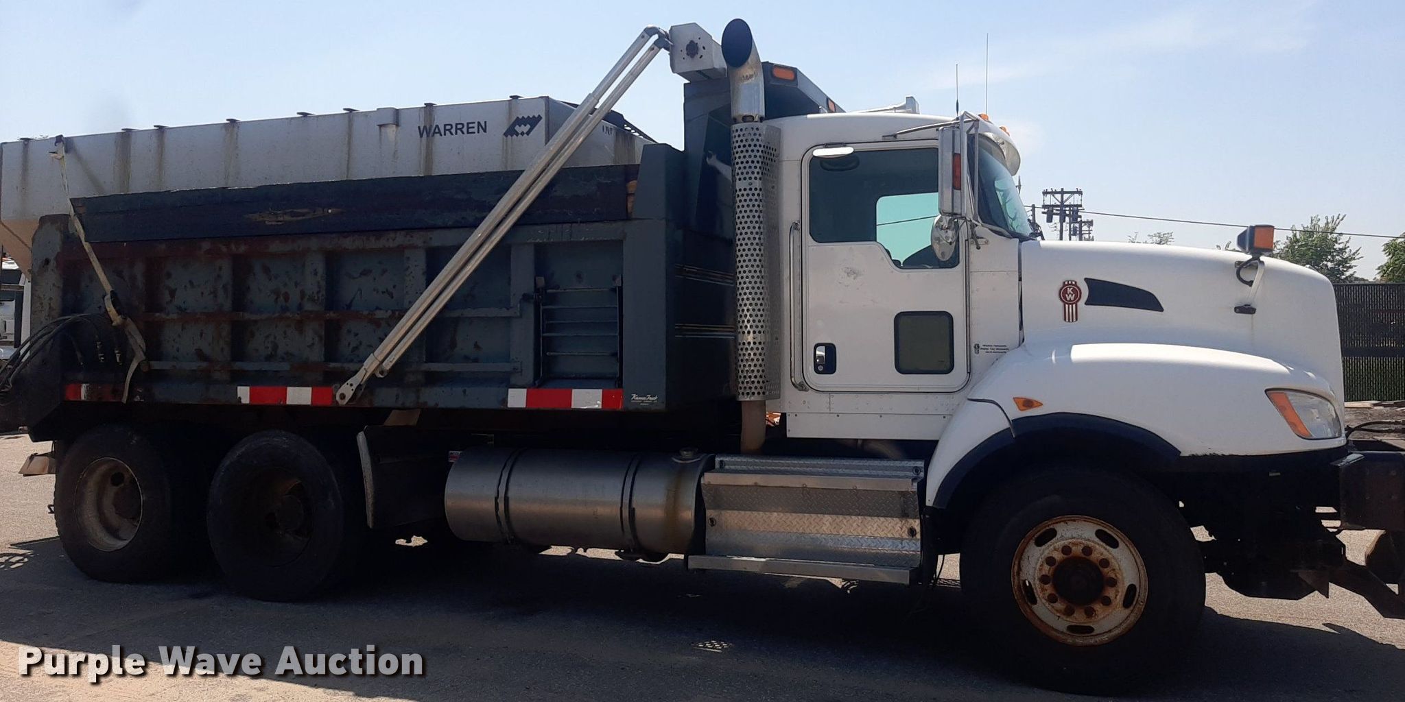 2010 Kenworth T400 dump truck. Miles: 146,573 on odometer, Hours: 8,343 on meter, VIN: 3BKBL50X9AF268709. Engine Displacement: 8.9L, Cylinders: 6, Fuel type: Diesel. Transmission Automatic. Chassis Axles: Tandem, Differential lock: Full, Suspension: Air Dump valves, Brakes: Air, PTO, Front mount PTO, GVWR: 60,000 lbs FAWR: 20,000 lbs, IAWR: 20,000 lbs, RAWR: 20,000 lbs. Interior AC, Heat. Features Dump bed Warren Inc FL-15, Capacity: 12/14 cu.yd., 15' L x 96" W, Side height: 40", Bed type: Steel, Roll tarp, Ram: Single , End gate: Air operated, Warren spreader. Tires Front: 315/80R22.5, Rear: 11R22.5. Notes Tailgate included, Dash warning indicator: Check engine. Kansas title. Title distribution may be delayed up to 14 days from verification of funds. Sedgwick County. 1021 Stillwell. Wichita, KS 67213