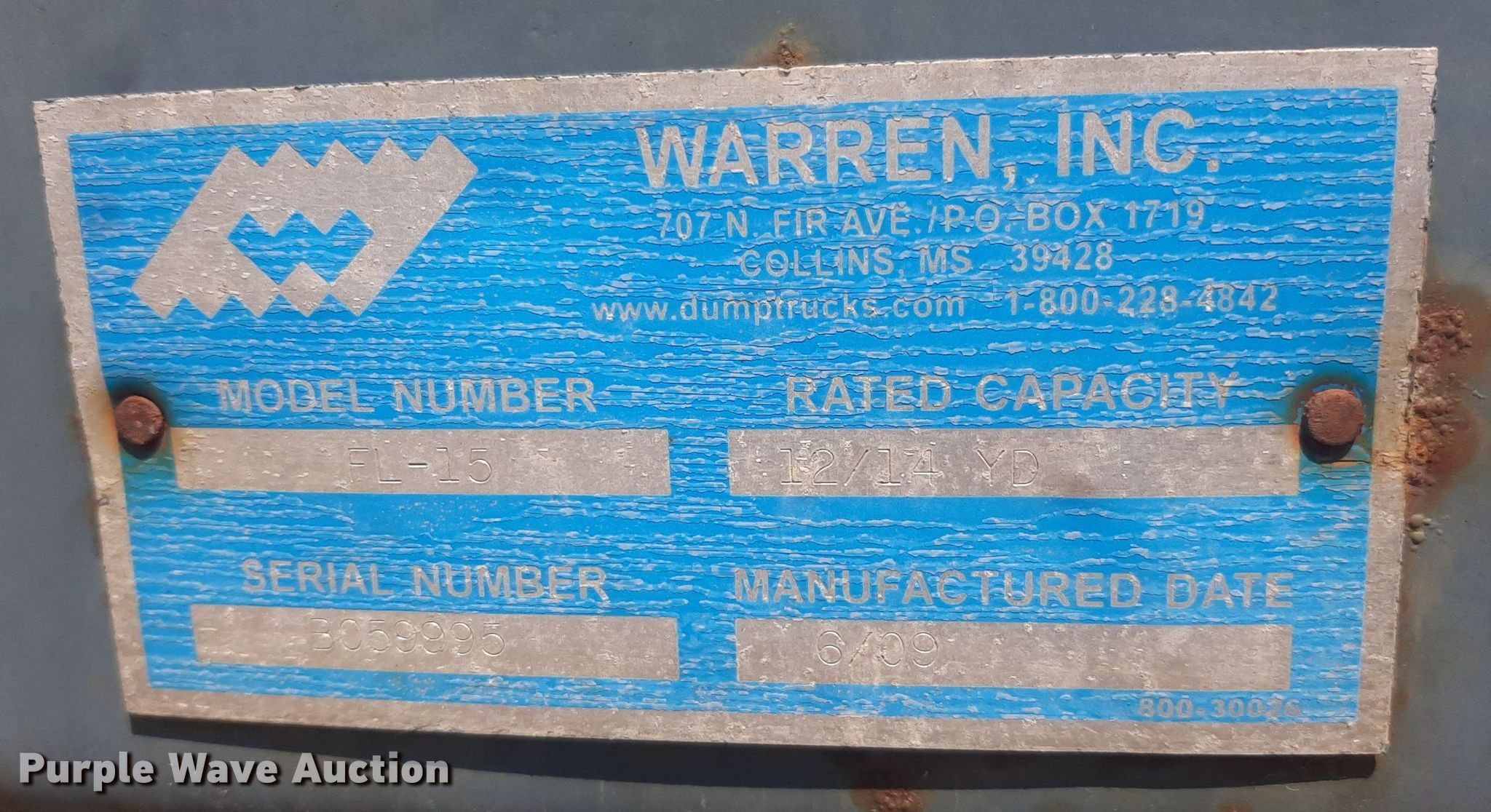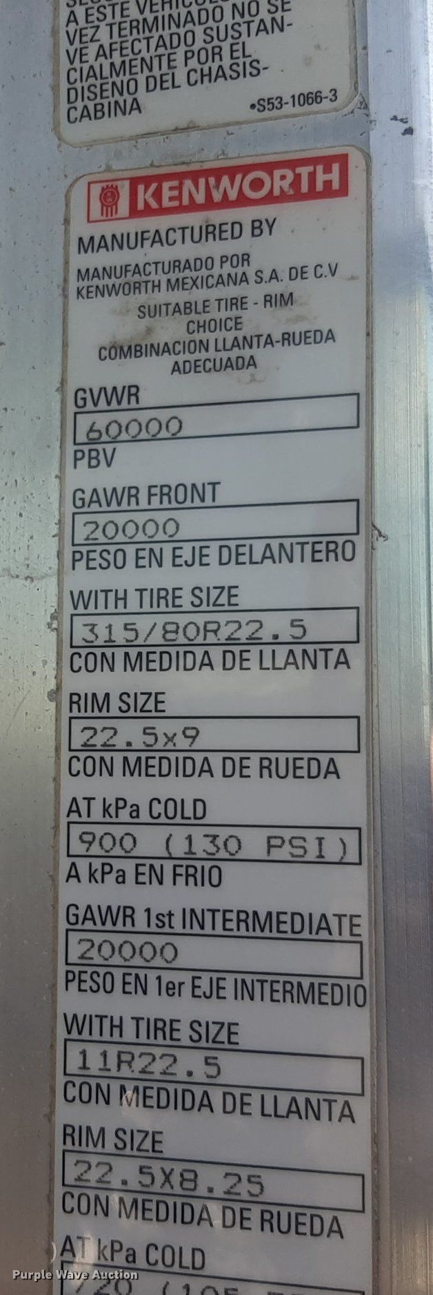 2010 Kenworth T400 dump truck. Miles: 153,677 on odometer, Hours: 731 on meter, VIN: 3BKBL50X5AF268707. Engine Displacement: 8.9L , Cylinders: 6, Fuel type: Diesel. Transmission Automatic. Chassis Axles: Tandem, Differential lock: Inter-axle, Suspension: Air Dump valves, Brakes: Air, PTO, Front mount PTO, GVWR: 60,000 lbs FAWR: 20,000 lbs, IAWR: 20,000 lbs, RAWR: 20,000 lbs. Interior AC, Heat. Features Dump bed Warren Inc FL-15, Capacity: 12/14 cu.yd., 15' L x 96" W, Side height: 40", Bed type: Steel, Roll tarp, Ram: Single, Monroe spreader Serial: 08-03-9019. Tires Front: 315/80R22.5, Rear: 11R22.5. Notes Tailgate included, Dash warning indicator: ABS, Non-operational dump bed, possible controller issue. Kansas title. Title distribution may be delayed up to 14 days from verification of funds. Sedgwick County. 1021 Stillwell. Wichita, KS 67213