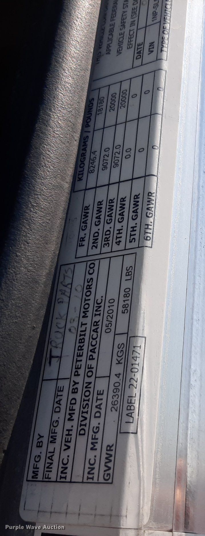 Purple Wave is selling a used Construction Dump Truck in Kansas. This item is a 2011 Peterbilt 365 dump truck with the following: Miles: 208,061 on odometer, VIN: 1NPSL50X9BD120149