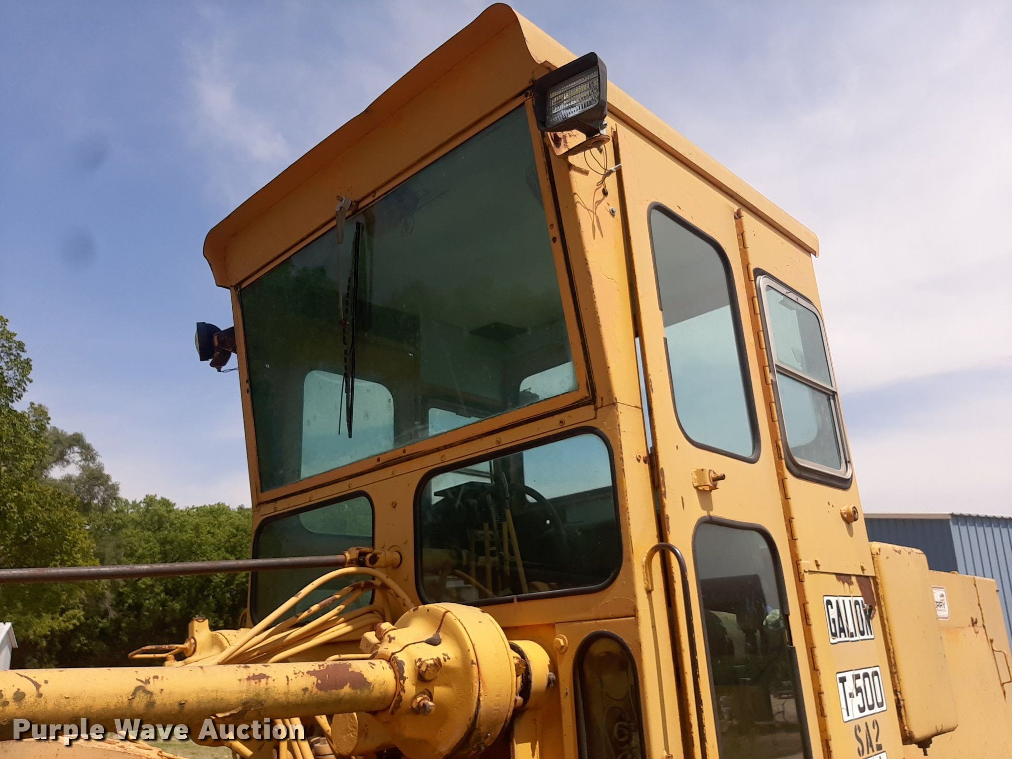 1970 Galion T500 rigid frame motor grader. Serial: 04119. Engine Cylinders: 6, Fuel type: Diesel. Transmission Powershift. Chassis Rigid frame. Operators station Enclosed cab, Heat, Hydraulic control valves: 8. Features Moldboard: Tip control, Side shift, Moldboard total length: 12', Scarifier Scarifier type: Mid-mounted. Tires Front: 14.00, Rear: 14.00-24. City of Marion, KS. Marion, KS 66861