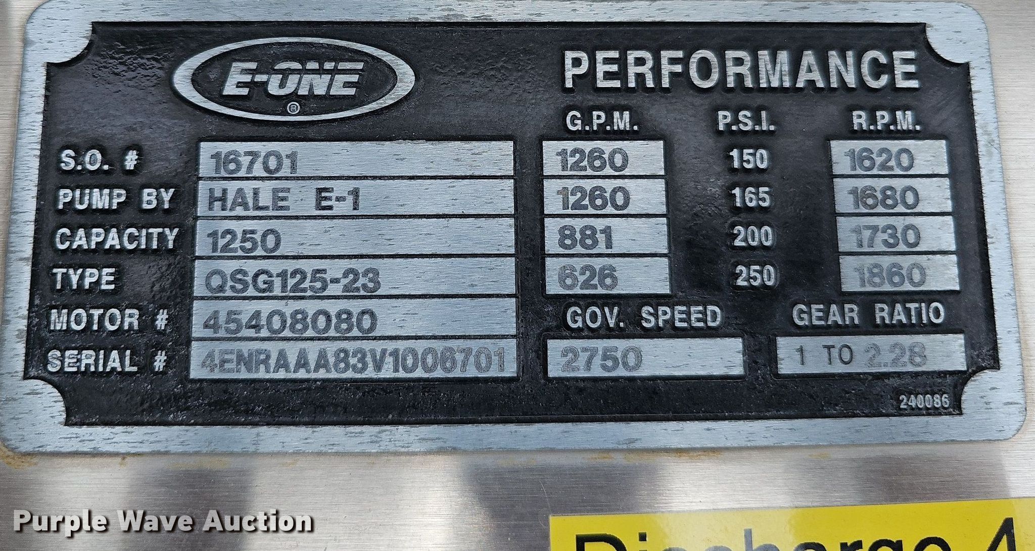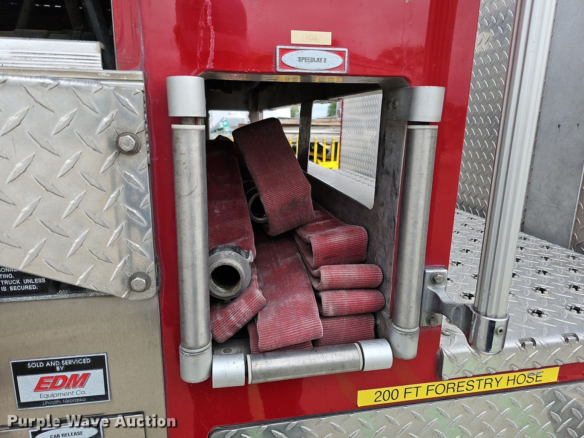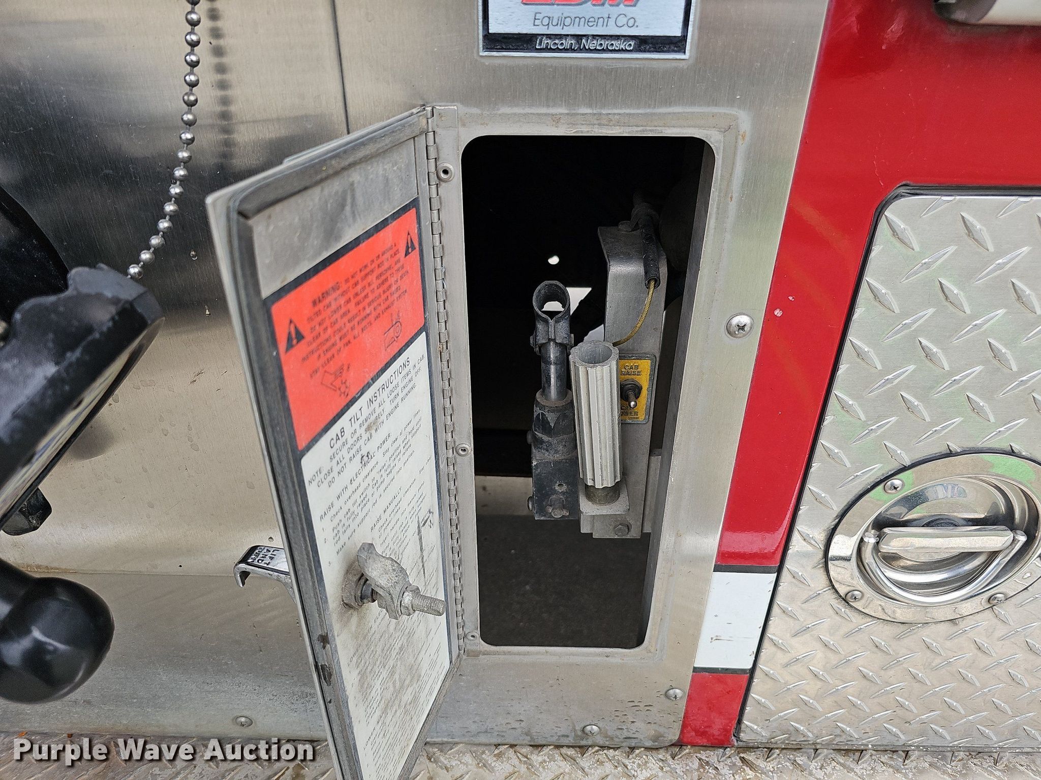 1997 Emergency One Cyclone II pumper fire truck. Miles: 45,045 on odometer, Hours: 3,192 on meter, VIN: 4ENRAAA83V1006701. Engine Cummins, Displacement: 8.3L, Cylinders: 6, Fuel type: Diesel. Transmission Allison, Automatic. Chassis Axles: Single, Suspension: Spring, Brakes: Air, GVWR: 41,208 lbs, Wheelbase: 206". Interior AC, Heat, Auxiliary controls. Features Fire truck body Elevated deck gun 1,260 gpm, Pump 1,260 gpm, Certification: May 2022, Ground ladder, Hose, PA/ siren controls, (15) Hoses: (4) 2" diameter, (3) 6" diameter, (8) 3" diameter, (2) fire nozzles. Tires Front: 385/65R22.5, Rear: 11R22.5. Nebraska title. Title distribution may be delayed up to 14 days from verification of funds. City of Lincoln Fire & Rescue. 901 West Bond Street. Lincoln, NE 68521