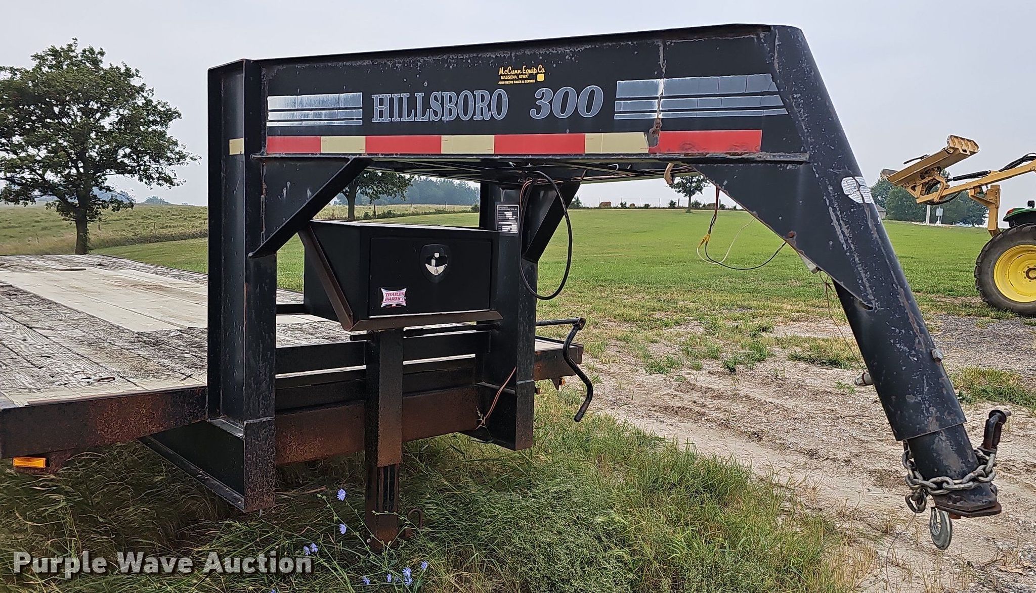 2000 Hillsboro 300 equipment trailer. VIN: 1TH3A3KAXY1017961. Dimensions Overall: 37' 6" L x 101" W, Deck: 30'. Features Deck type: Wood. Chassis Hitch: Gooseneck, Landing gear: Single, Suspension: Spring, Brakes: Electric, Axles: Tandem, GVWR: 23,520 lbs, GAWR: 10,000 lbs. Tires Steel wheels, Size: ST235/85R16. Notes Deck boards need replaced. Iowa title. Seller is a government entity who will be assigning and distributing the title. Please contact the seller for distribution questions. Adams County Secondary Roads. 2004 200th Street. Corning, IA 50841