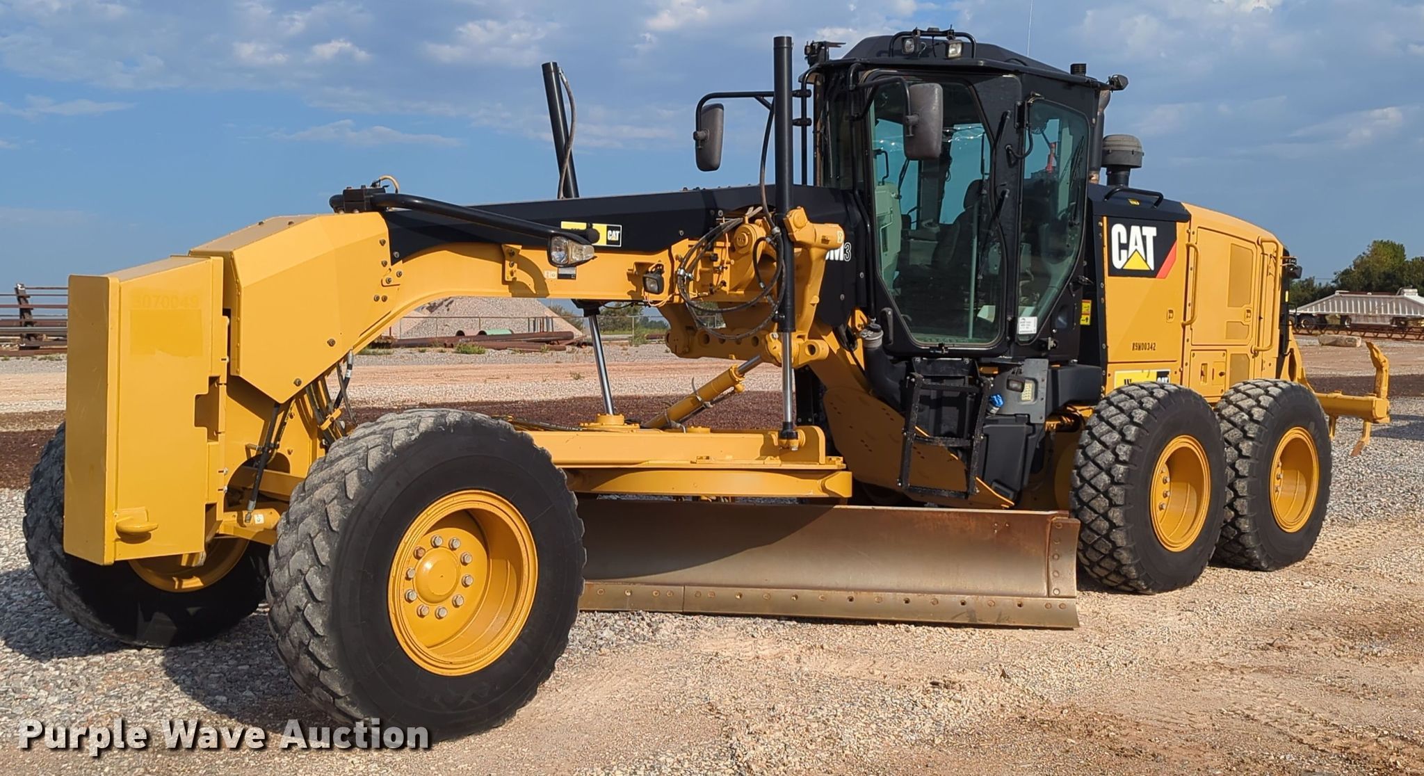 Purple Wave is selling a used Motor Grader in Oklahoma. This item is a 2016 Caterpillar 140M3 motor grader with the following: Hours: 5,480 on meter, Serial: CAT0140MTN9M00342, Unit #: D307-0049