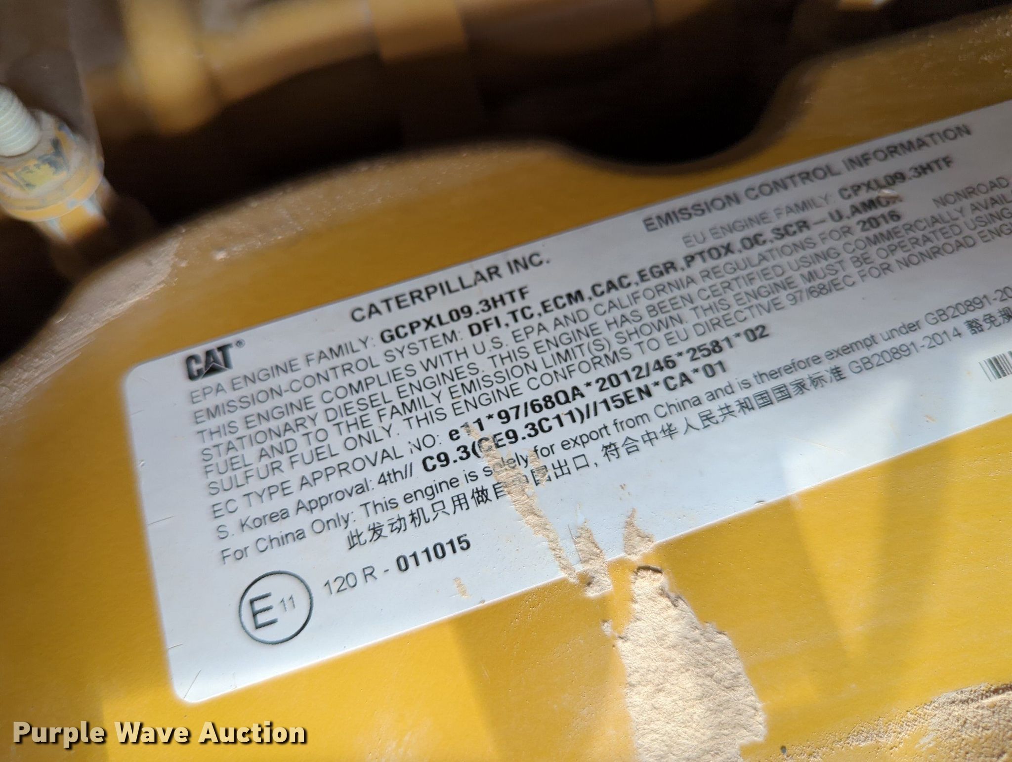 2016 Caterpillar 140M3 motor grader. Hours: 5,480 on meter, Serial: CAT0140MTN9M00342, Unit #: D307-0049. Engine Caterpillar C9.3, Displacement: 9.3L, Cylinders: 6, Fuel type: Diesel. Transmission Powershift. Operators station Enclosed cab, AC, Heat, Steering: Joystick. Features Moldboard: Tip control, Side shift, Moldboard total length: 14', Rear ripper Ripper shanks: 11. Tires Size: 17.5R25. Grady County. 860 County Street 2910. Tuttle, OK 73089