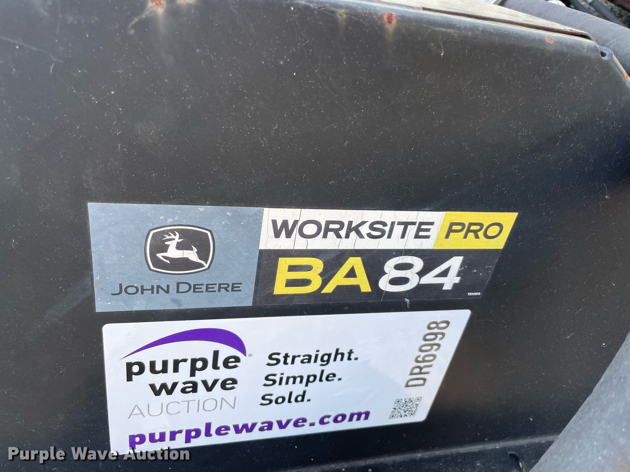 Purple Wave is selling a used Skid Steer Attach. in Oklahoma. This item is a John Deere BA84 skid steer broom with the following: Serial: T0BA84X800189, Unit #: 444-0010, Width: 84"