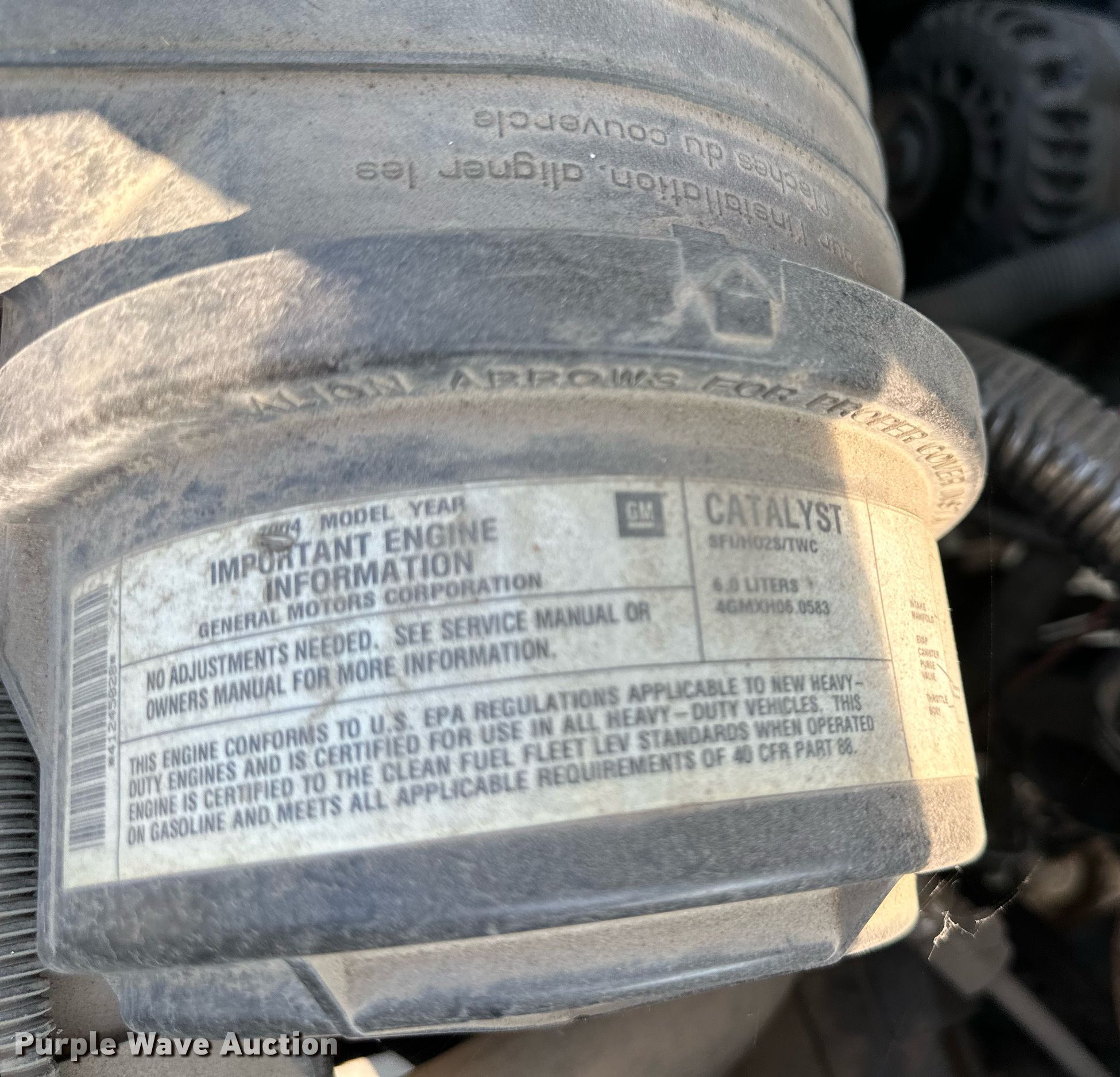 2004 Chevrolet Express 3500 van. Miles: 111,321 on odometer, VIN: 1GAHG39U841245028. Engine Displacement: 6.0L V8 OHV, Cylinders: 8, Fuel type: Gas. Transmission Automatic. Interior AC, Heat. Tires Size: 245/75R16. Notes Possible transmission issues. Missouri title. Title distribution may be delayed up to 14 days from verification of funds. City of St. Joseph, MO. 2316 South 3rd Street. Saint Joseph, MO 64501