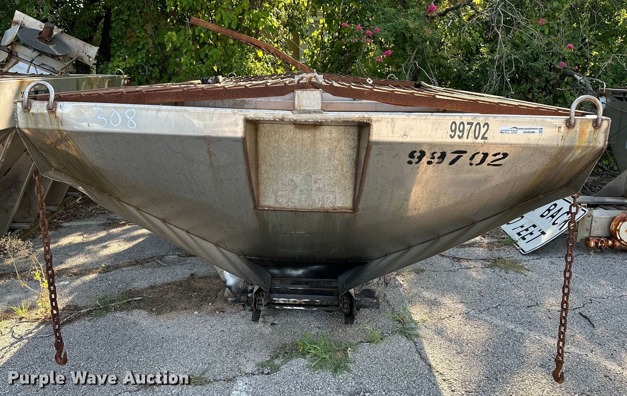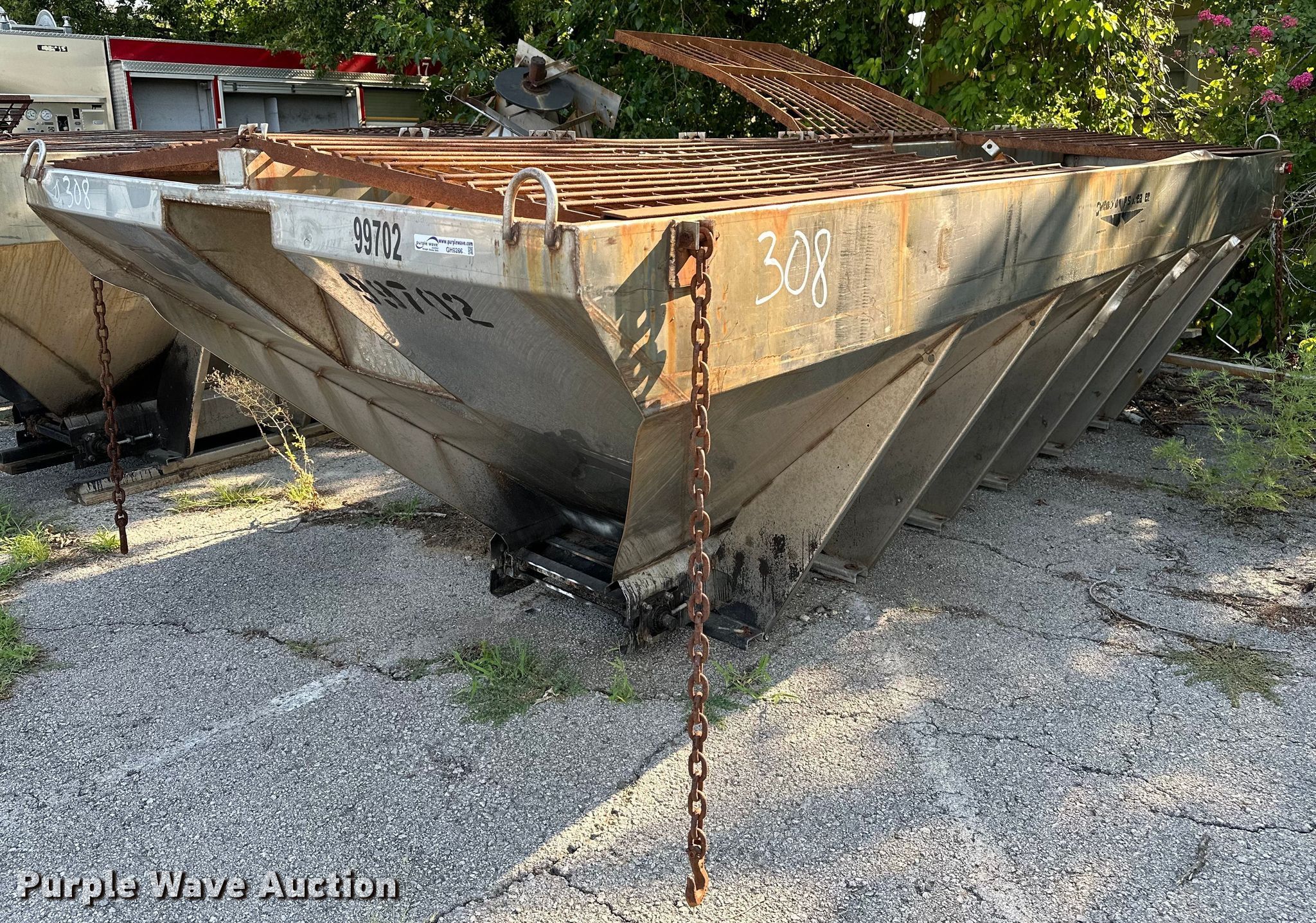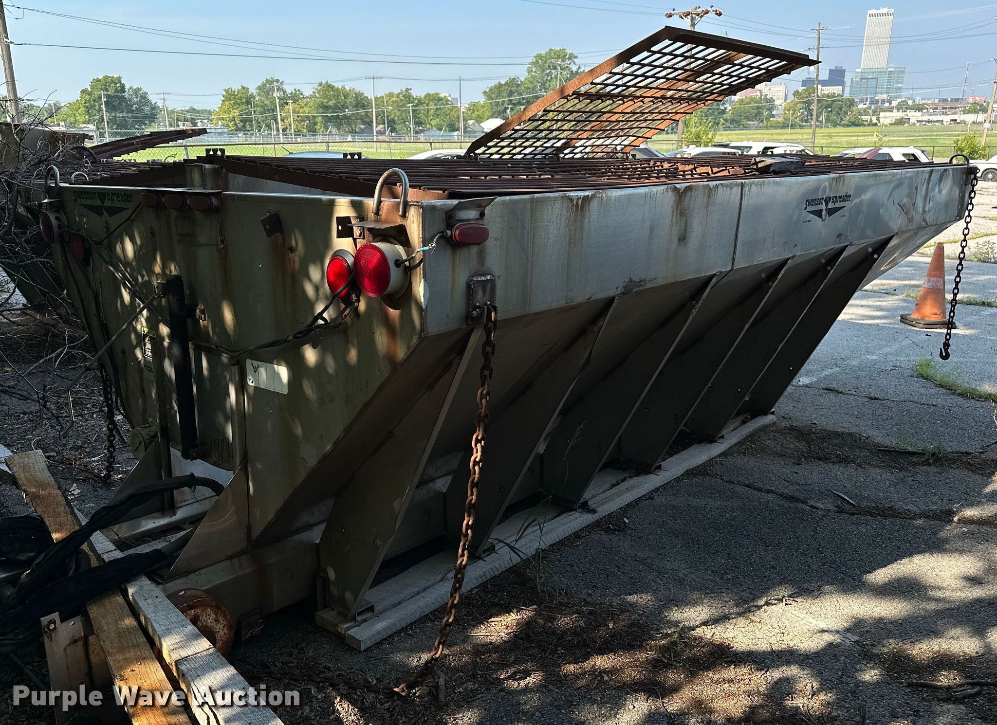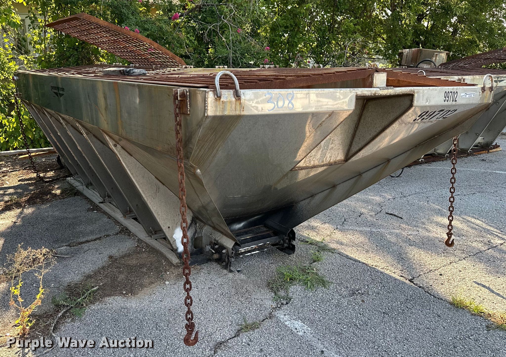 Purple Wave is selling a used Truck Part and Attach. in Oklahoma. This item is a Swenson spreader with the following: Overall: 17' 4" L x 7' W, Box: 15' L, Unit #: 308, Unknown operating condition