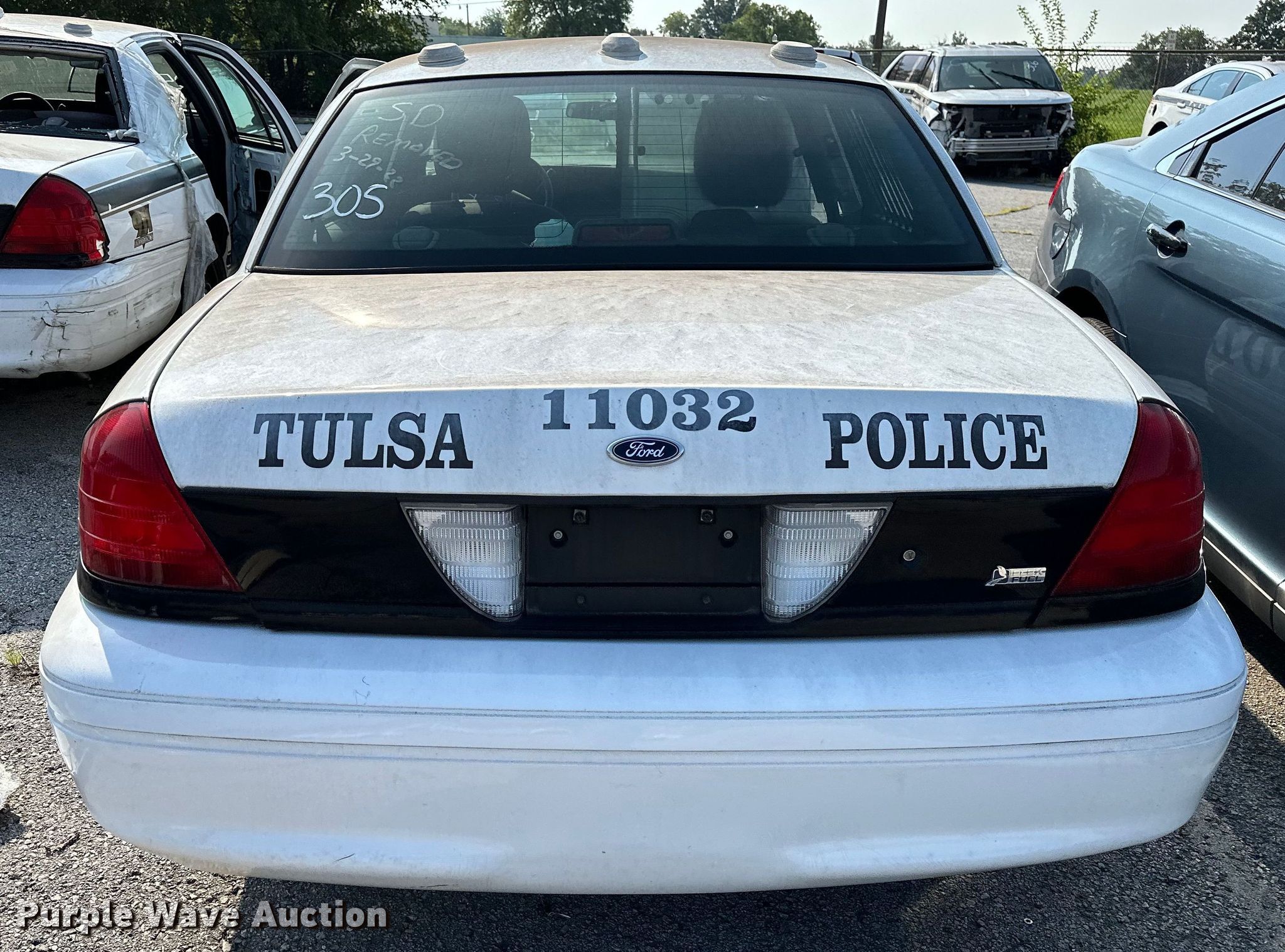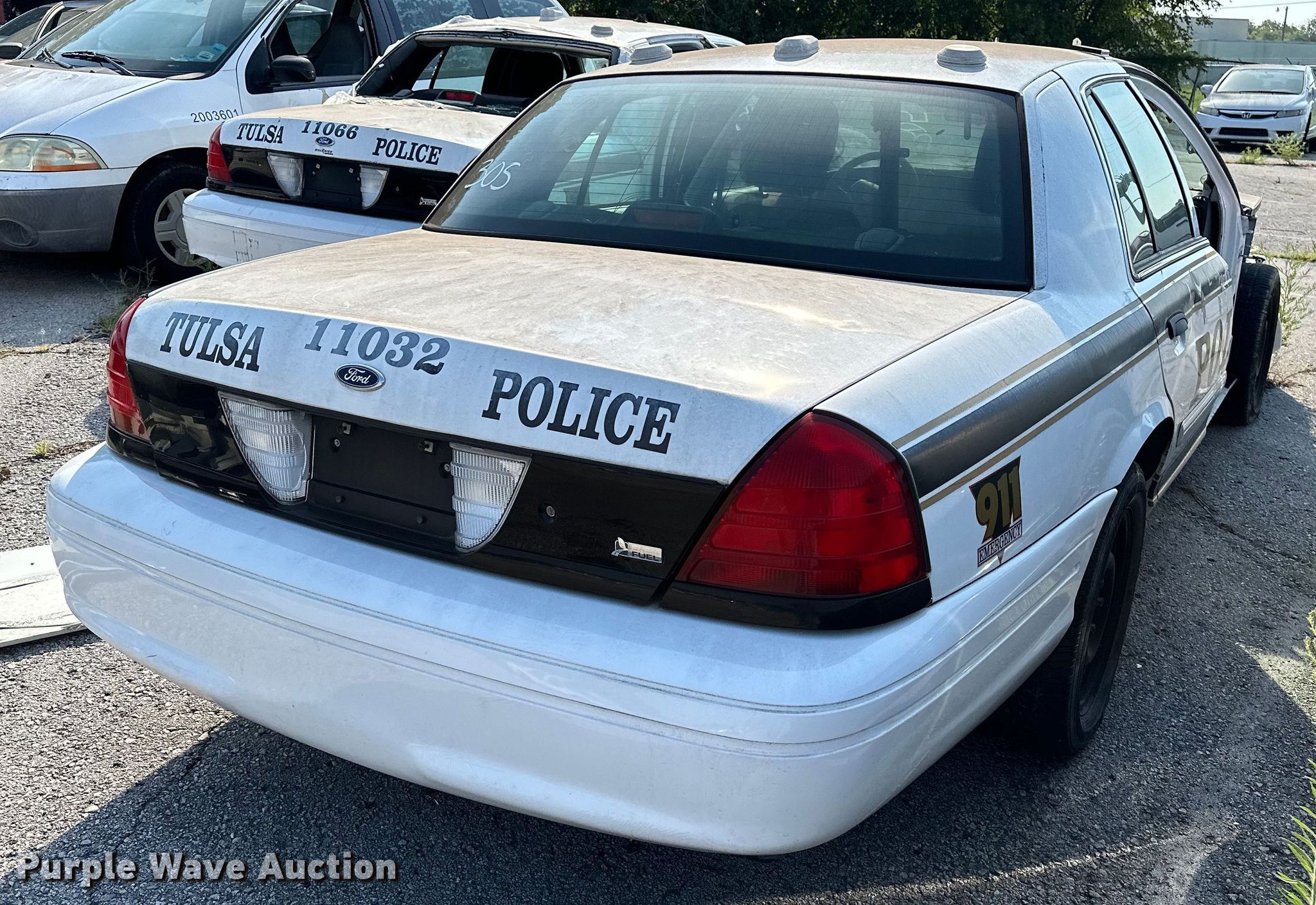 (2) Ford Crown Victoria Police Interceptors. 2011 Ford Crown Victoria. Miles: Unknown, VIN: 2FABP7BV7BX112424, Unit #: 305. Engine Displacement: 4.6L V8 SOHC, Cylinders: 8, Fuel type: Gas. Transmission Automatic. Interior AC, Heat, Power windows, Power locks. Tires Size: 235/55R17. Notes Deals will be removed prior to auction, Wreck damage, Unit must be towed or hauled, Parts missing, Front driver door issues, will not close, Door missing, Non-operational unit. 2011 Ford Crown Victoria Miles: Unknown, VIN: 2FABP7BV7BX112469, Unit #: 305. Engine Displacement: 4.6L V8 SOHC, Cylinders: 8, Fuel type: Gas. Transmission Automatic. Interior AC, Heat, Power windows, Power locks. Tires Size: 235/55R18. Notes Wreck damage, Unit must be towed or hauled, Non-operational rear doors, Glass broken, Non-operational unit. Oklahoma titles. Title distribution may be delayed up to 30 days from verification of funds. Seller is a government entity who will be assigning and distributing the title. Please contact the seller for distribution questions. City of Tulsa, OK. 208 North Trenton Avenue. Tulsa, OK 74120