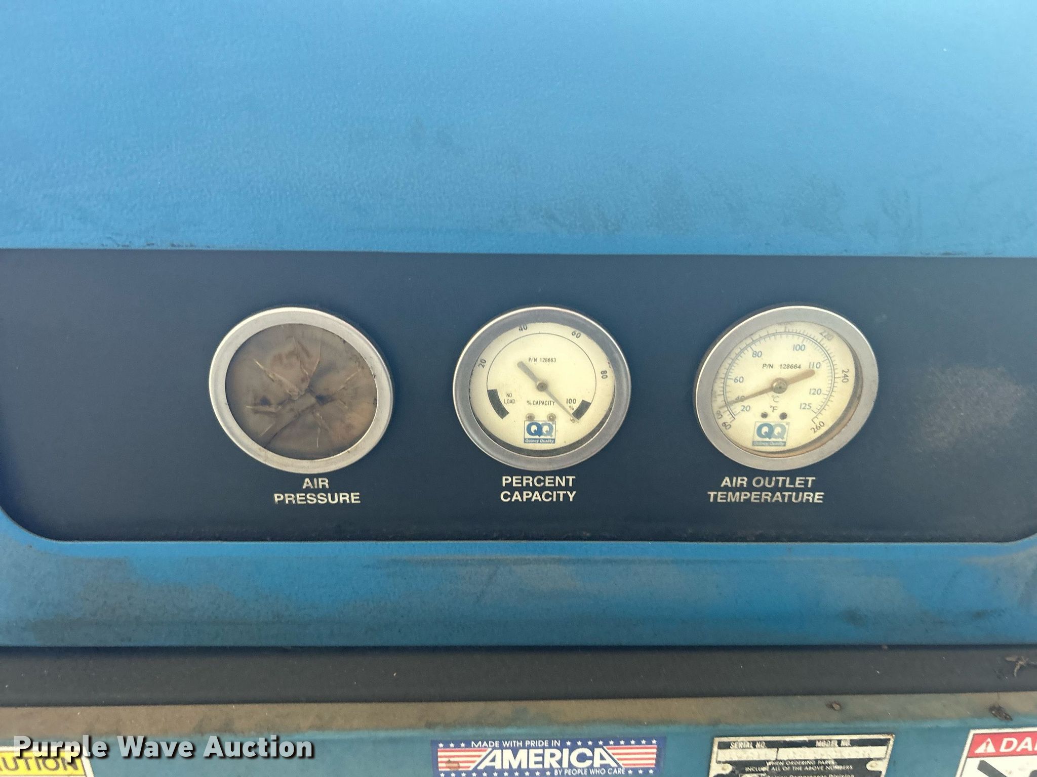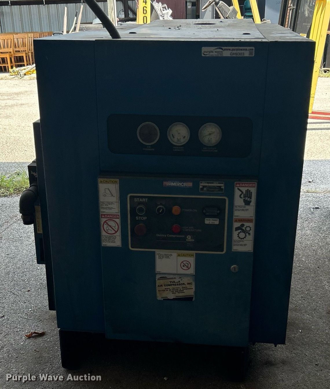 Purple Wave is selling a used Air Compressor in Oklahoma. This item is a Quincy QST25ACA32SR air compressor with the following: Hours: 95,225 on meter, Serial: 93779J, Unit #: 700