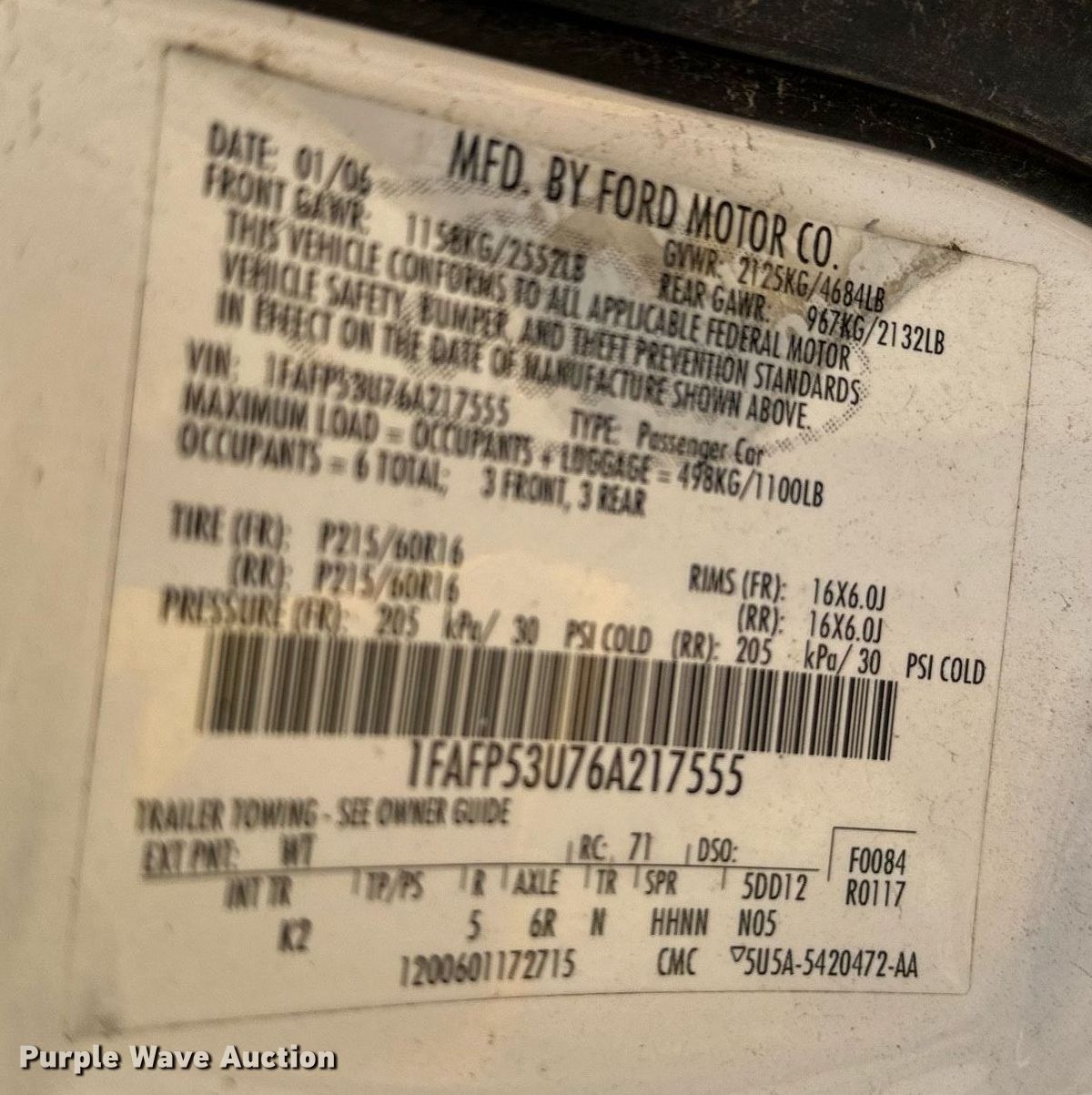 Purple Wave is selling a used Passenger Vehicle in Kansas. This item is a 2006 Ford Taurus SE with the following: Miles: 198,437 on odometer, VIN: 1FAFP53U76A217555
