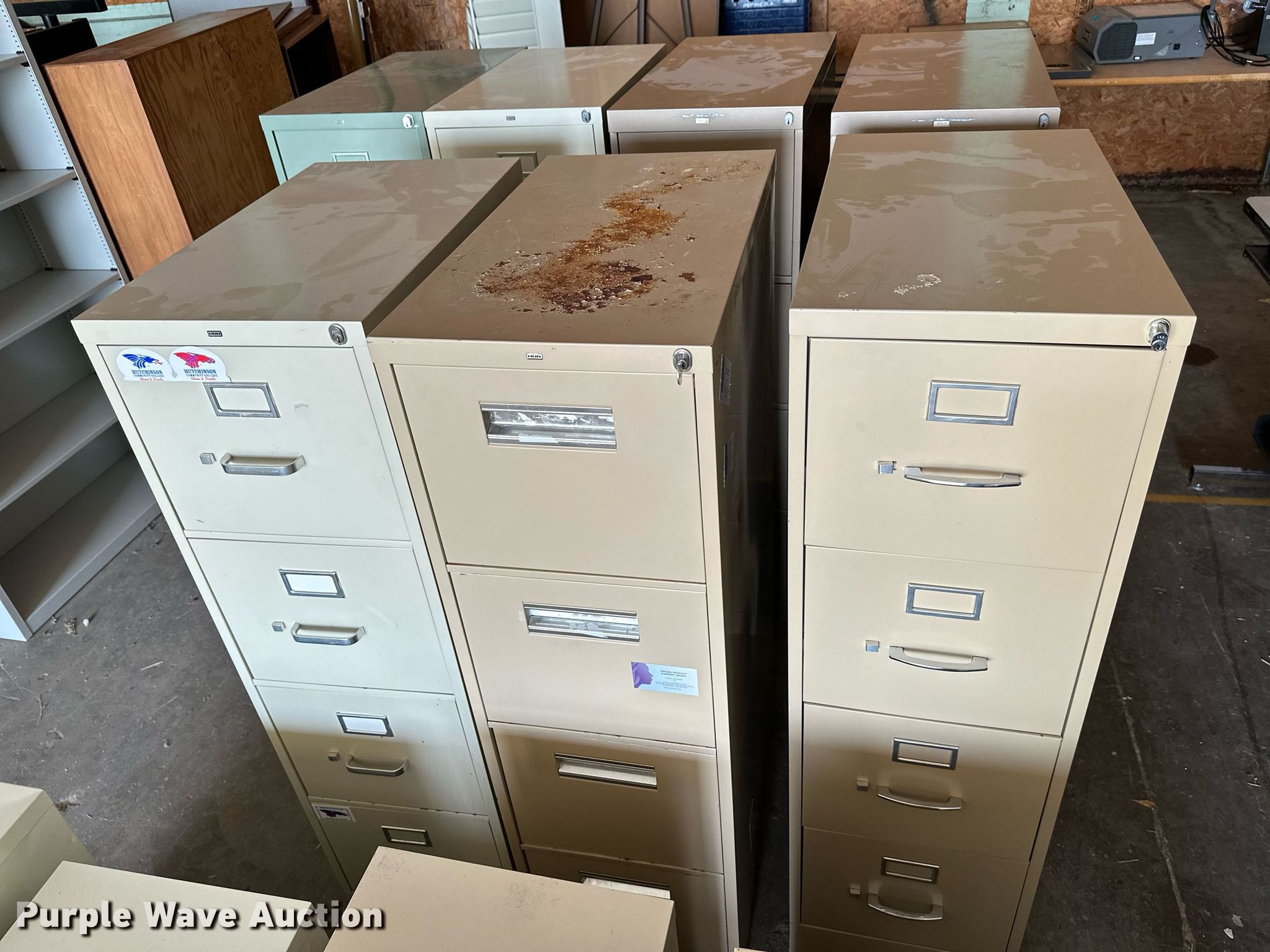 Purple Wave is selling a used Office Supplies and Equip. in Kansas. This item is a (14) file cabinets with the following: (7) 2 drawer, (7) 4 drawer