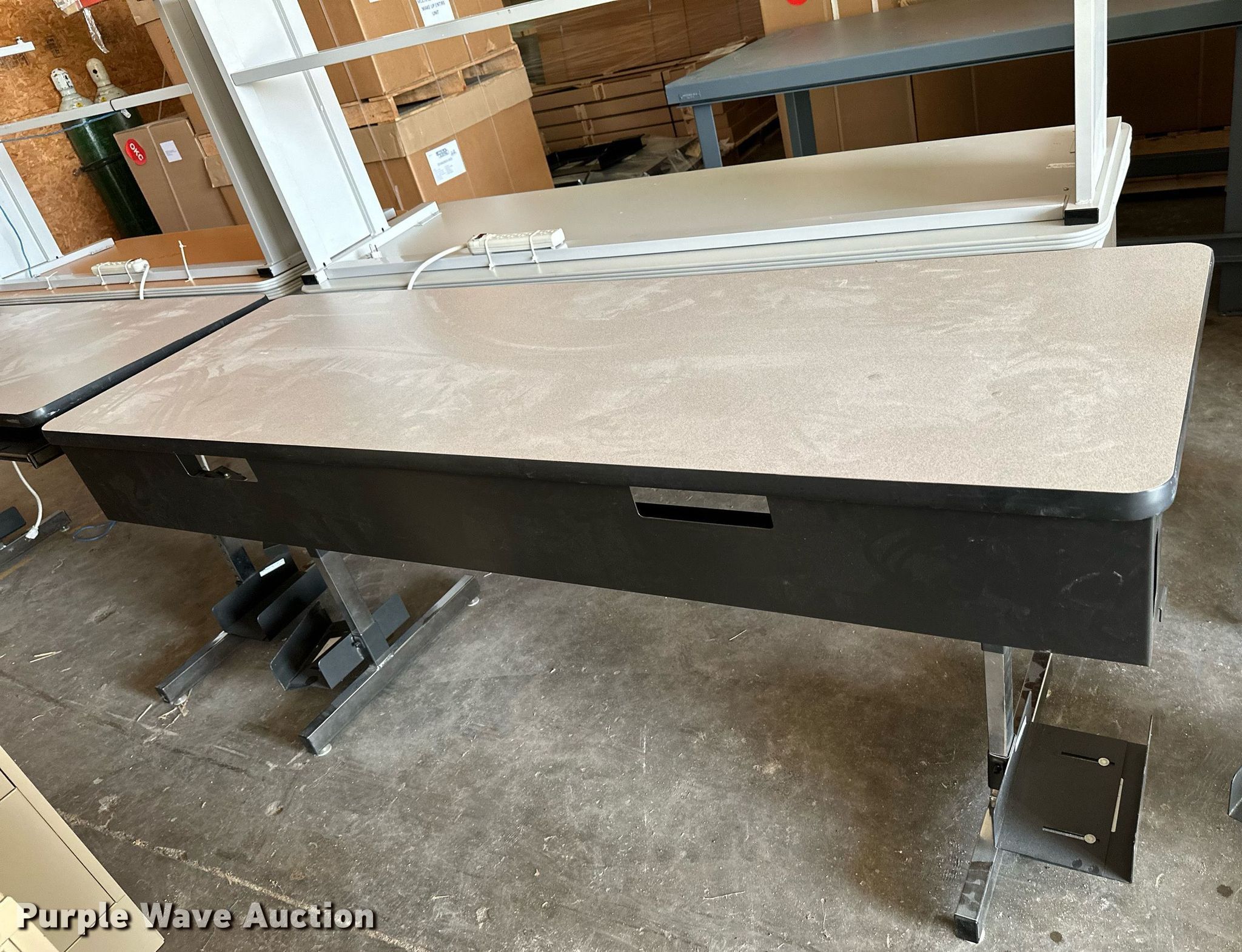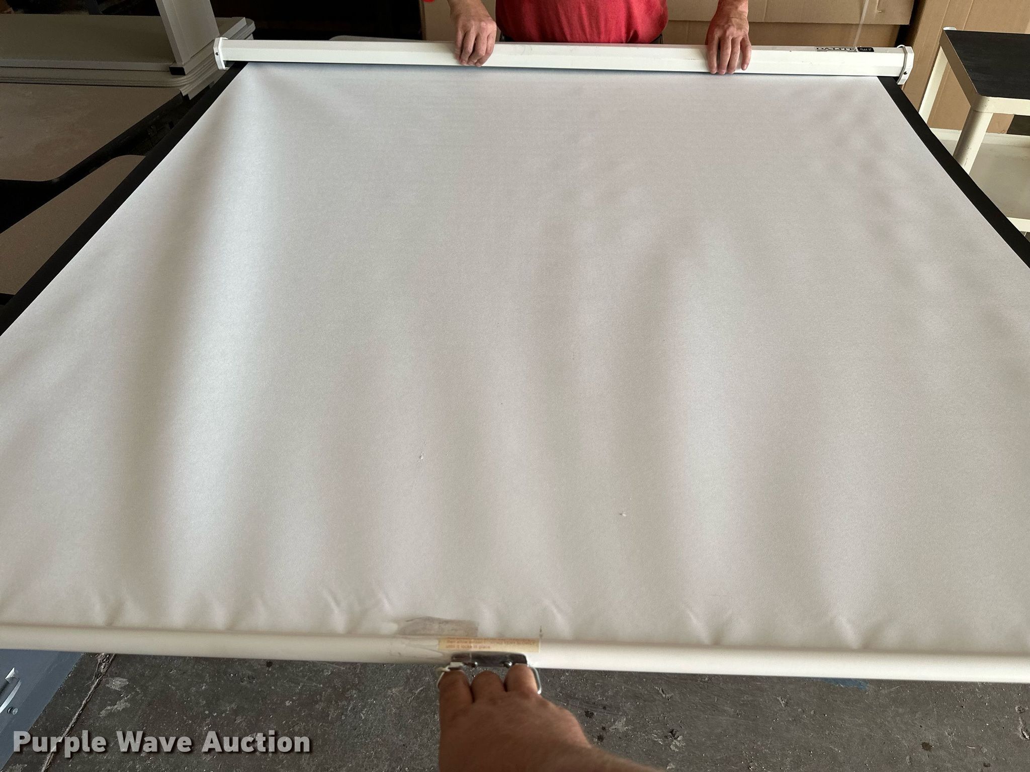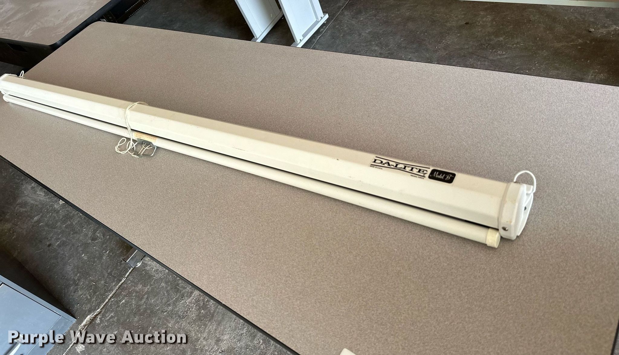 Purple Wave is selling a used Furniture in Kansas. This item is a Furniture with the following: (8) tables, Rolling cart, 5' W Da-Lite B projector screen