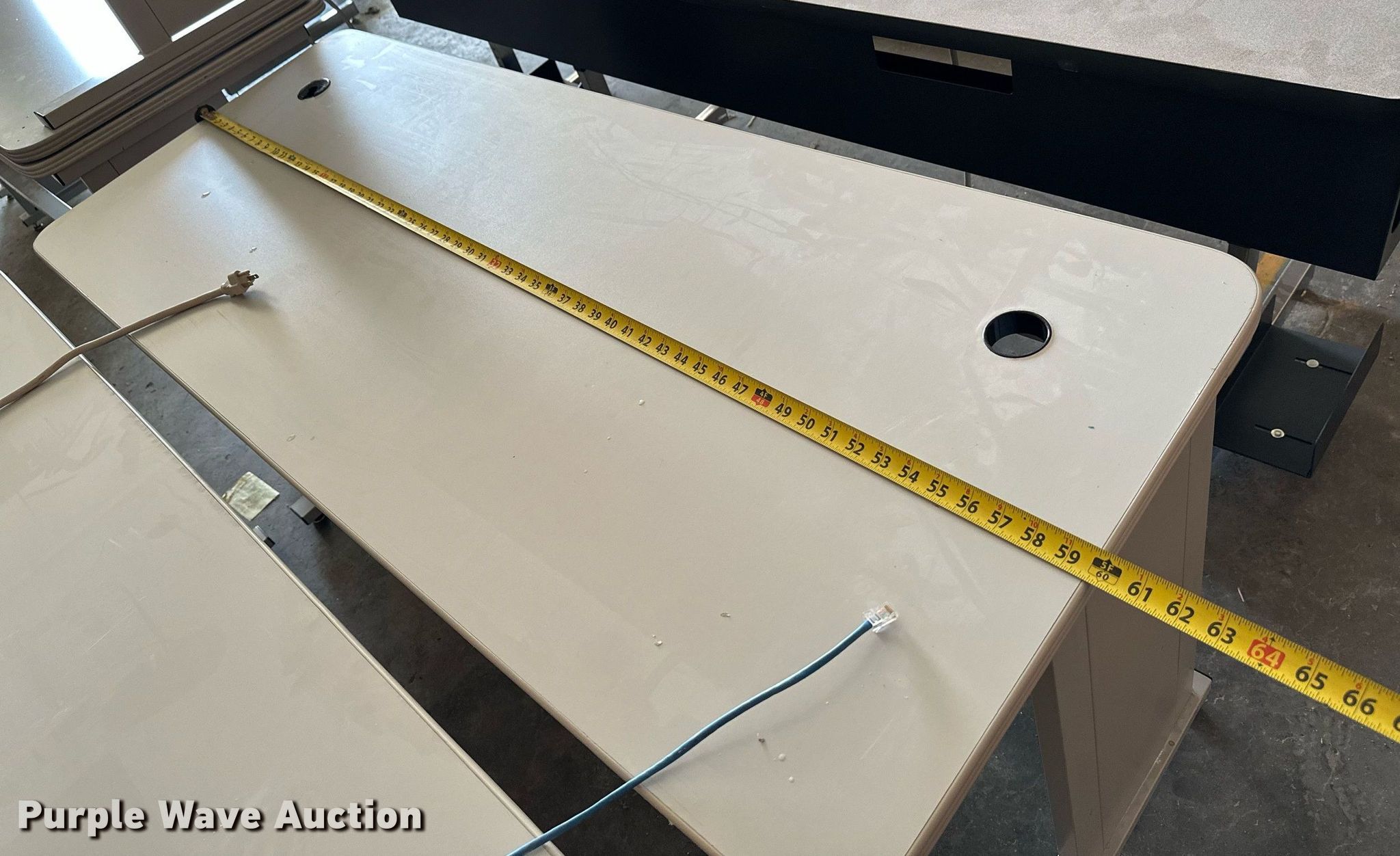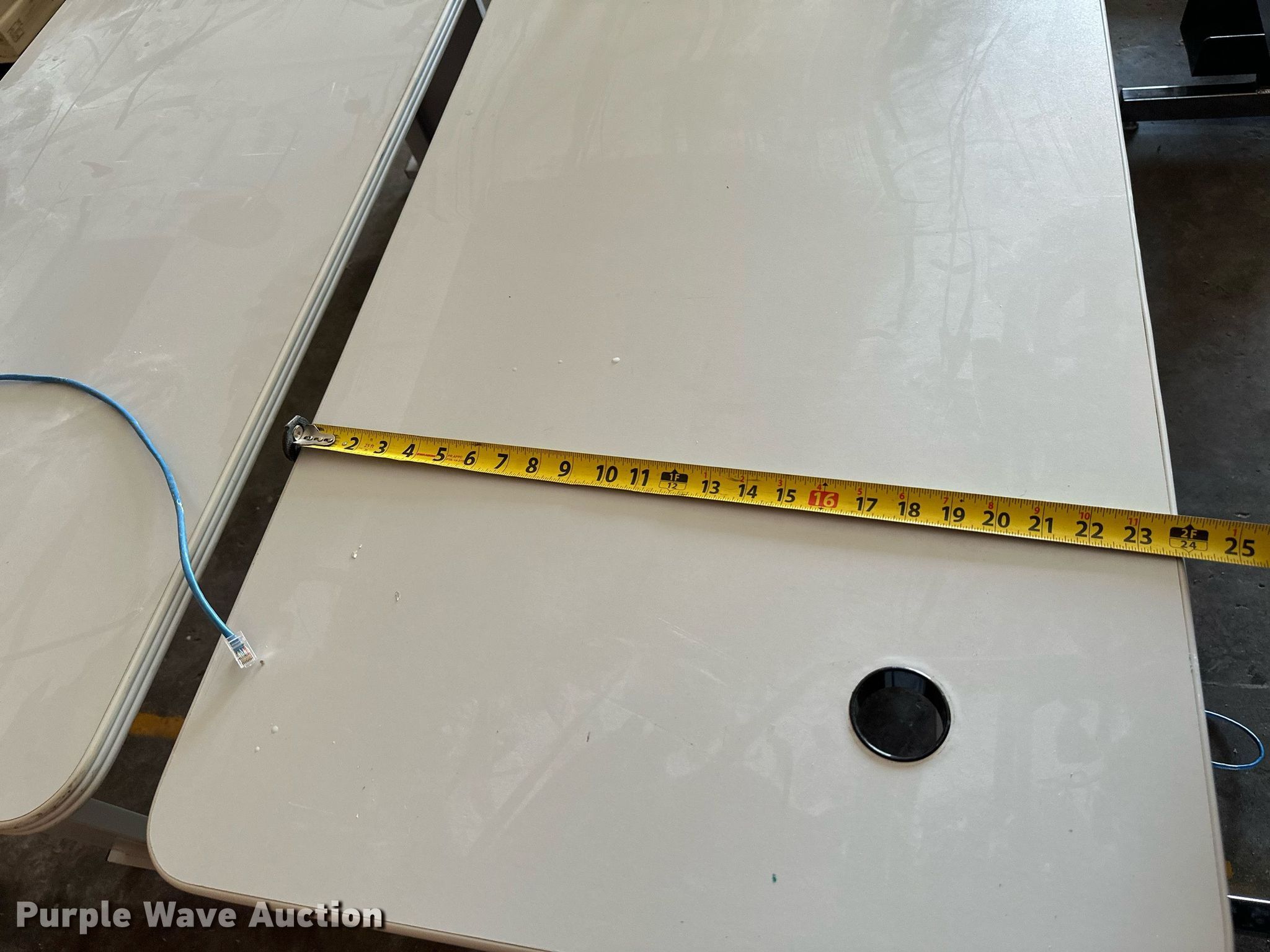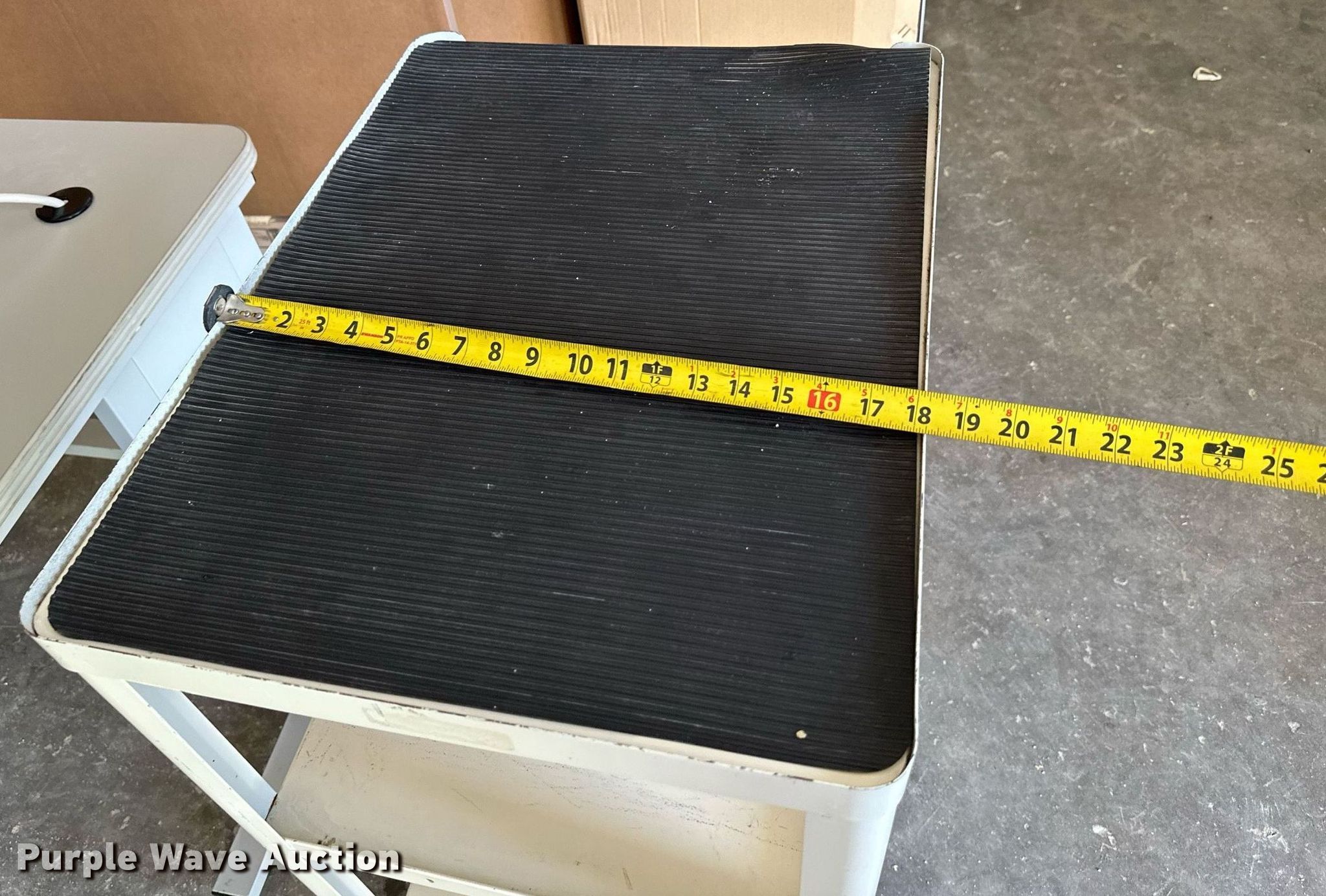Purple Wave is selling a used Furniture in Kansas. This item is a Furniture with the following: (8) tables, Rolling cart, 5' W Da-Lite B projector screen
