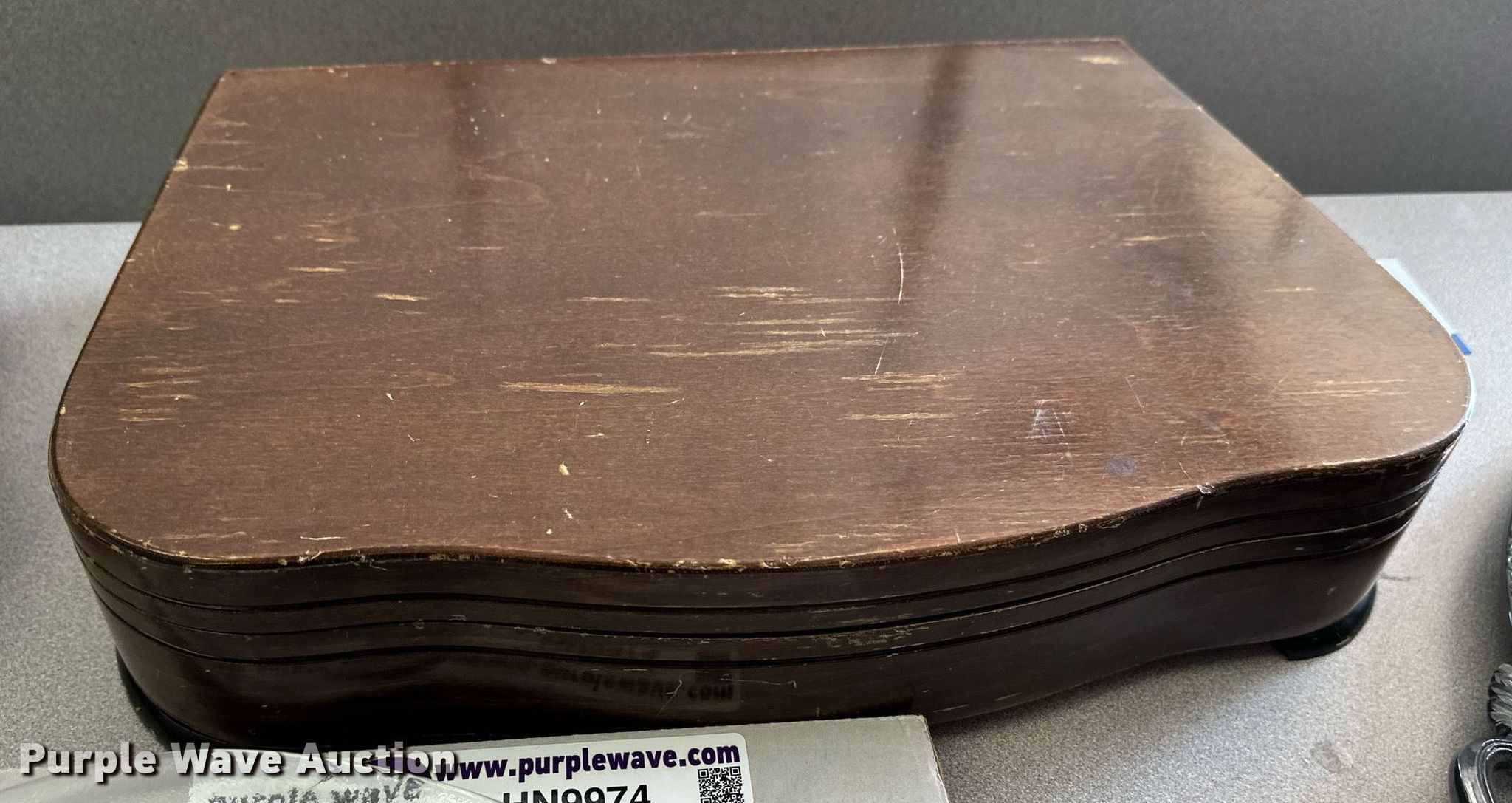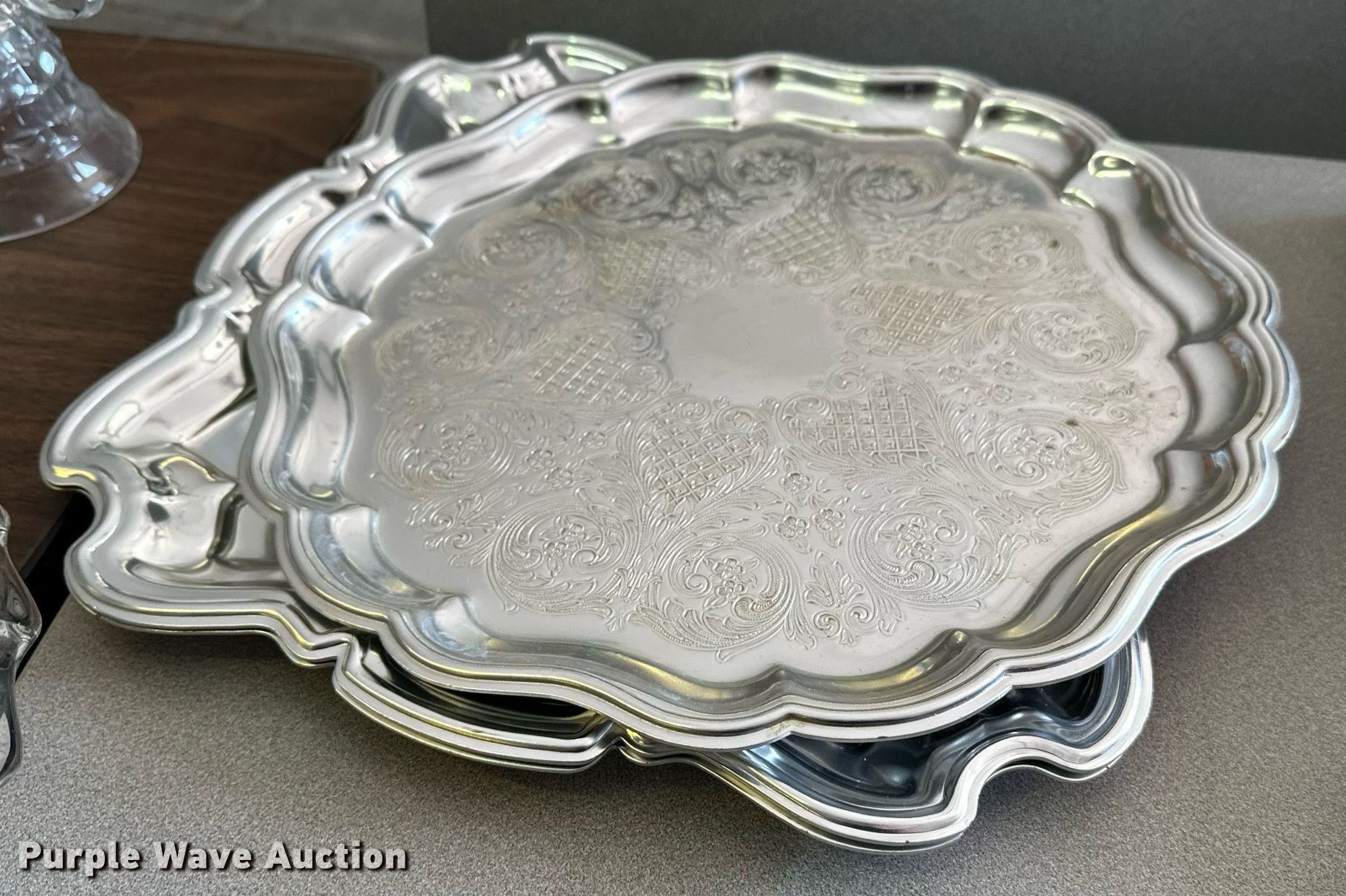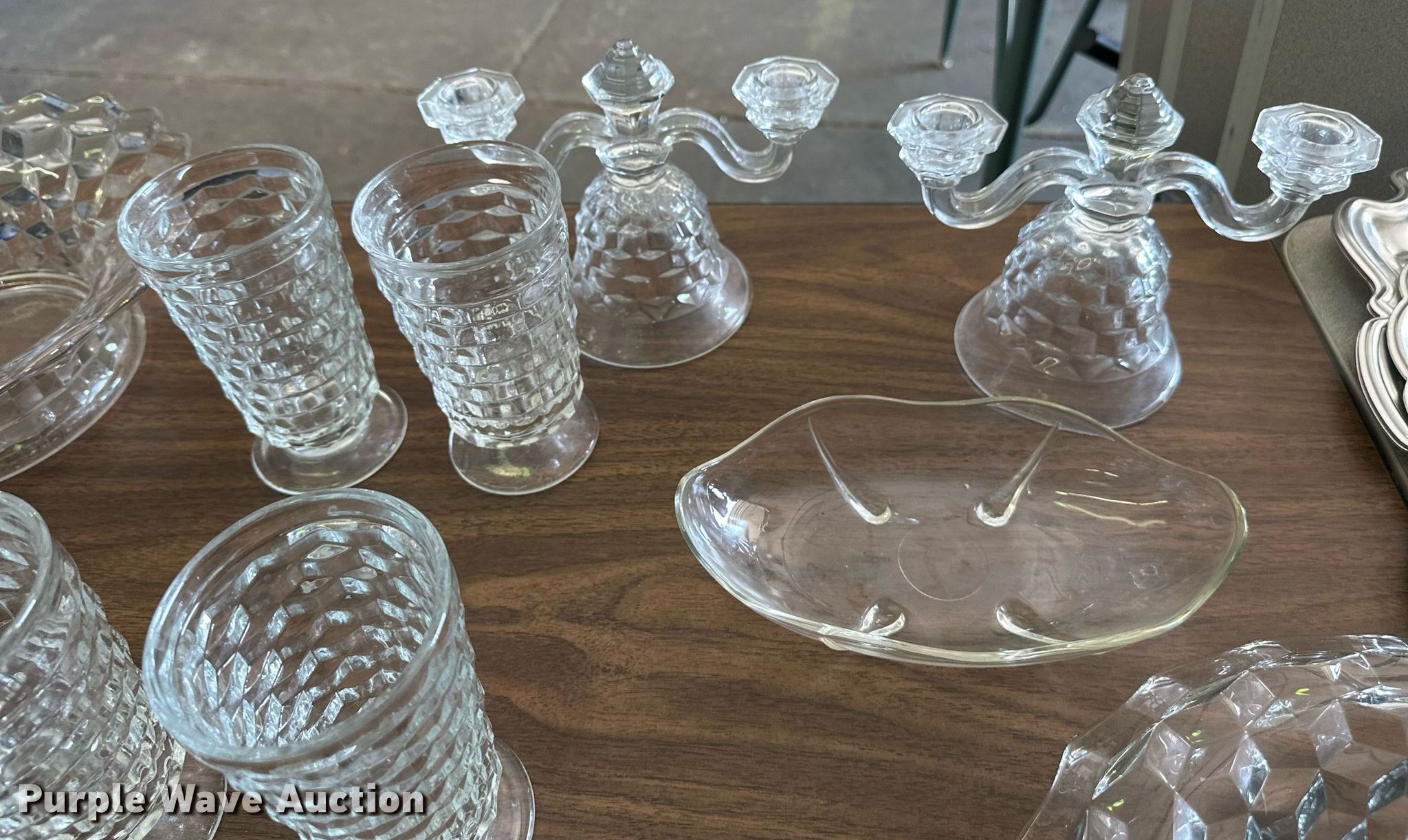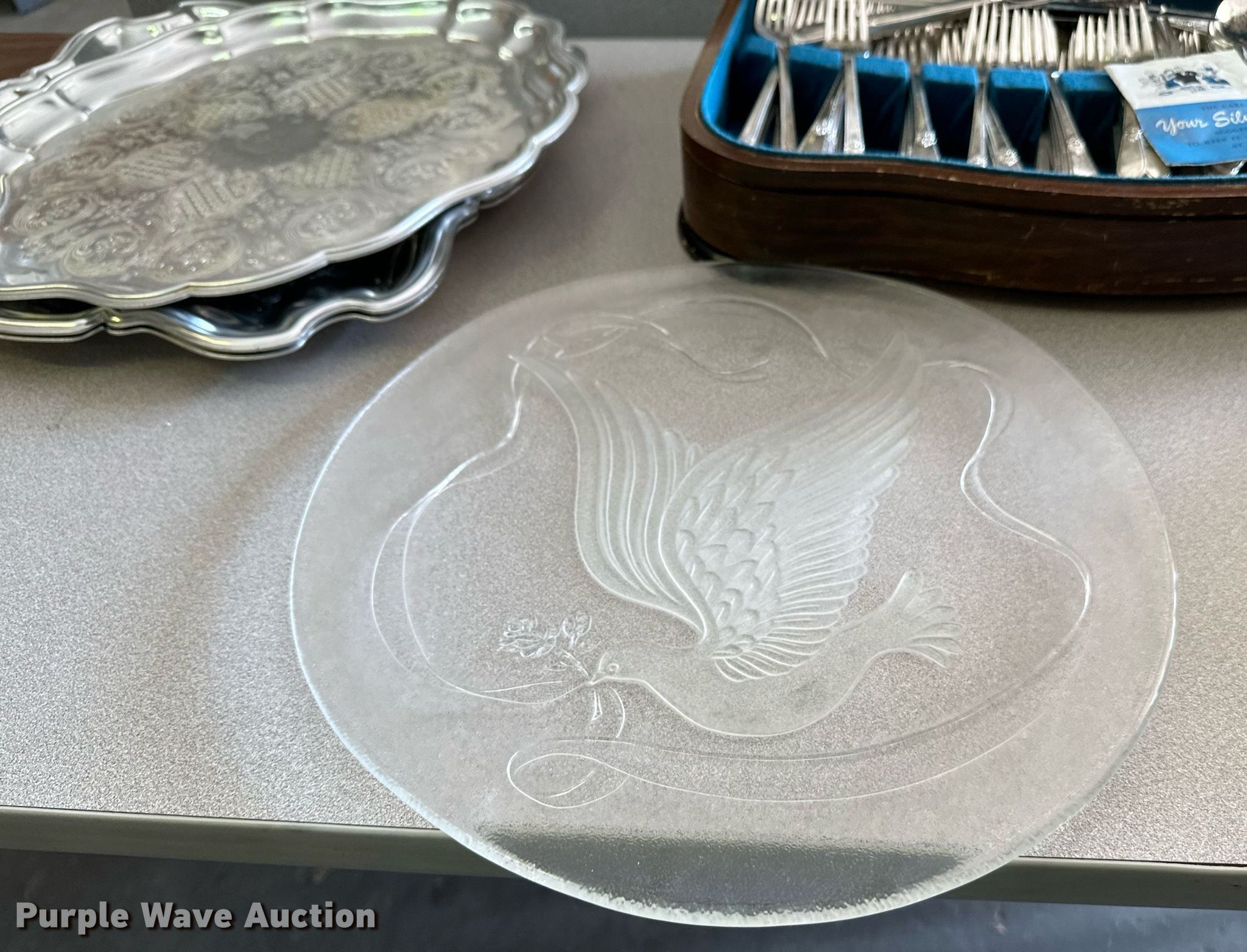 Purple Wave is selling a used All Other Household Items in Kansas. This item is a Kitchen utensils with the following: Gorham Silver tea set, Fostoria glassware, Rogers silverplate flatware service, Table not included