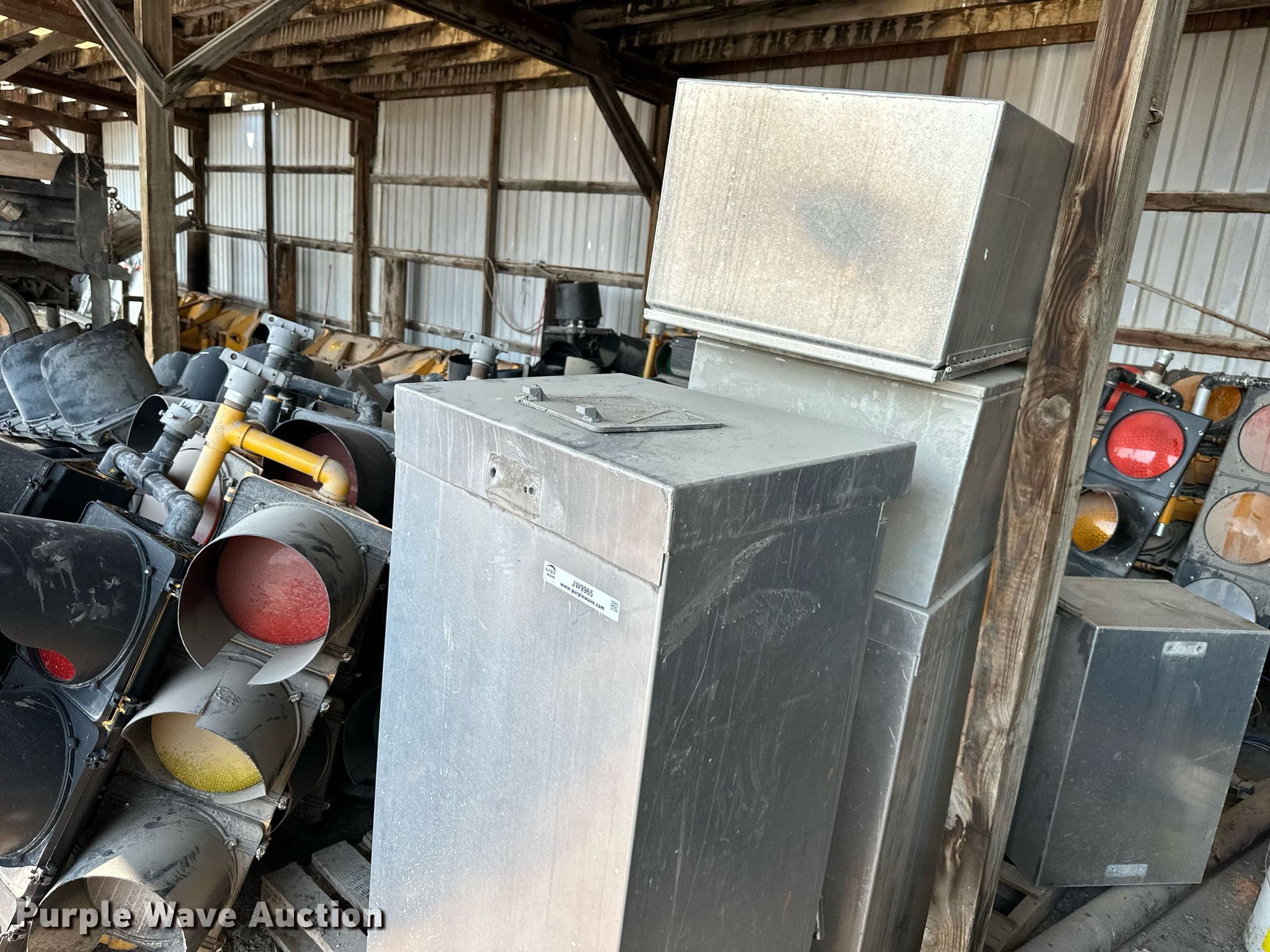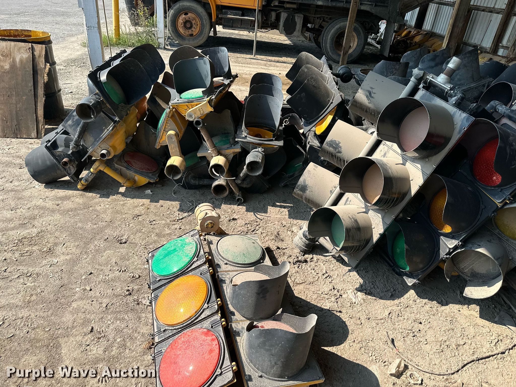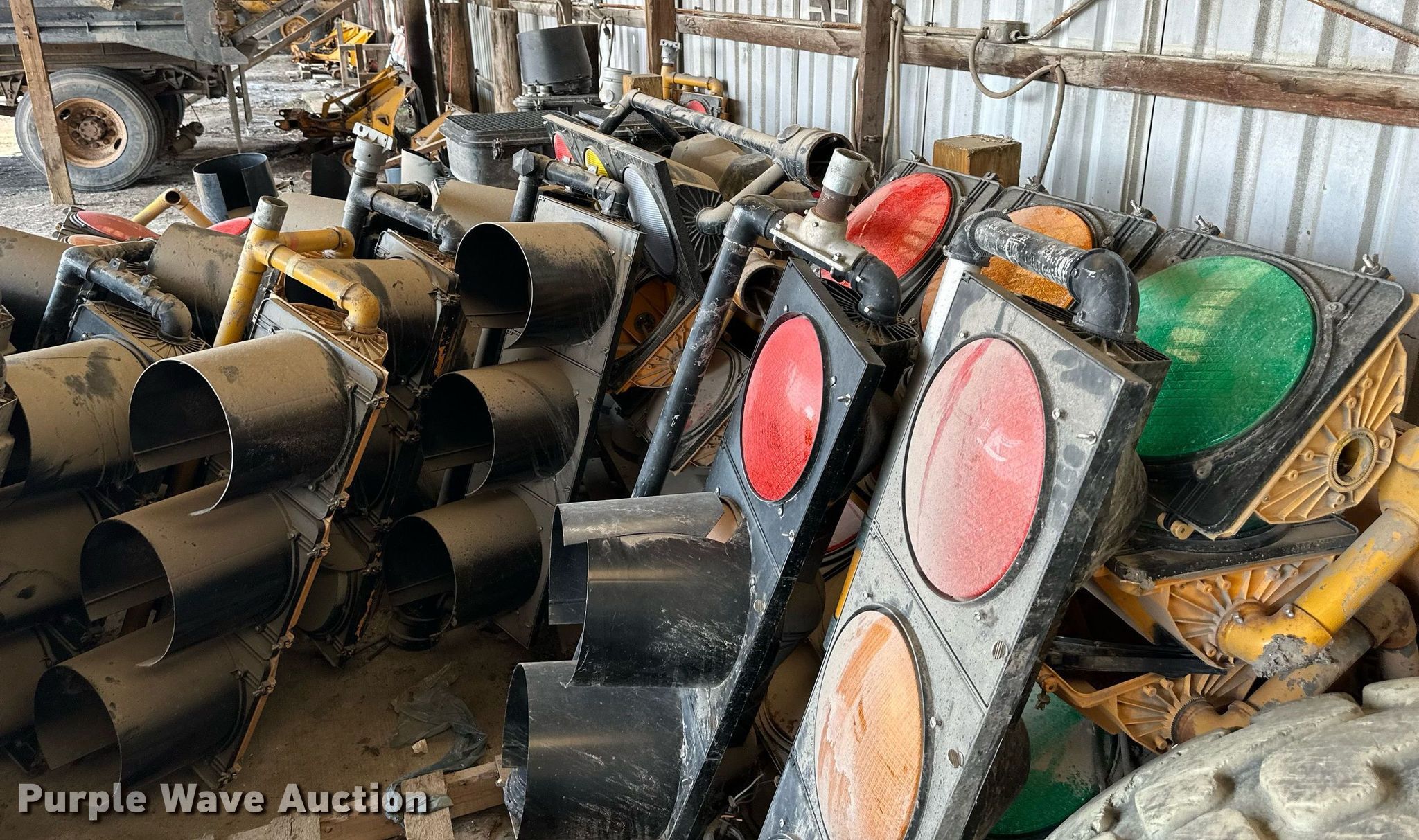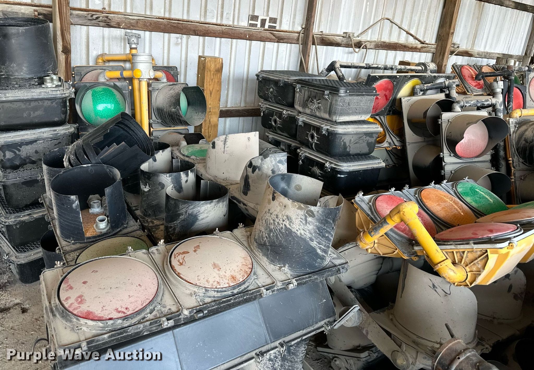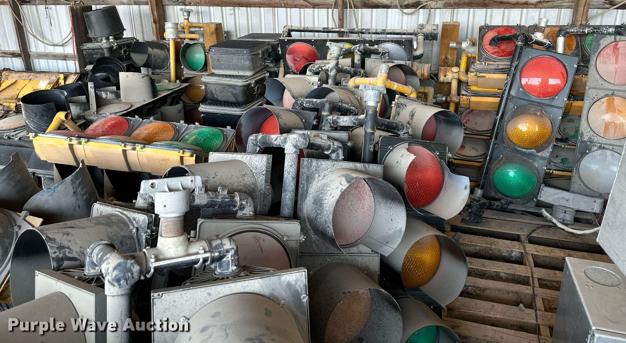 Purple Wave is selling a used Road Safety Equip. in Missouri. This item is a Road safety equipment with the following: approx. (100) three section traffic signals, approx. (3) two section traffic signals, approx. (4) pedestrian signals, approx. (8) pedestrian signal poles