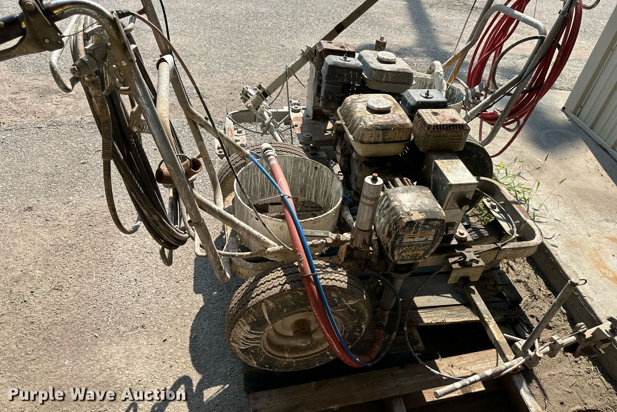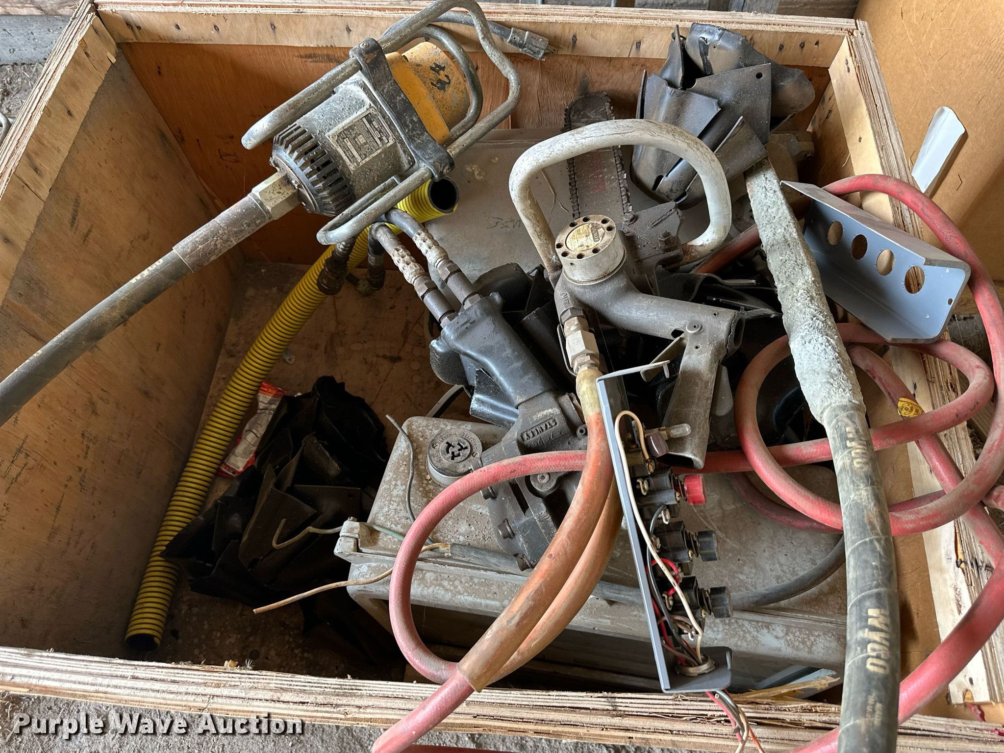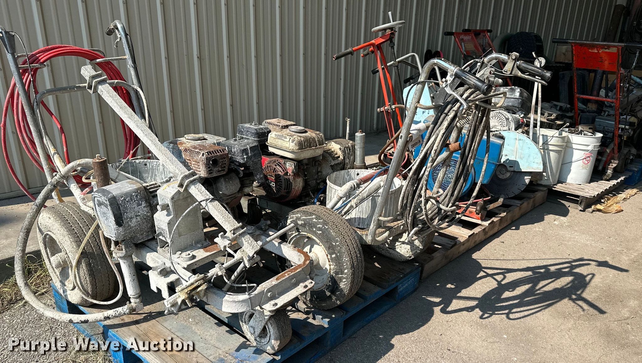 Purple Wave is selling a used Tools in Missouri. This item is a Tools with the following: (2) Paint sprayers, Power washer, (2) Floor saws, Tile saw, (3) Routers, Fuel type: gas, Screed, Fuel type: Gas, Jack hammer, (3) Toolboxes