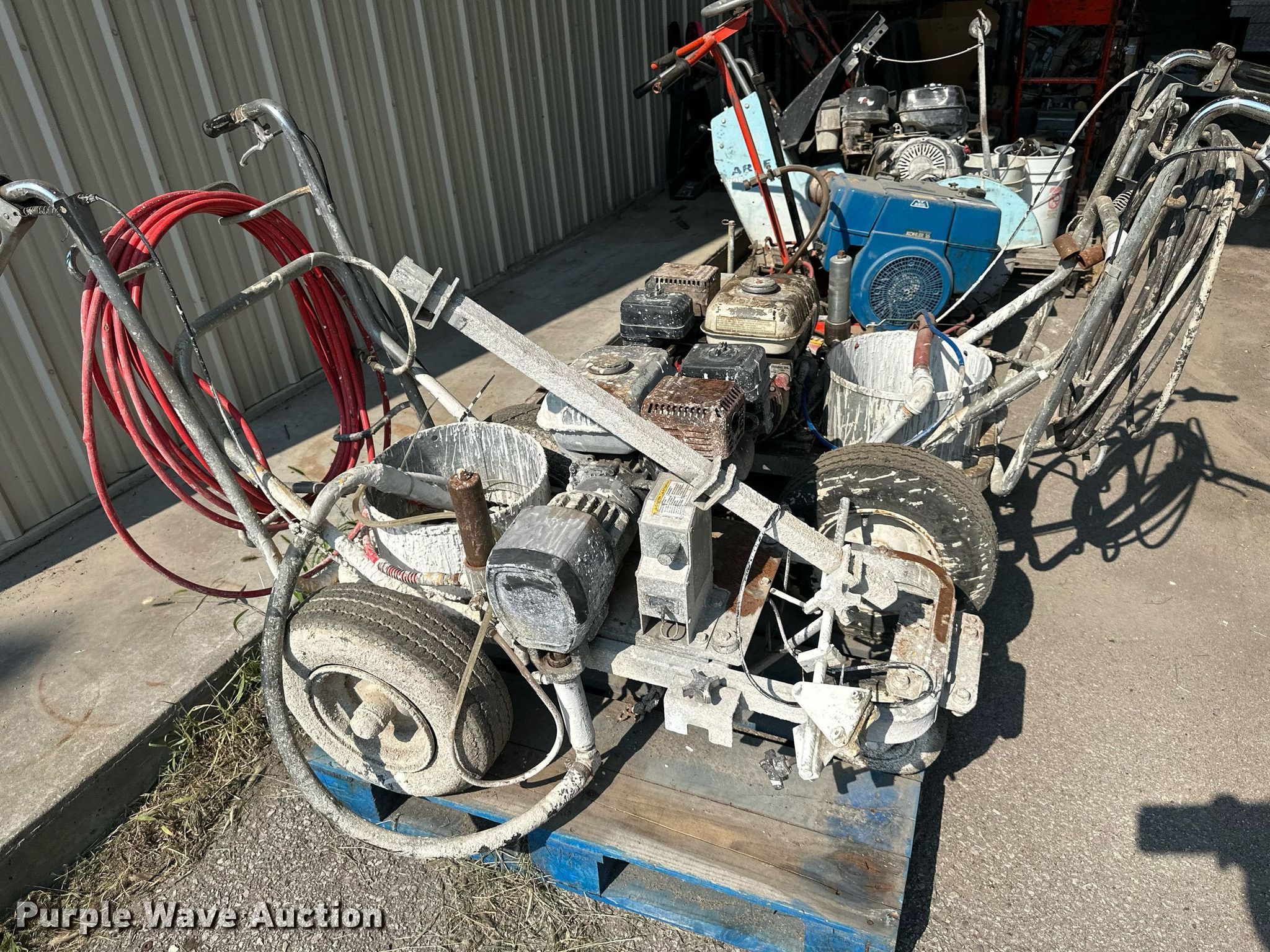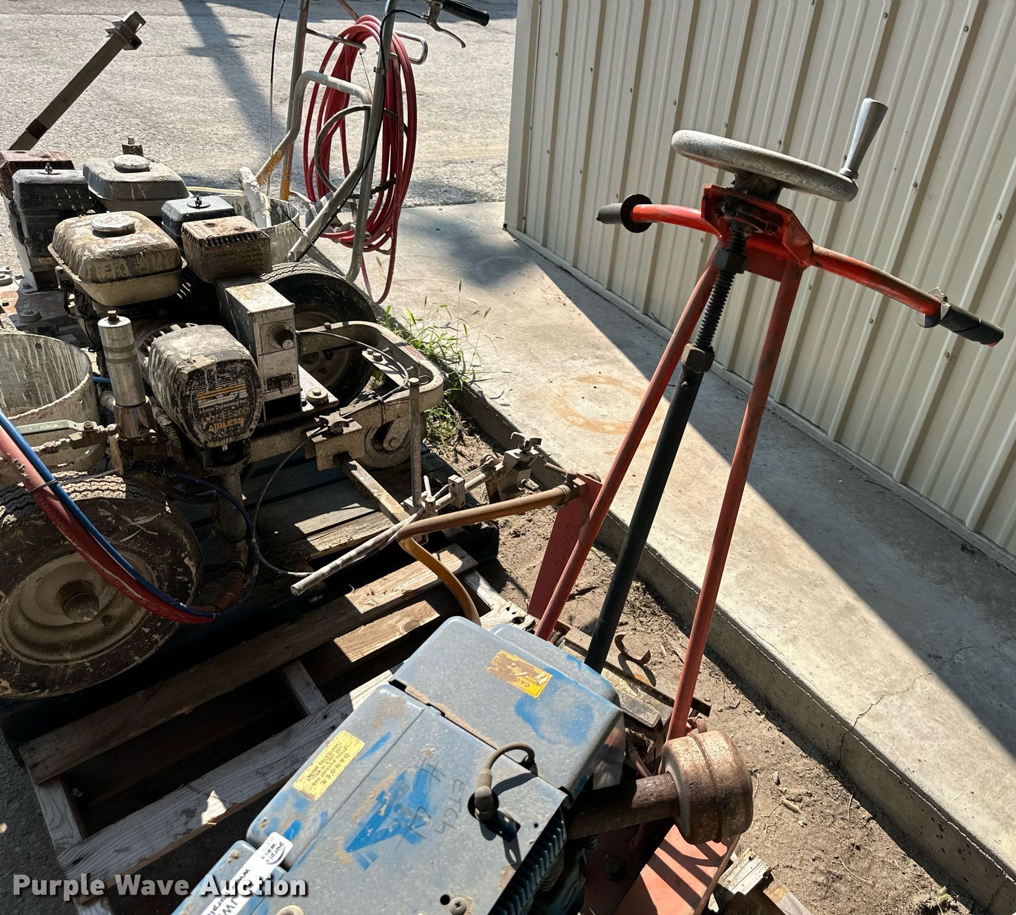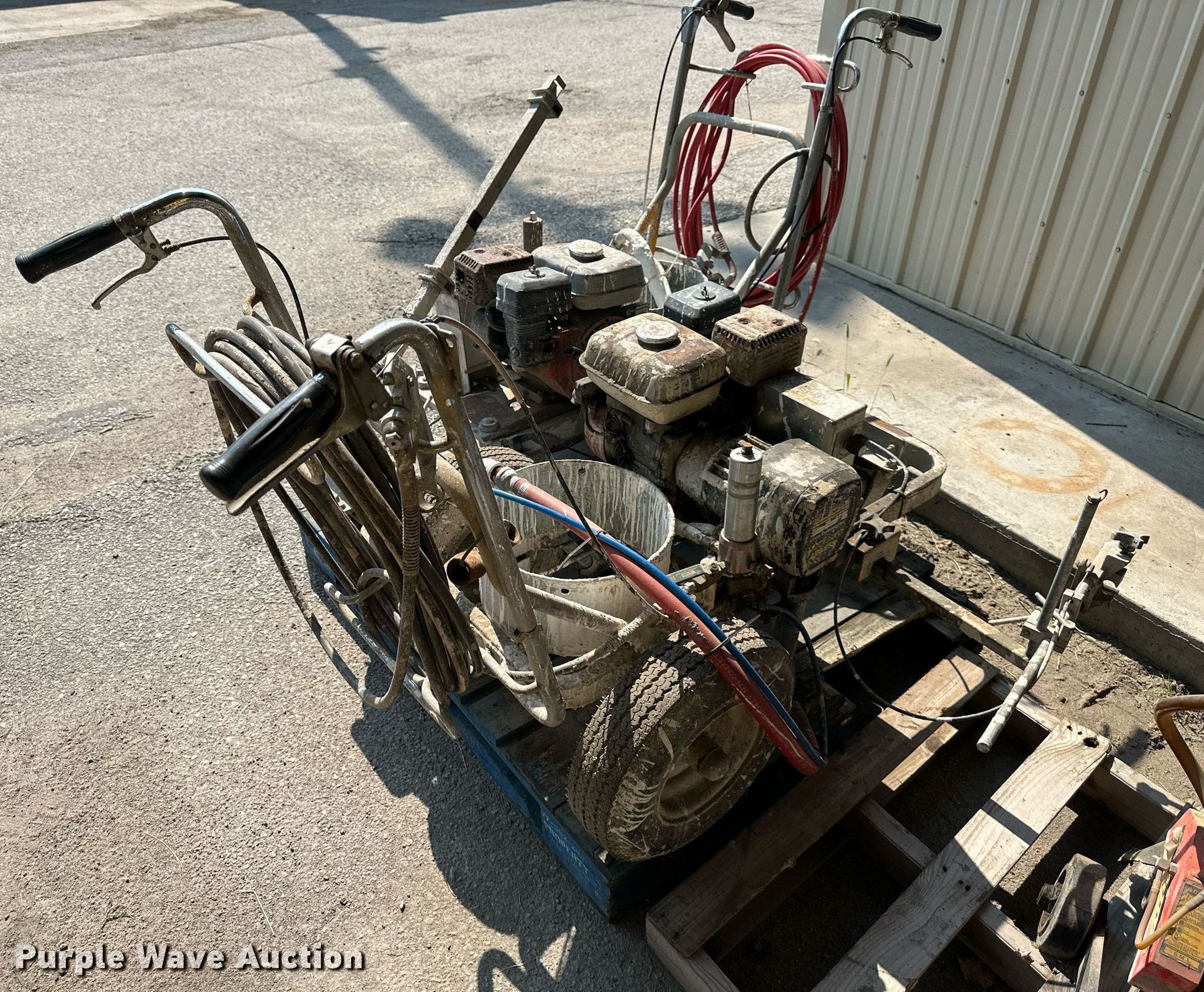 Purple Wave is selling a used Tools in Missouri. This item is a Tools with the following: (2) Paint sprayers, Power washer, (2) Floor saws, Tile saw, (3) Routers, Fuel type: gas, Screed, Fuel type: Gas, Jack hammer, (3) Toolboxes
