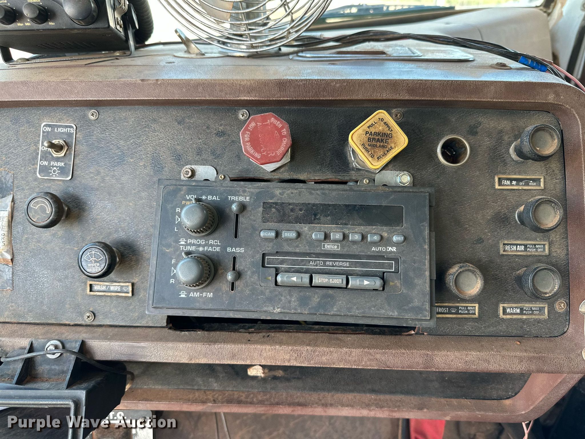 1989 White GMC WCS dump truck. Miles: 34,775 on odometer, VIN: 4V2ACBME0KN614577. Engine Cummins, Displacement: 611 C.I.D., Cylinders: 6, Fuel type: Diesel. Transmission Eaton Fuller, Manual. Chassis Axles: Tandem, Suspension: Spring, Brakes: Air, PTO. Features Dump bed 14' L x 96" W, Side height: 40", Bed type: Steel, Roll tarp, Ram: Single , End gate: Manual. Tires Size: 12R22.5. Notes Windshield chipped or cracked. Texas title. Mileage has not been verified. Exempt will be written in the odometer disclosure on the title. Title distribution may be delayed up to 14 days from verification of funds. Collingsworth County, TX. 4199 US-83. Wellington, TX 79095