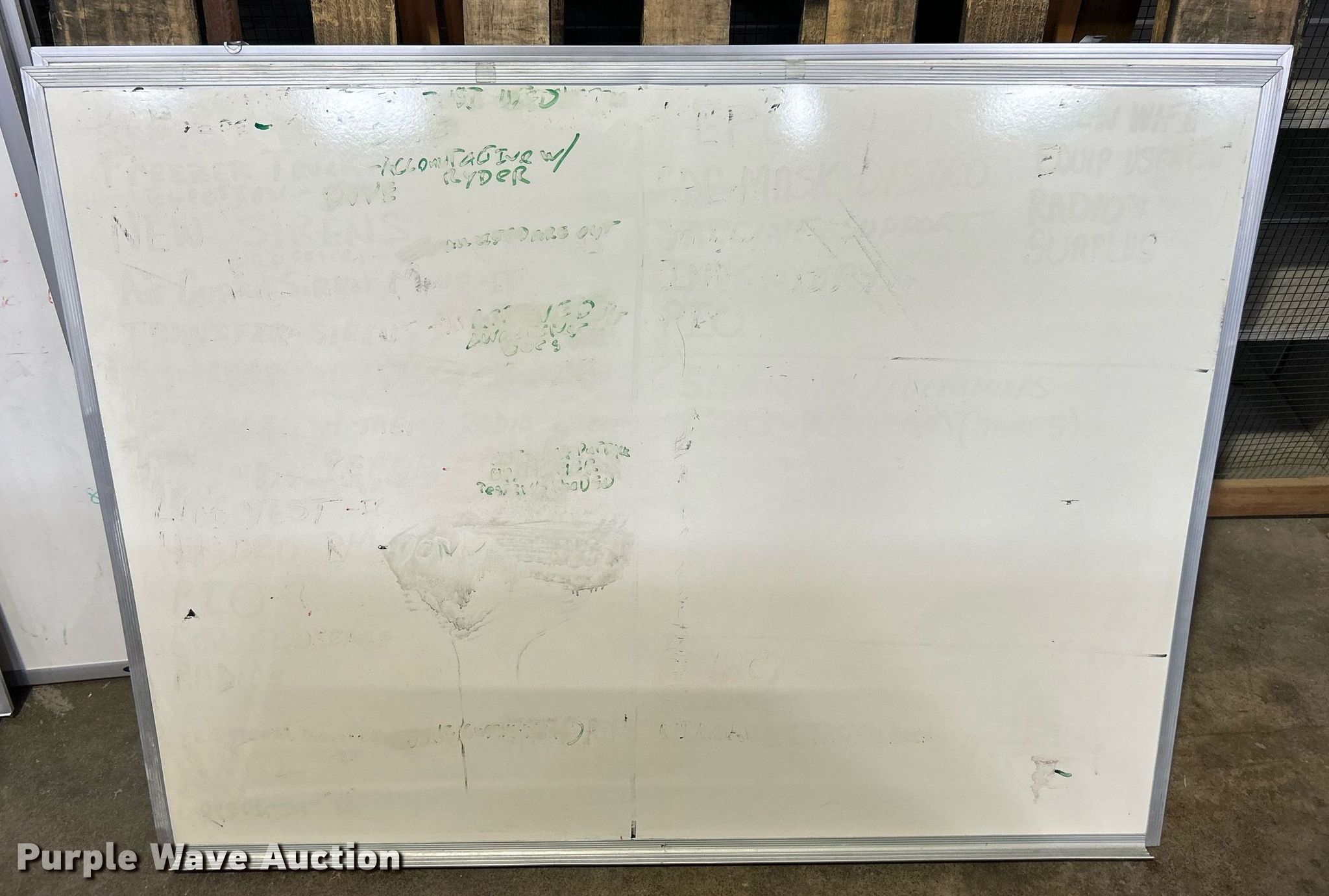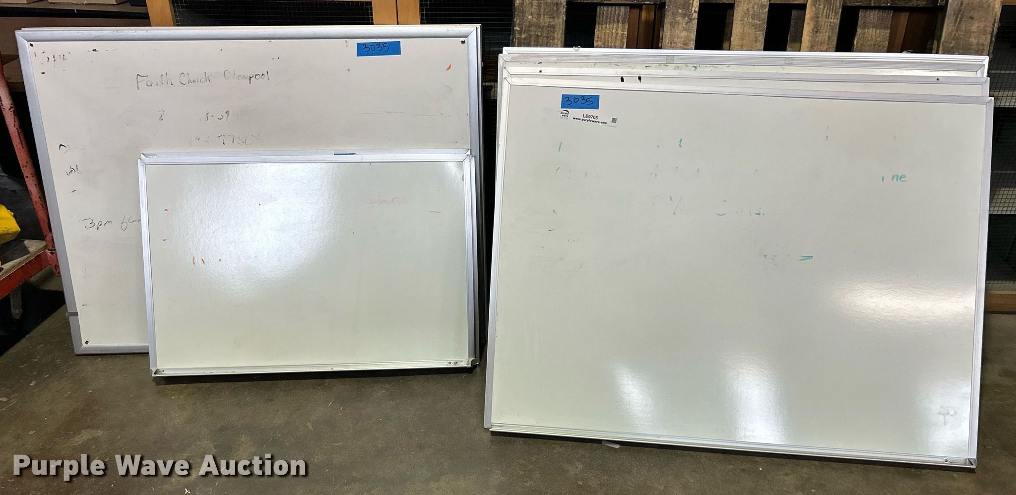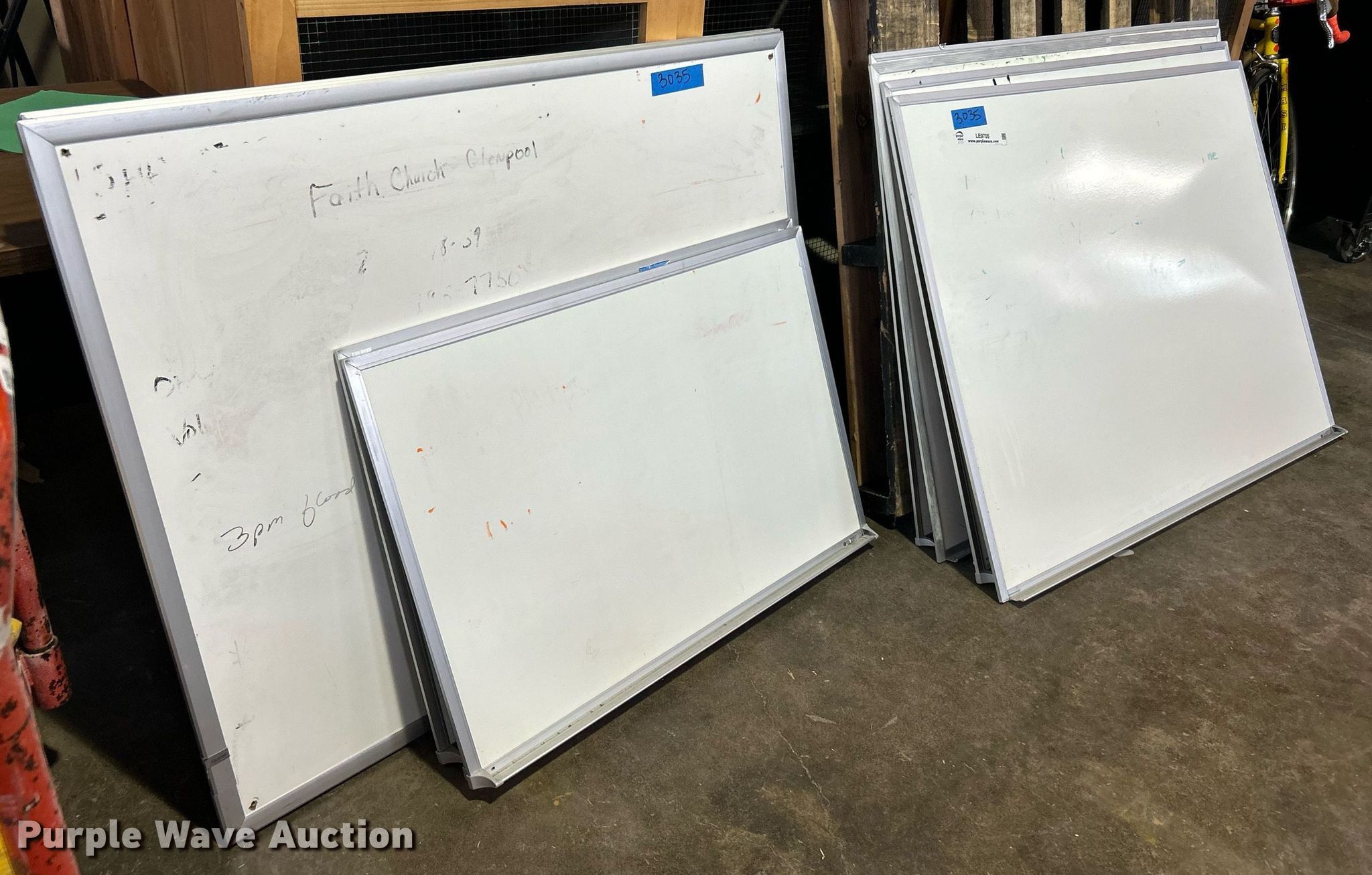Purple Wave is selling a used Office Supplies and Equip. in Oklahoma. This item is a (10) white boards with the following: (7) 48" x 36", (3) 36" x 24", Unit #: 3035