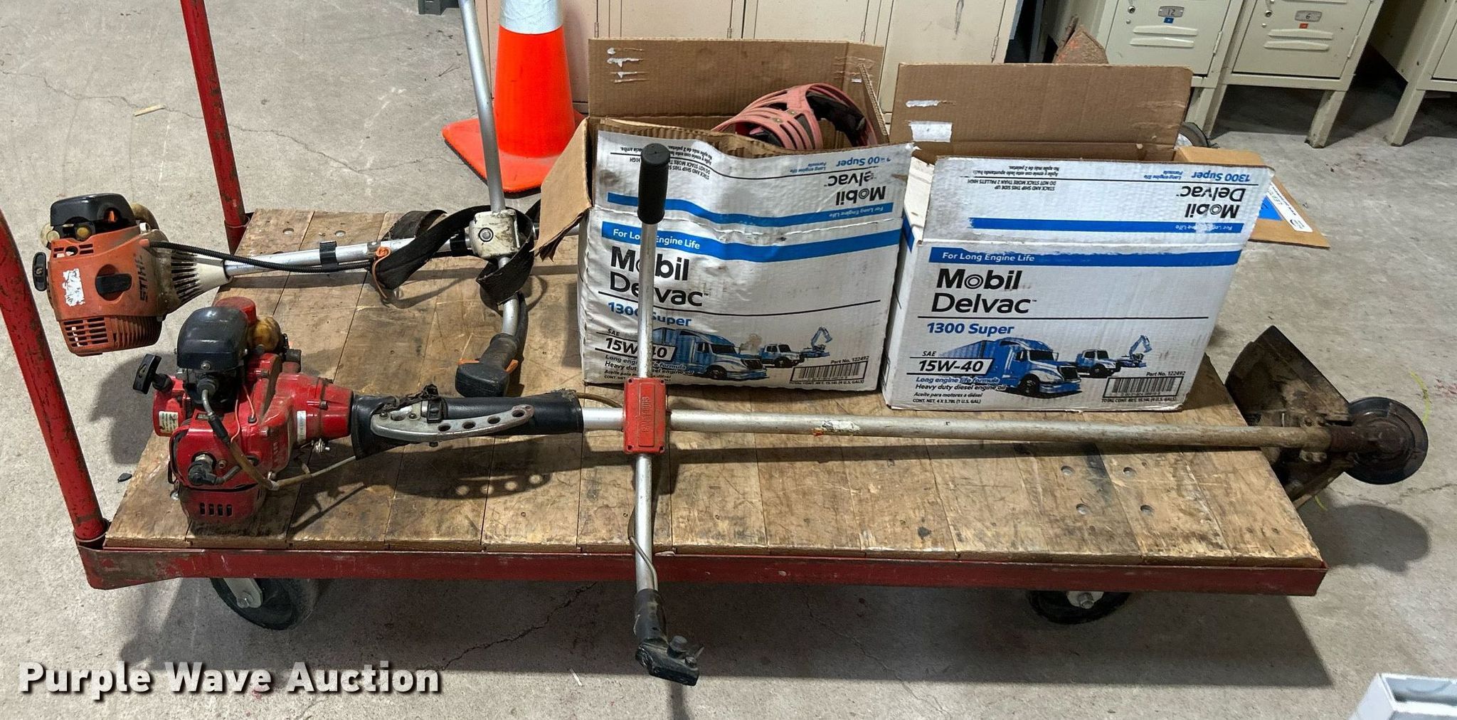Purple Wave is selling a used Lawn and Garden in Oklahoma. This item is a (2) string trimmers with the following: Shindaiwa SM45, Non-operational unit, Stihl 5S110, Possible issues, (3) Shindaiwa trimmer harnesses, Unit #: 3036