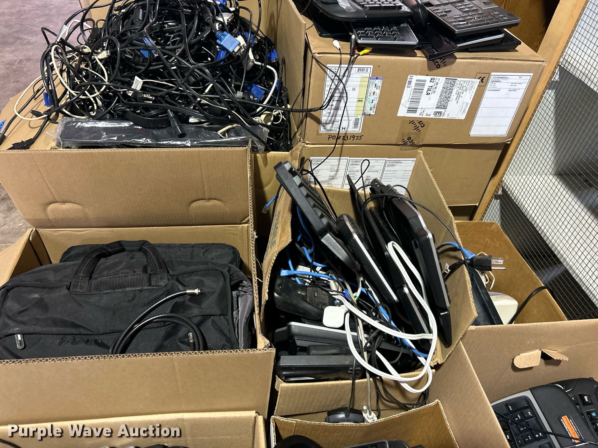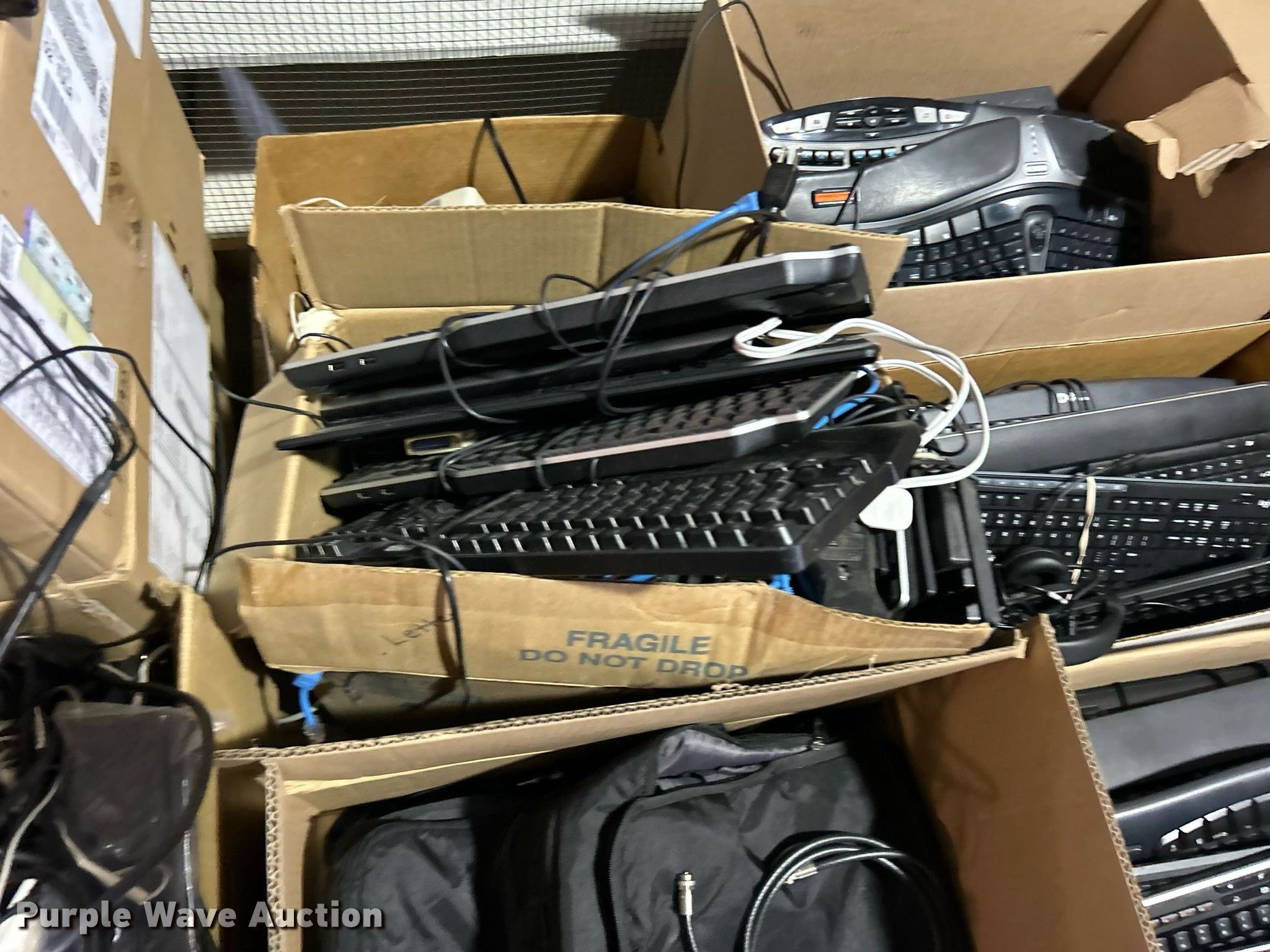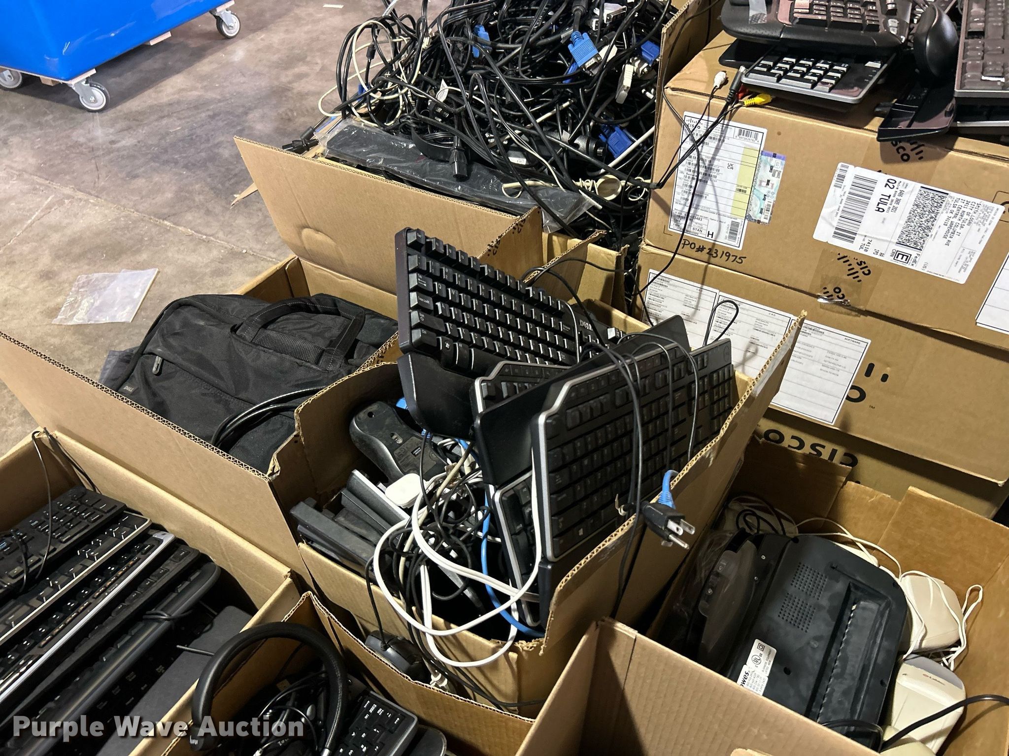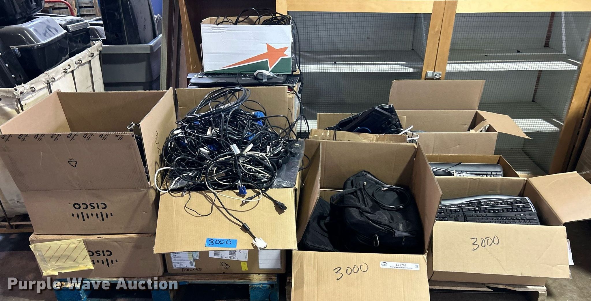 Purple Wave is selling a used Electronics in Oklahoma. This item is a Electronics with the following: Keyboards, Docking stations, Power cords, Monitor cables, Speakers, Mice, Laptop bags, Unit #: 3000
