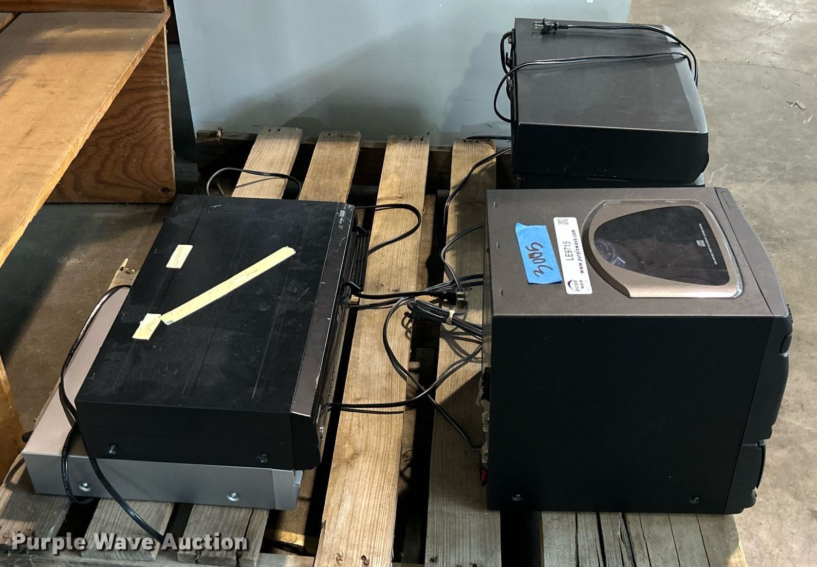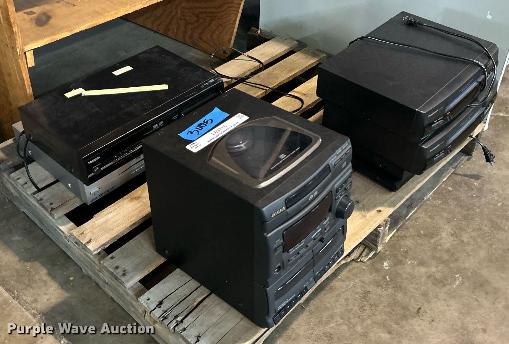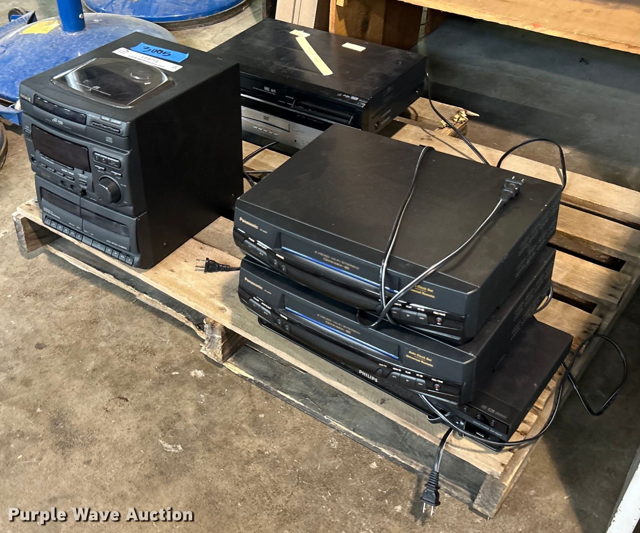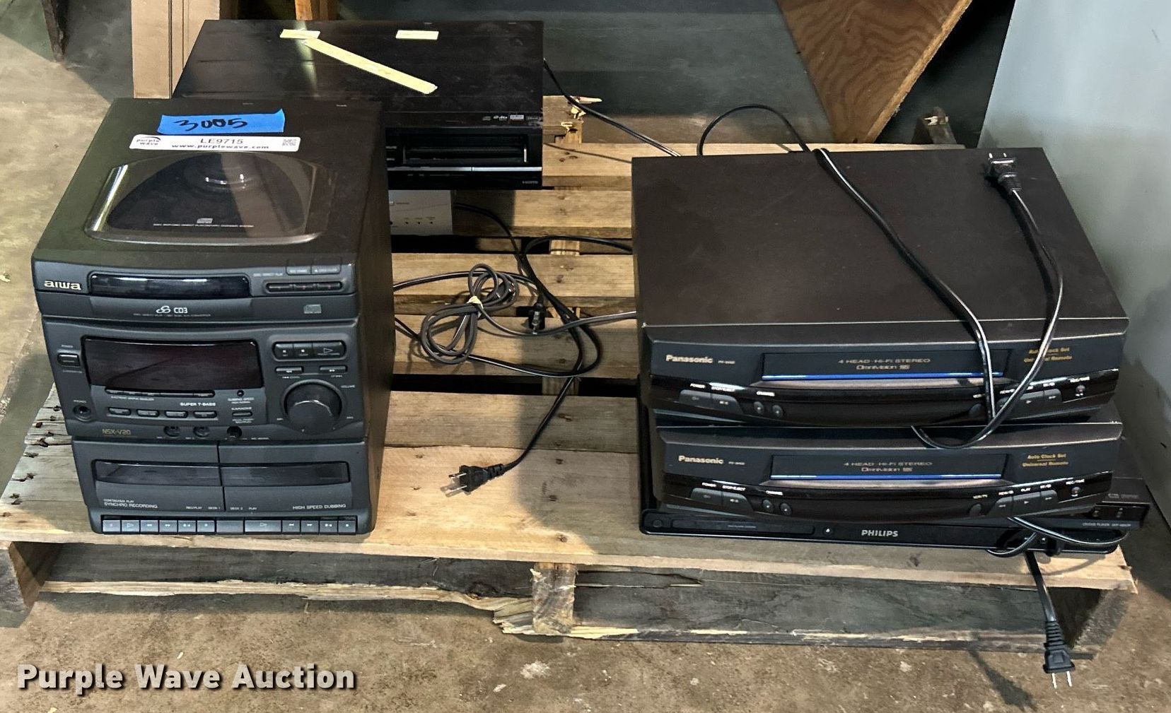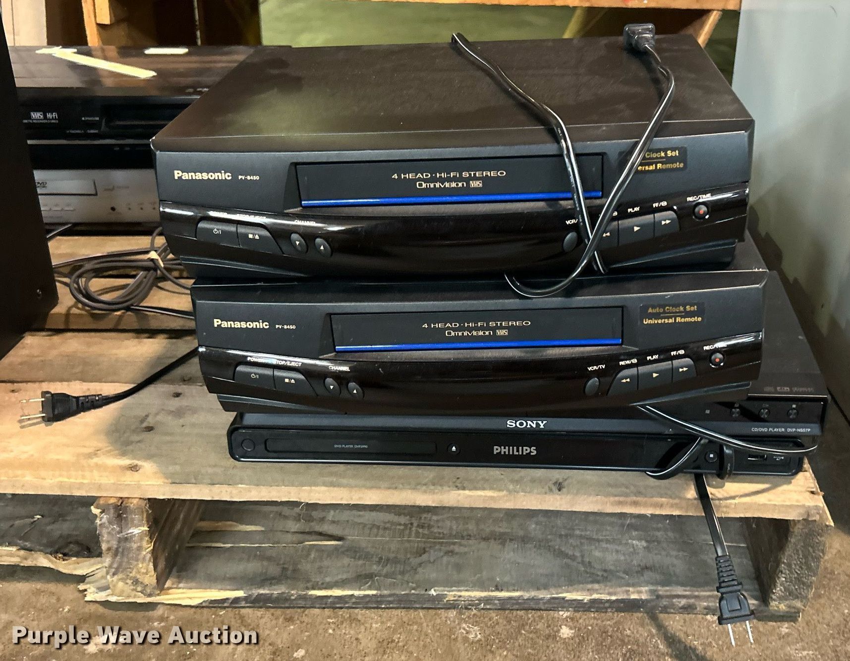 Purple Wave is selling a used Electronics in Oklahoma. This item is a Electronics with the following: Phillips DVP5990 DVD player, Panasonic PV-8450 VHS player, Sony Progressive scan DVP-NS57P, AIAW stereo system, Apex AD-1100W DVD player, Toshiba VHS/DVD player, No remotes, Unit #: 3005