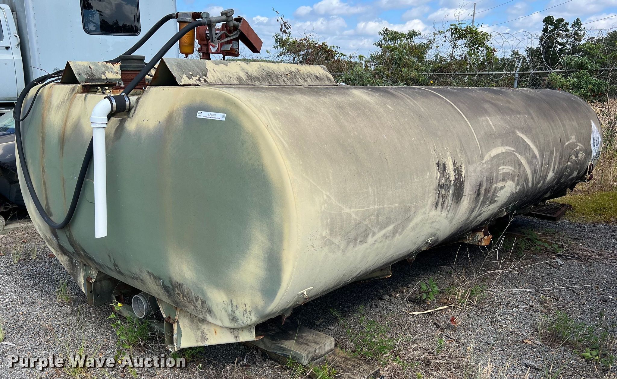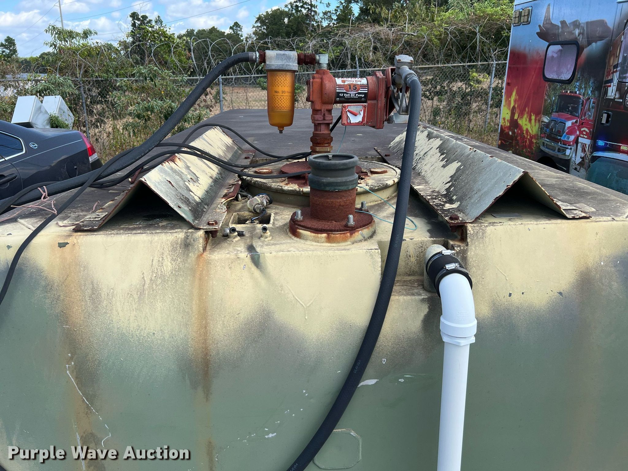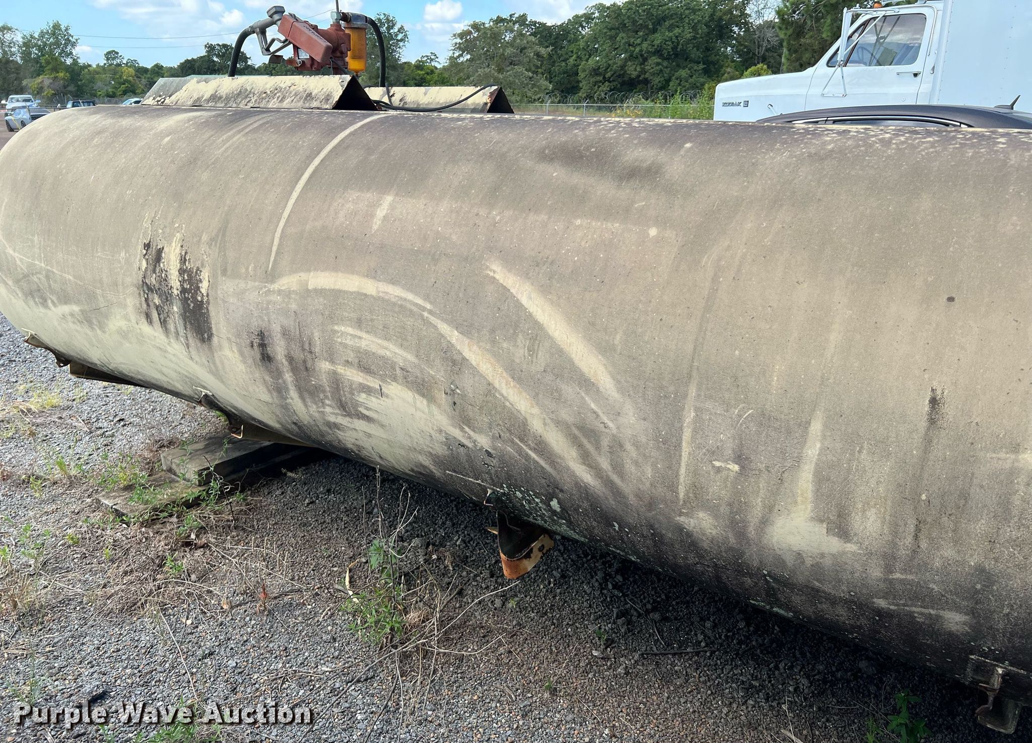 Purple Wave is selling a used Truck Part and Attach. in Texas. This item is a Aluminum fuel tank bed with the following: Dimensions: Approx. 15' 6" L x 96" W x 52" H, Fill-Rite 12 volt pump, Hose, Nozzle