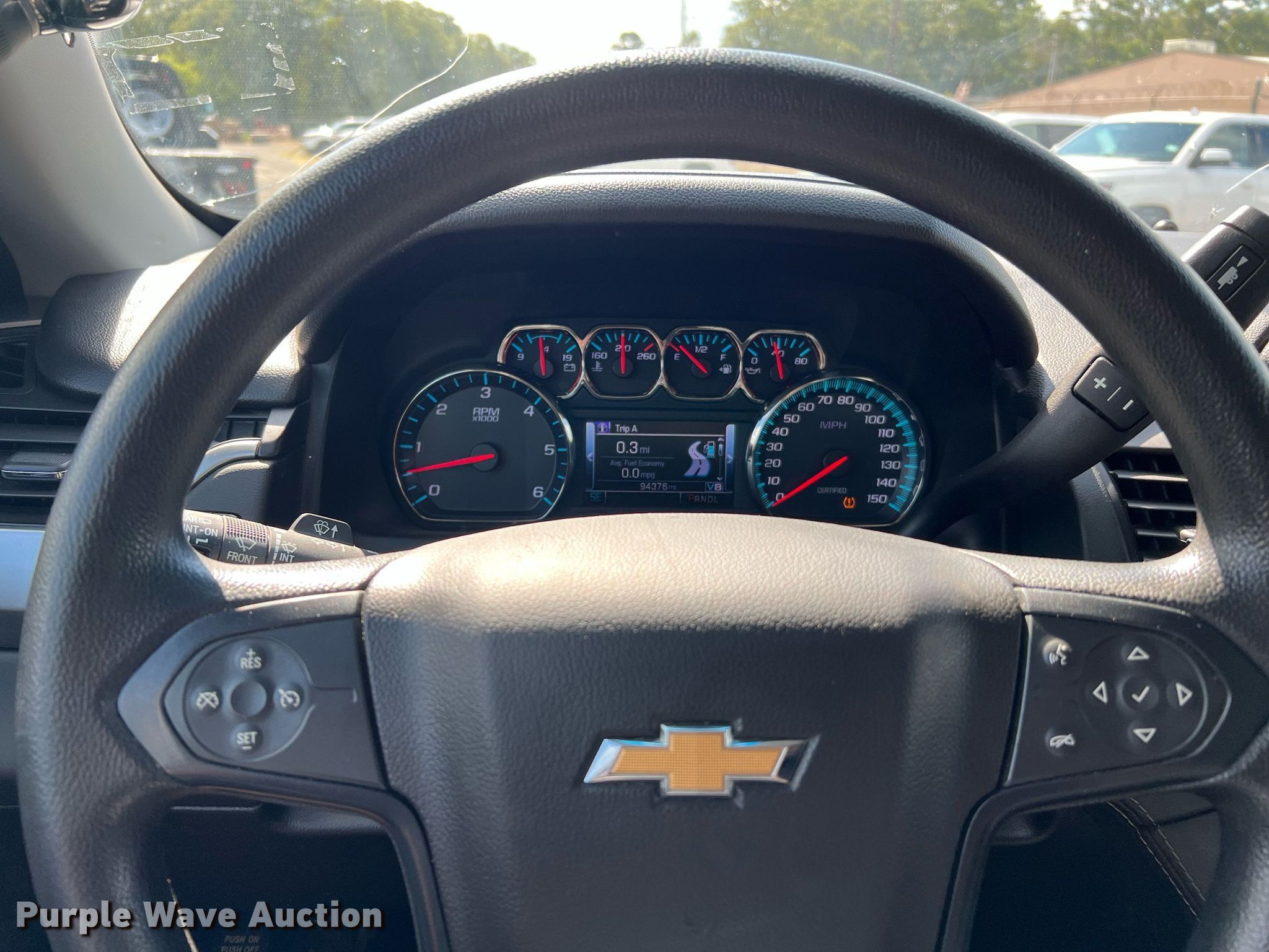 2019 Chevrolet Tahoe Police SUV. Miles: 94,376 on odometer, VIN: 1GNLCDEC5KR182914. Engine Displacement: 5.3L V8 OHV, Cylinders: 8, Fuel type: Gas. Transmission Automatic. Interior AC, Heat, Seat: Power driver, Power passenger, Power windows, Power locks, Cruise control, Backup camera. Tires Size: 265/60R17. Notes Dash warning indicator: TPMS, Windshield chipped or cracked. Texas title. Title distribution may be delayed up to 14 days from verification of funds. Nacogdoches County, TX. 2306 Douglas Rd. Nacogdoches, TX 75961