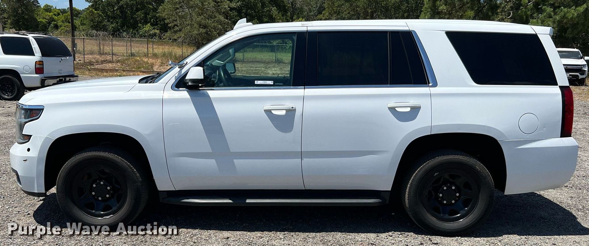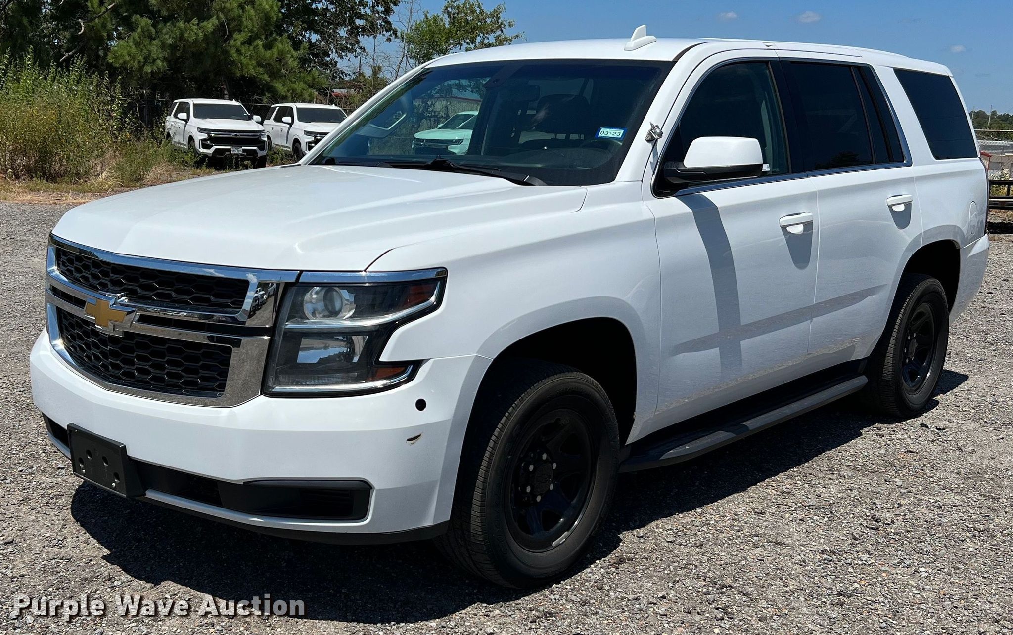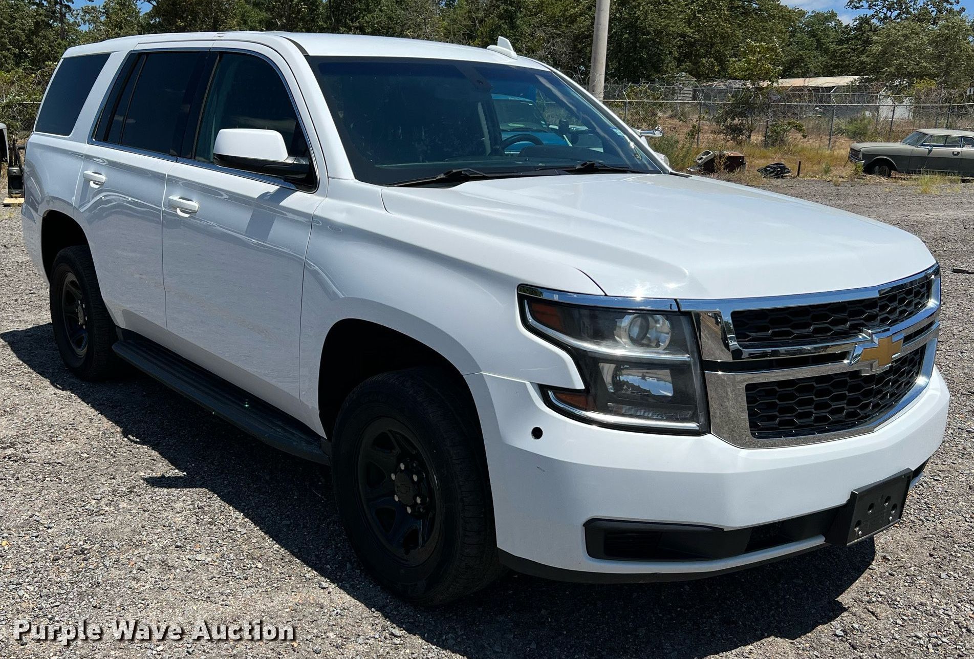 2019 Chevrolet Tahoe Police SUV. Miles: 98,075 on odometer, VIN: 1GNLCDEC9KR242788. Engine Displacement: 5.3L V8 OHV, Cylinders: 8, Fuel type: Gas. Transmission Automatic. Interior AC, Heat, Seat: Power driver, Power passenger, Power windows, Power locks, Cruise control, Backup camera. Tires Size: 265/60R17. Notes Dash warning indicator: TPMS, Windshield chipped or cracked. Texas title. Title distribution may be delayed up to 14 days from verification of funds. Nacogdoches County, TX. 2306 Douglas Rd. Nacogdoches, TX 75961