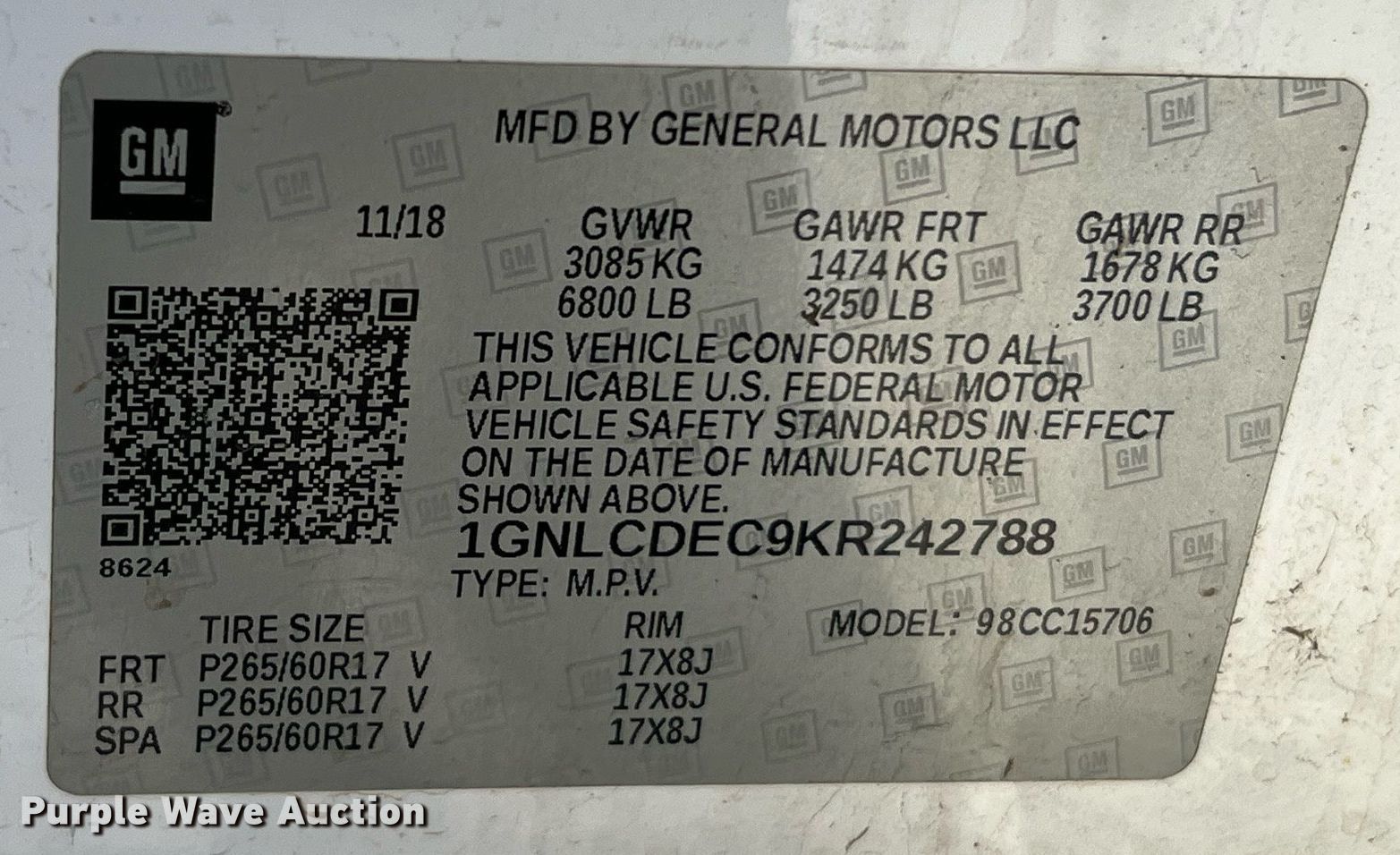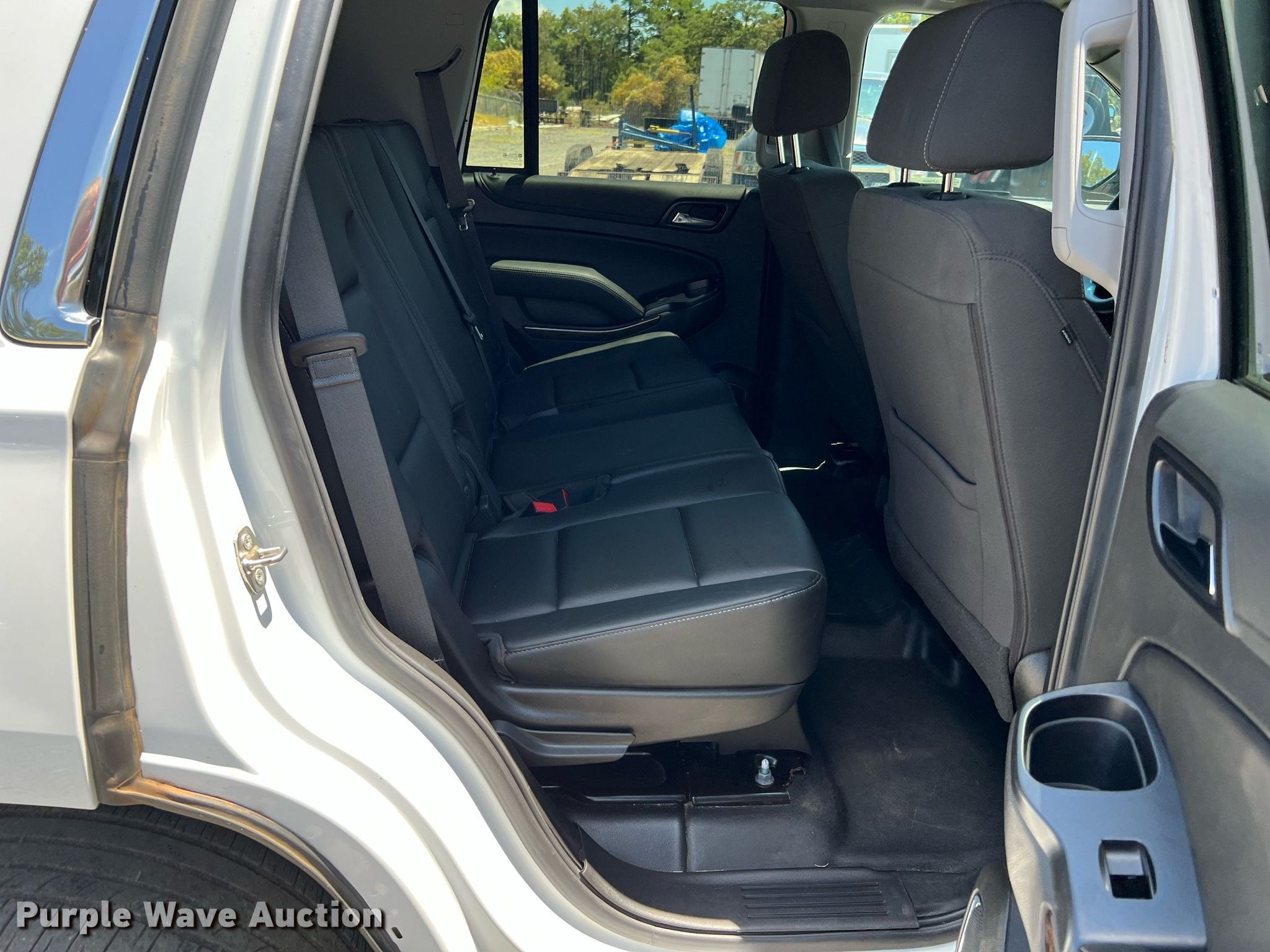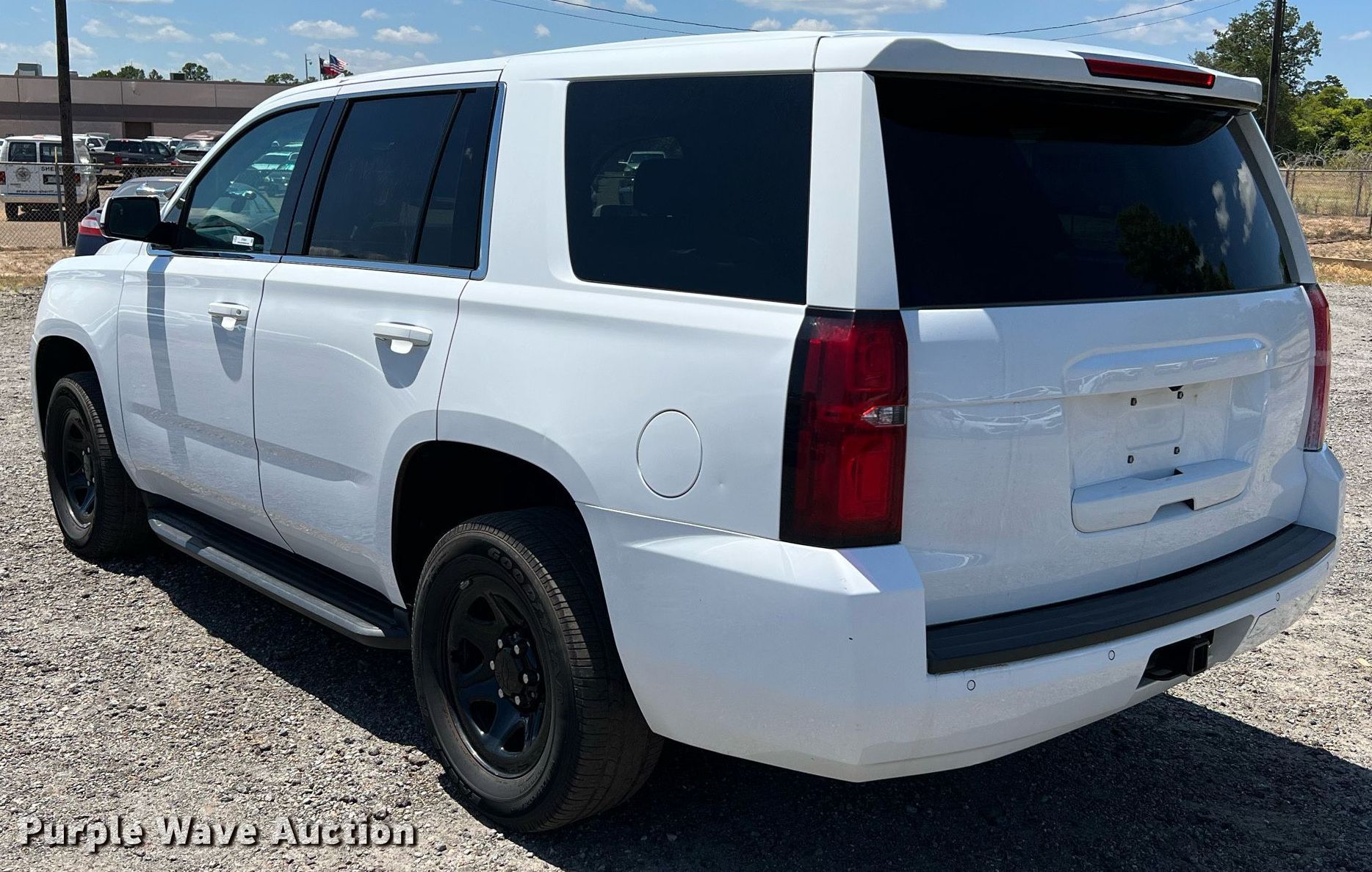 2019 Chevrolet Tahoe Police SUV. Miles: 98,075 on odometer, VIN: 1GNLCDEC9KR242788. Engine Displacement: 5.3L V8 OHV, Cylinders: 8, Fuel type: Gas. Transmission Automatic. Interior AC, Heat, Seat: Power driver, Power passenger, Power windows, Power locks, Cruise control, Backup camera. Tires Size: 265/60R17. Notes Dash warning indicator: TPMS, Windshield chipped or cracked. Texas title. Title distribution may be delayed up to 14 days from verification of funds. Nacogdoches County, TX. 2306 Douglas Rd. Nacogdoches, TX 75961